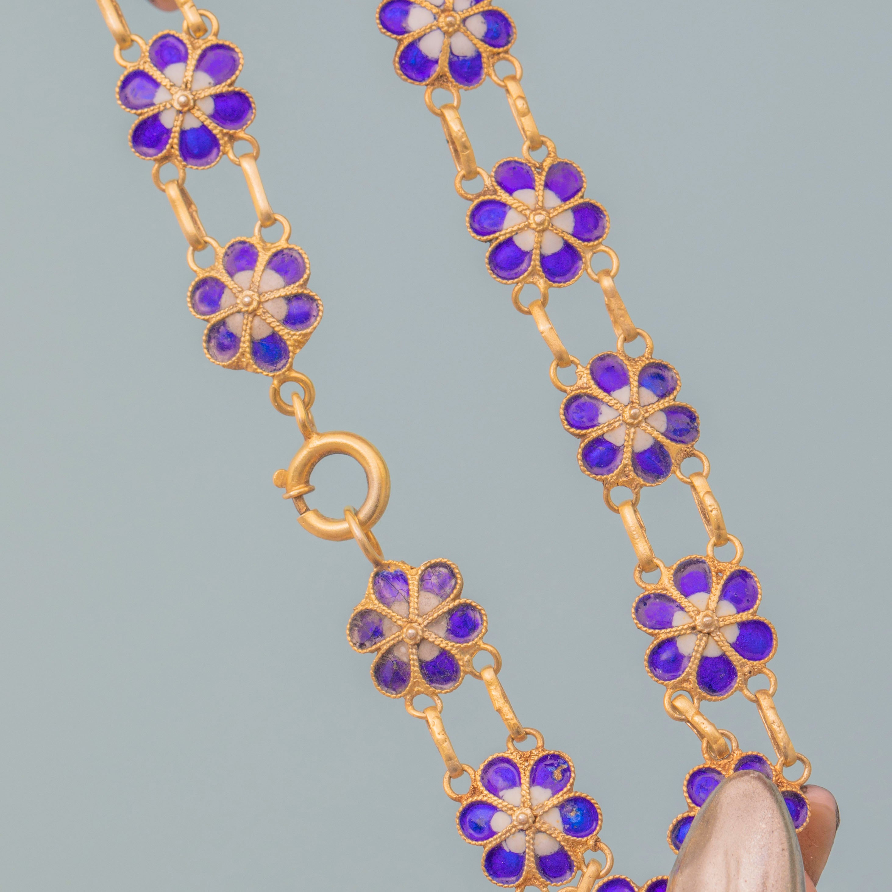 The flower chain is secured around your wrist by a large bolt ring, from which you could suspend a charm for a personal touch. With forget-me-nots symbolising love and commitment, this antique Enemal bracelet would make the perfect choice to gift someone special in your life!