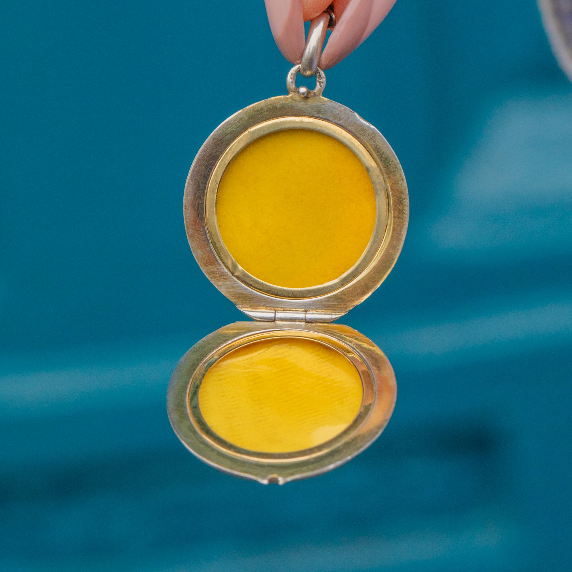 Crafted around the turn of the century, c.1900, this Art Nouveau Enamel locket has been coated with a vivid cobalt blue Enamel front that is captivating in the light!