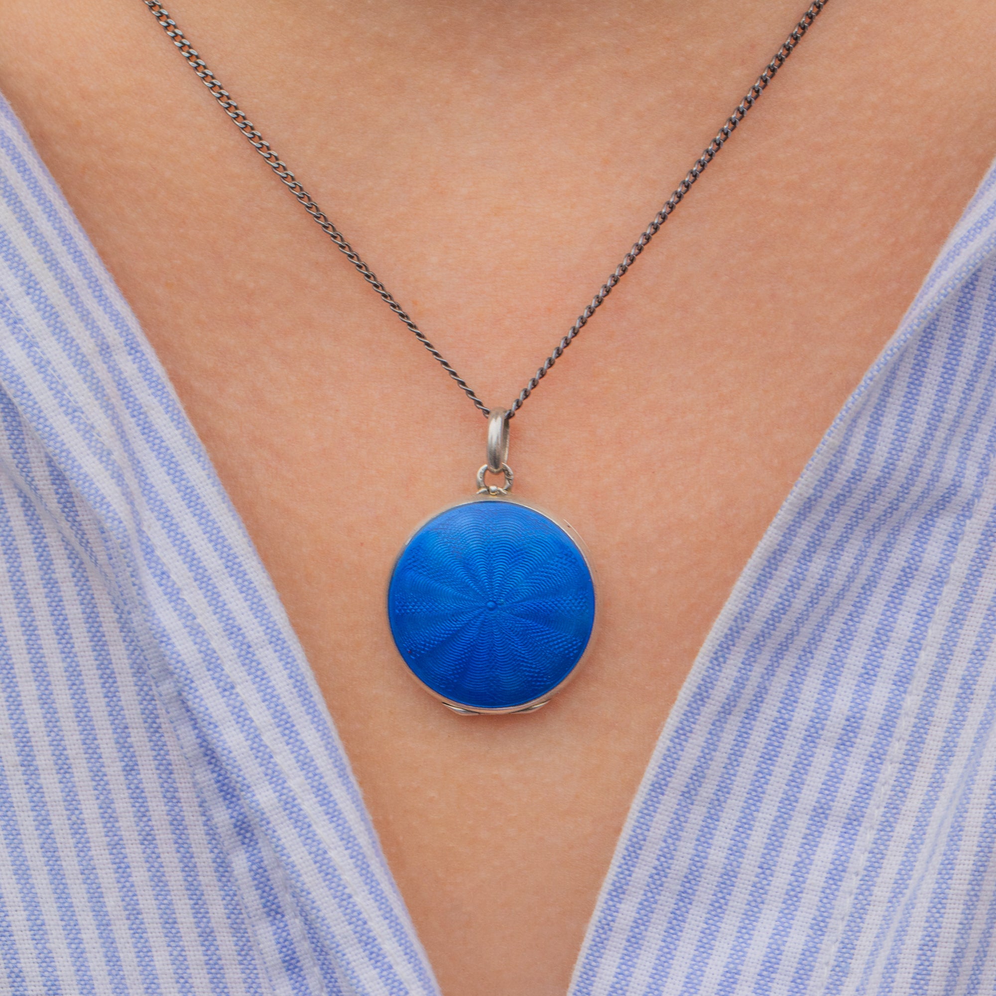 An eye-catching antique Silver Cobalt Blue Guilloche enamel locket to make your collection stand out!