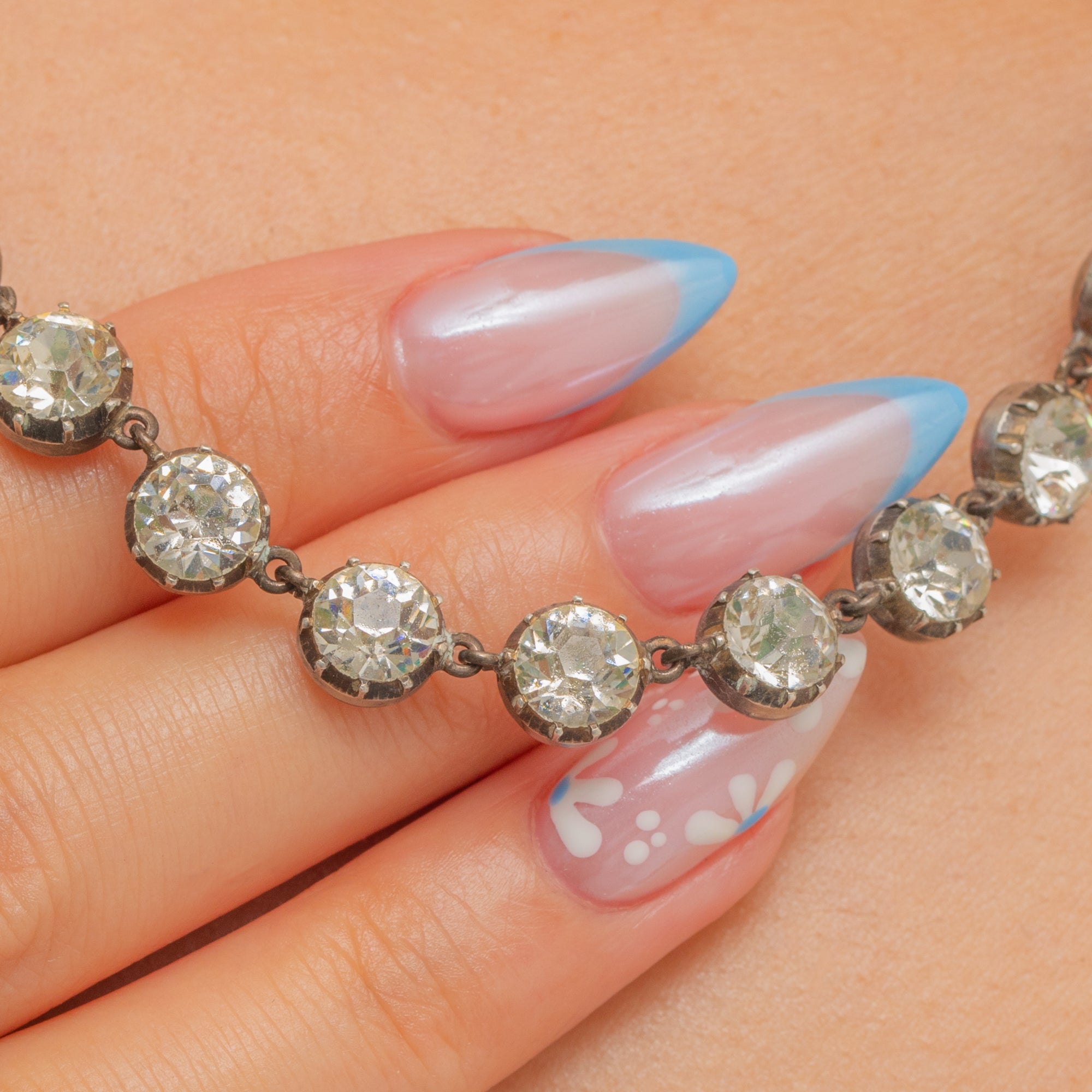 EXCELLENT: Each Paste stone is faceted beautifully, free from any scuffs or nibbles, and are set securely within the Silver settings. The chain is uniform and secure and with the clasp in perfect working order, this Victorian necklace can be worn with utmost confidence.