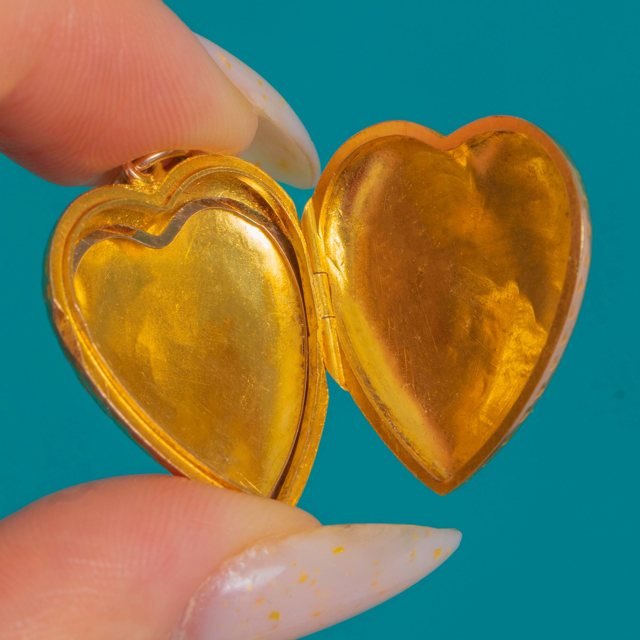 Hinged to reveal two recessed photo compartments, it’s a sentimental keepsake with enduring elegance. The neat round bail and jump ring make it effortless to style on your favourite chain, and crisp English hallmarks attest to its fine 1909 craftsmanship.