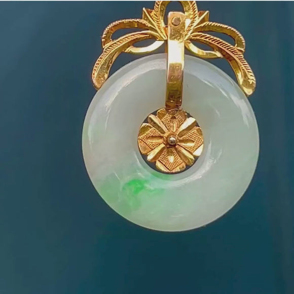 EXCELLENT. This Art Deco 14ct Gold Jade disc pendant is in excellent condition. The Jade is beautifully preserved, showcasing its natural colour and intricate carving without any chips or cracks. The 14ct Gold setting retains its original luster with minimal signs of wear. Ready to be worn and enjoyed for years to come, this Art Deco pendant will make a fabulous addition to your collection!
