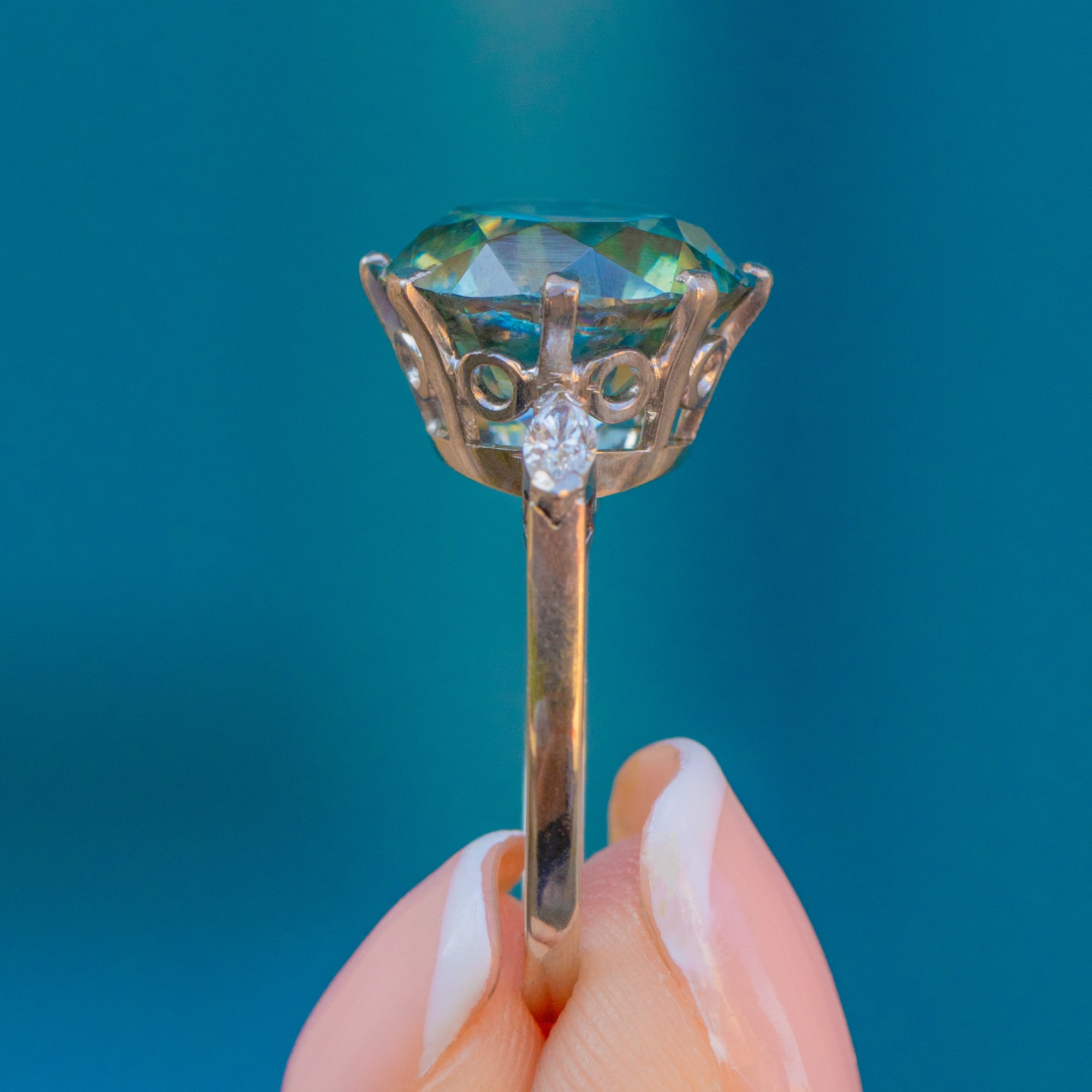 Art Deco 14ct Gold & Platinum Blue Zircon Diamond Ring, 7.70ct Zircon