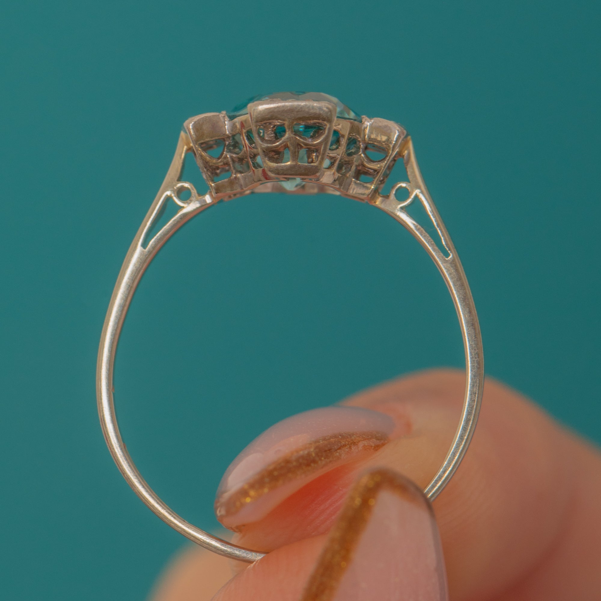 The Zircon’s pristine condition is remarkable for its age, showing no scuffs or chips, while the 18ct Gold band adds warmth and contrast to the cool Platinum tones above. A true Deco beauty, radiant and sophisticated.