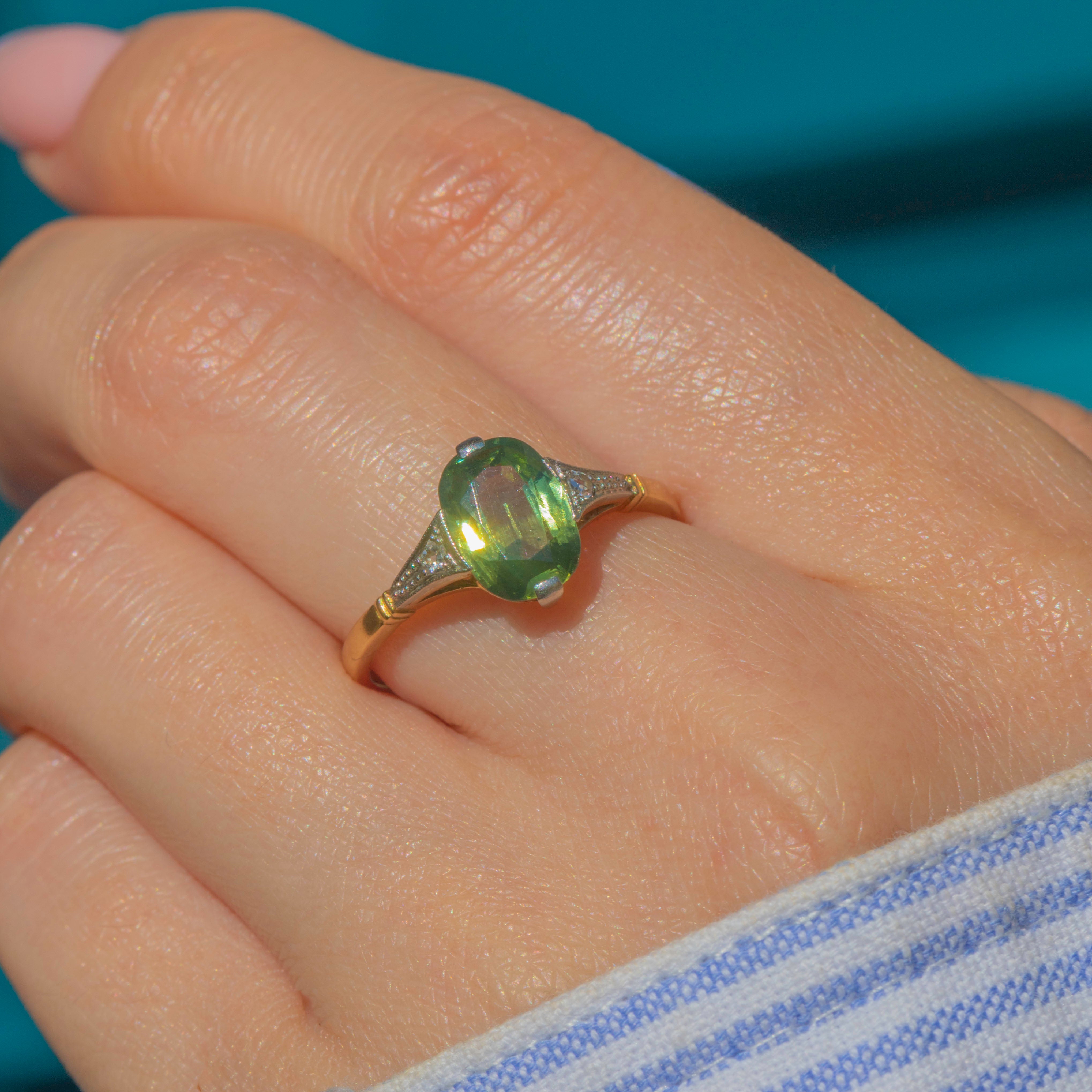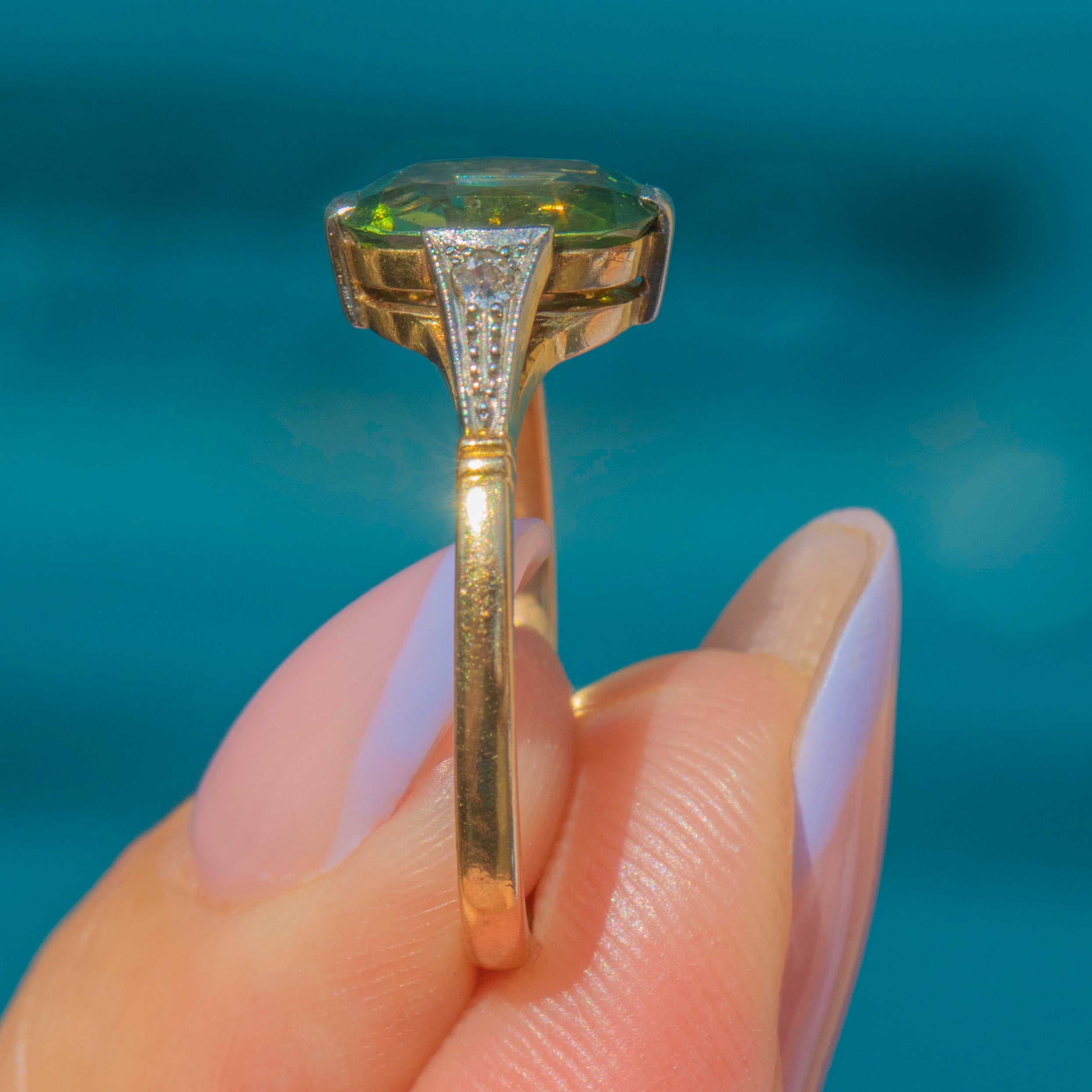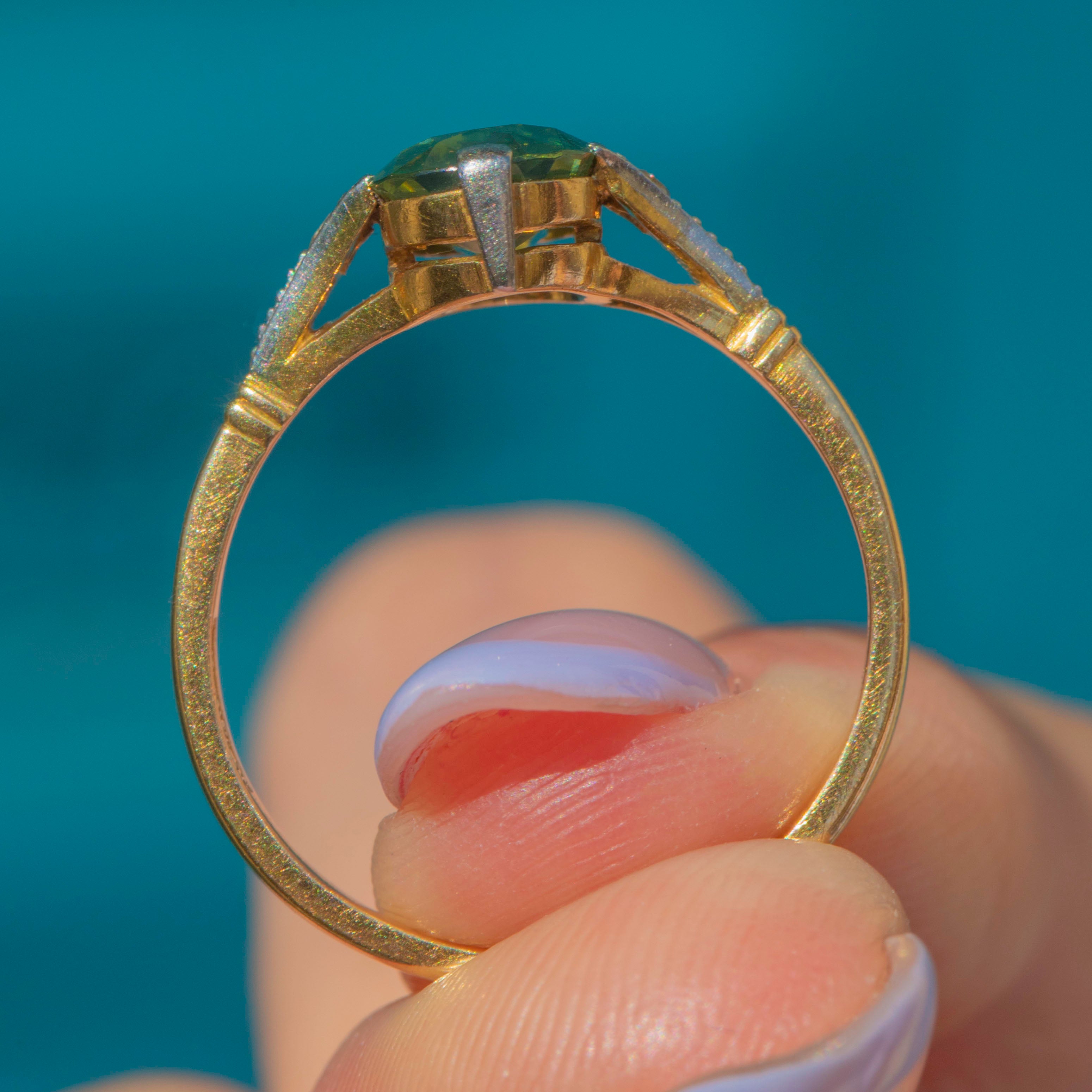 This Art Deco 18ct Gold Green Garnet Diamond ring is a stunning piece for your ring stack!