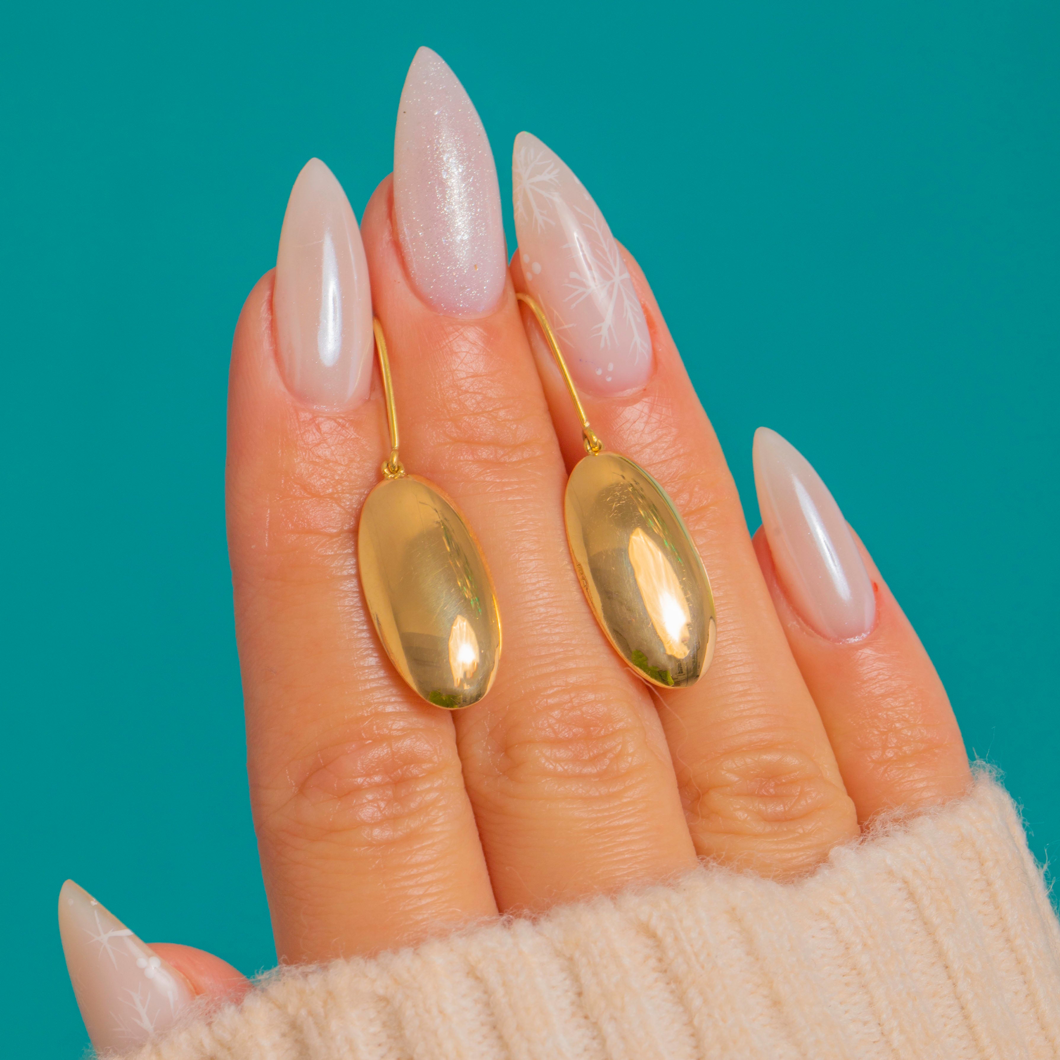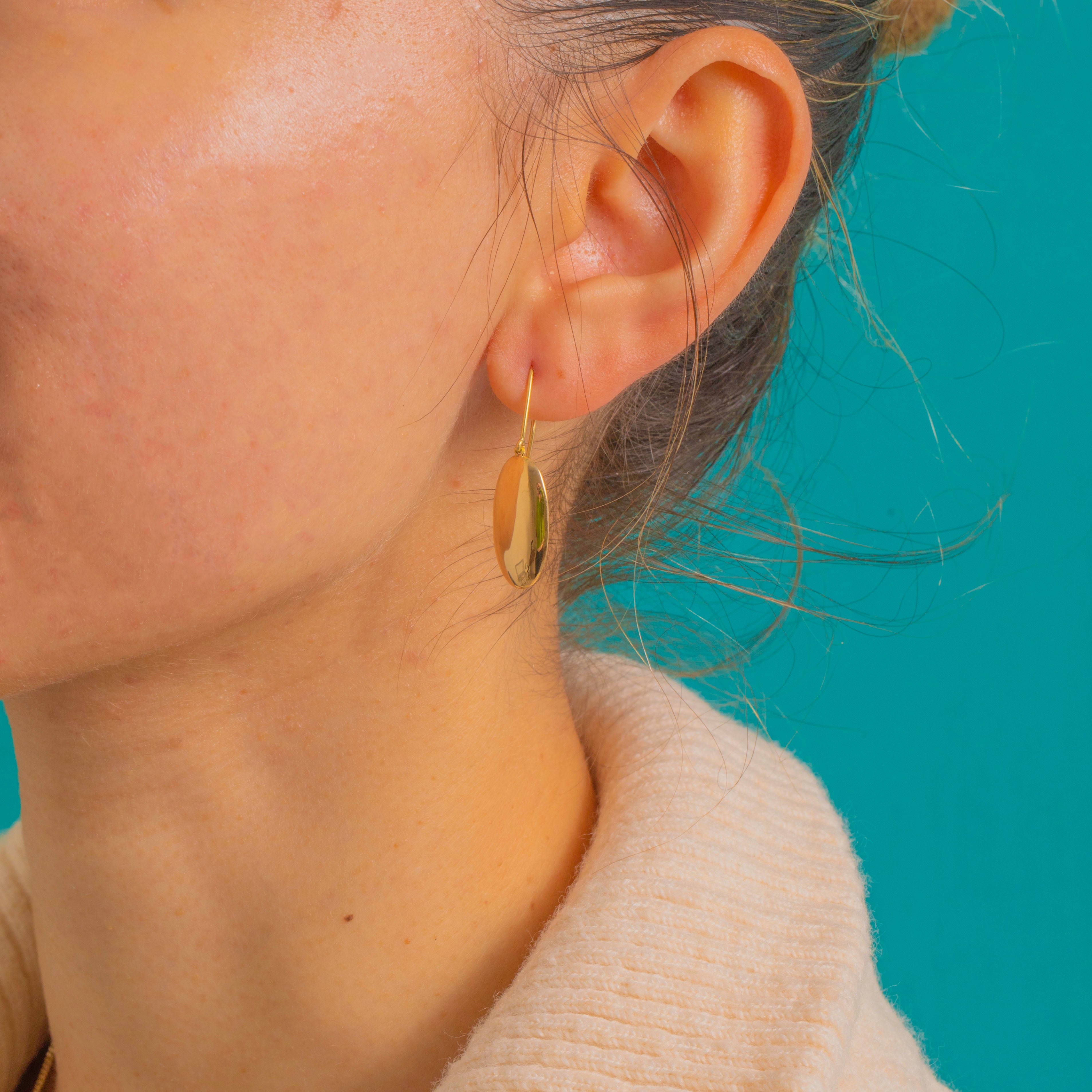 These Art Deco 18ct Gold drop earrings distil sleek design into its purest form. Each elongated, high-domed oval glows with a mirror-bright polish, offering a sculptural silhouette that dances with the light as you move.