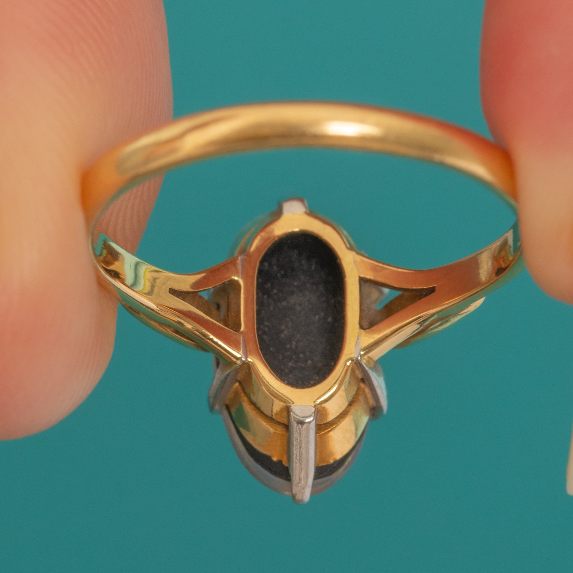 Art Deco 18ct Gold & Platinum Opal Triplet Navette Ring