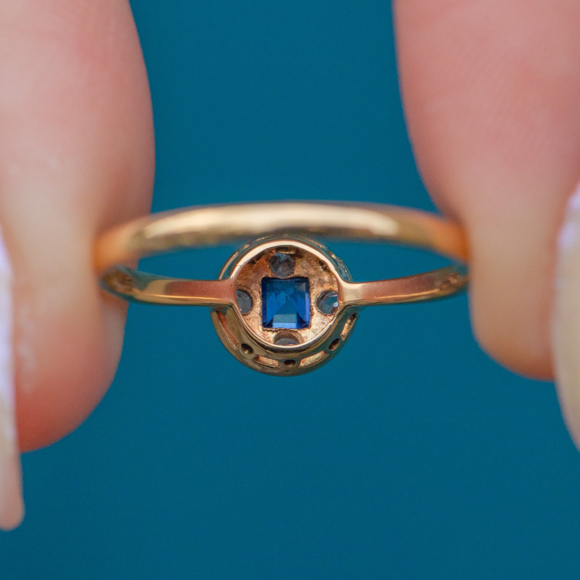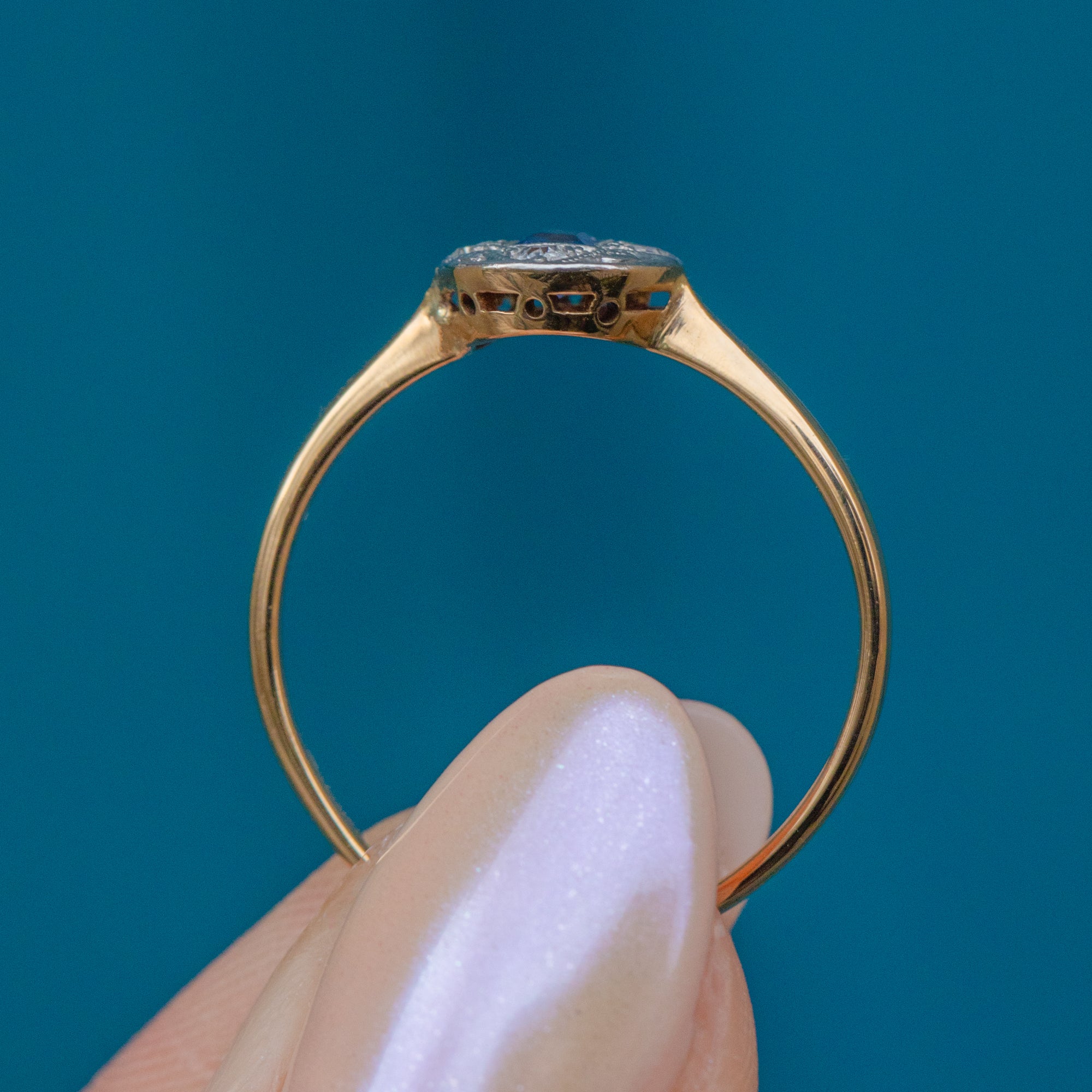 This Art Deco 18ct Gold & Platinum Sapphire Diamond cluster ring will make a timeless addition to your collection!