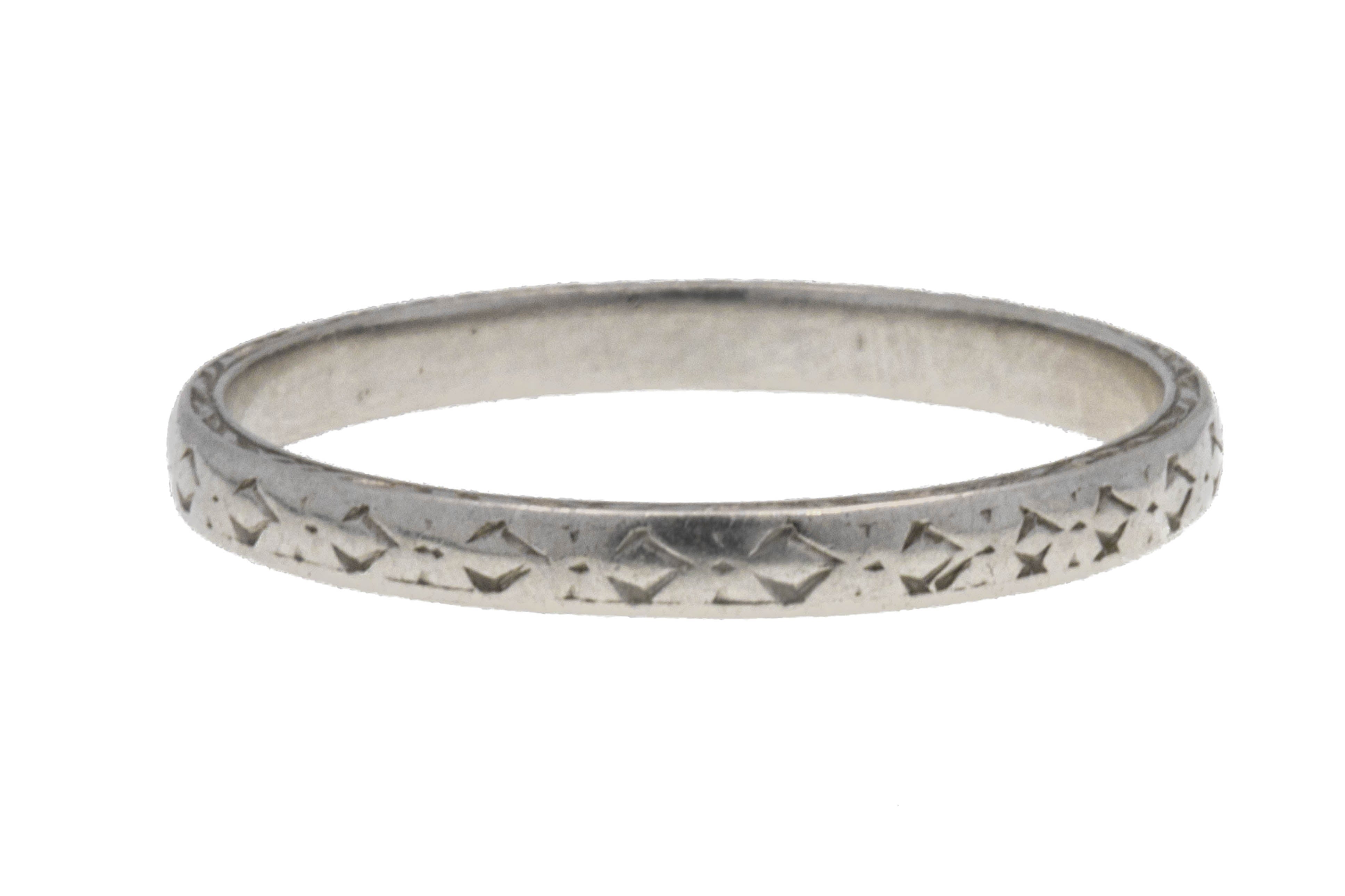 Art Deco Engraved Platinum Wedding Band