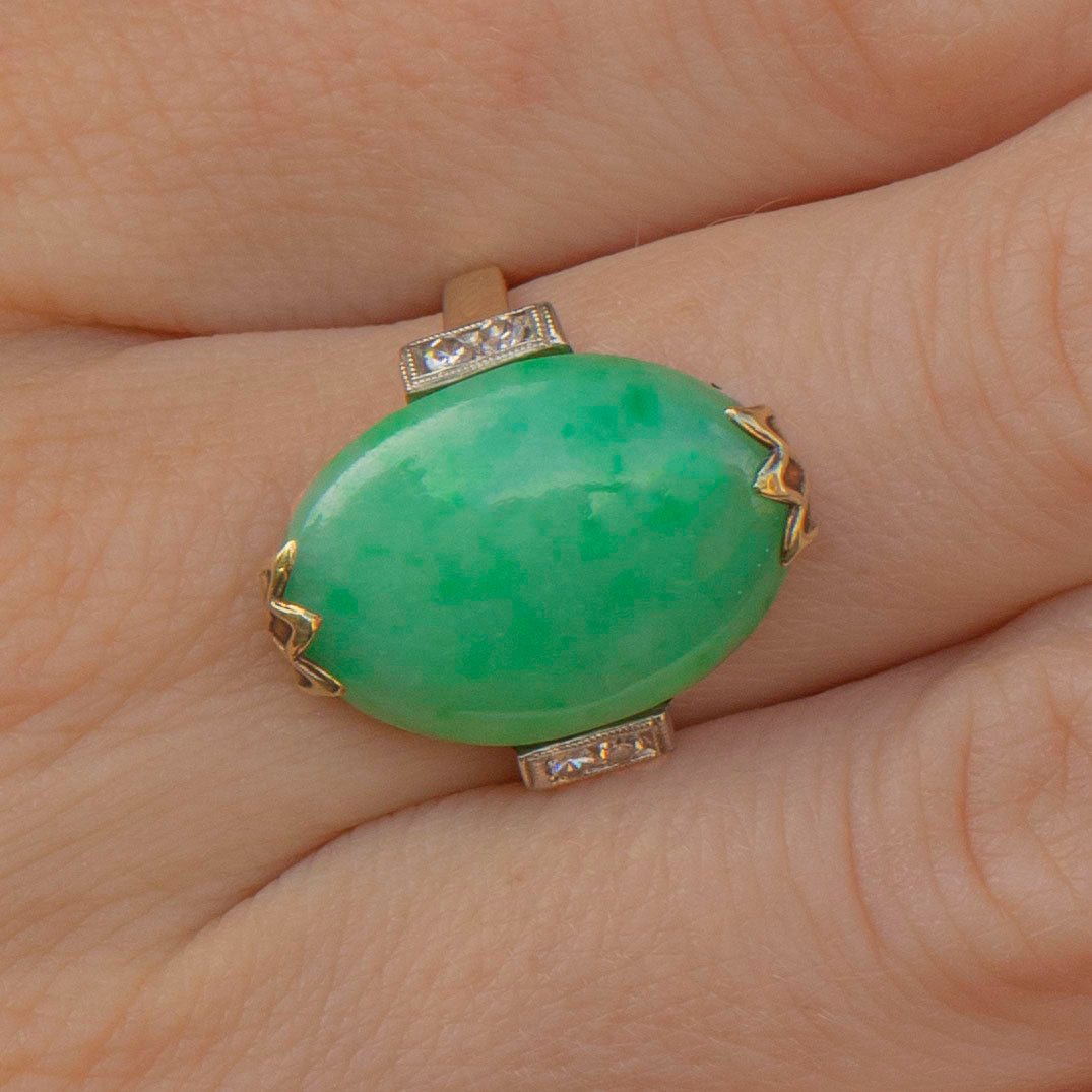 Art Deco Jade Cabochon Diamond Cocktail Ring, 14ct Gold