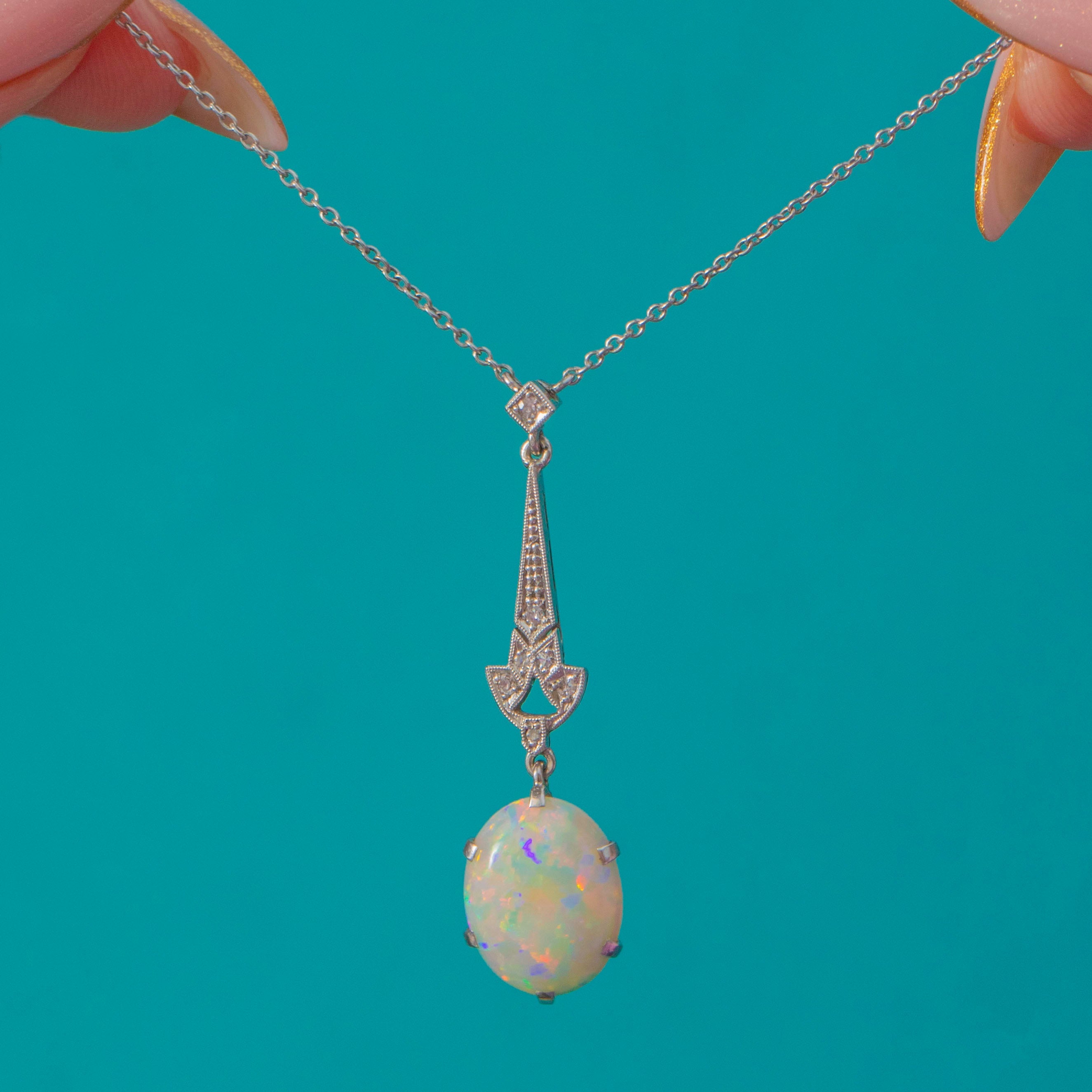 Art Deco 18ct Gold & Platinum Opal Drop Necklace