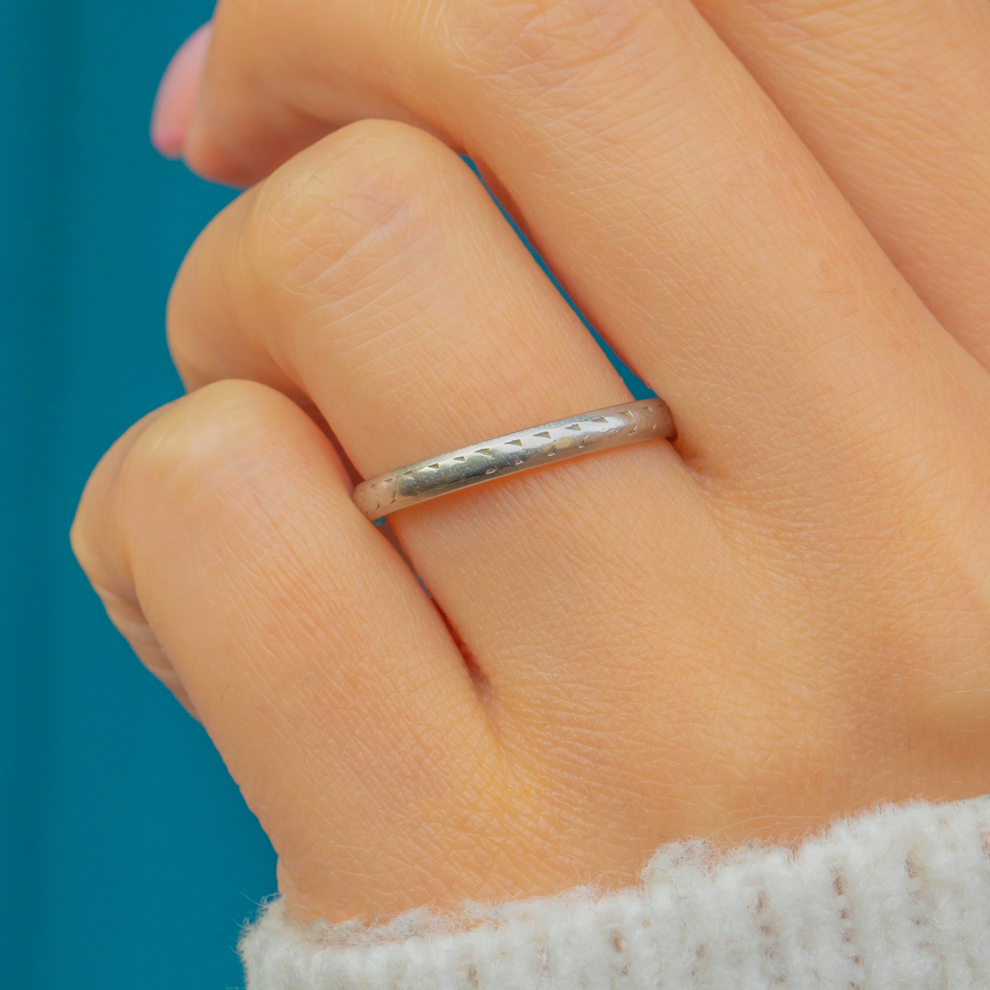 This Art Deco Platinum engraved wedding band is simply gorgeous! Finely crafted from solid, sturdy Platinum, she is the perfect ring to symbolise eternal love.