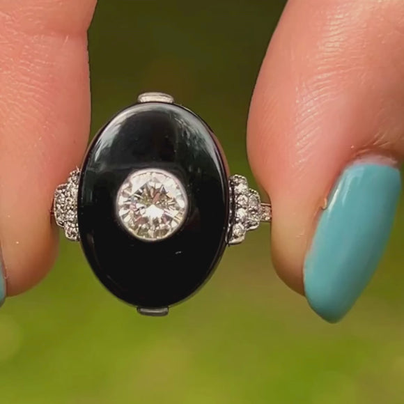 Art Deco Platinum Onyx Diamond Target Ring, 0.50ct Diamond