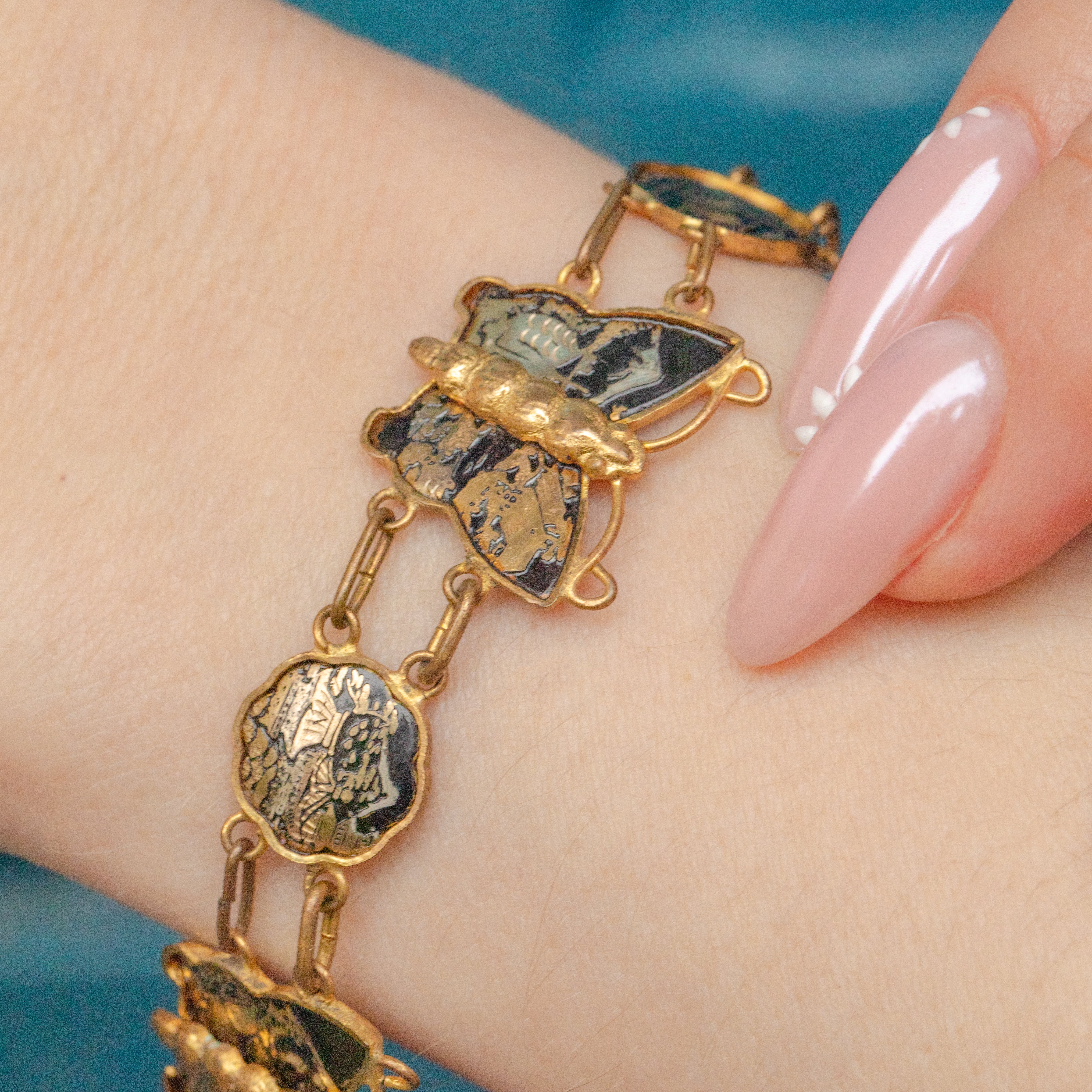 Art Deco Shakudo Damascene Butterfly Bracelet