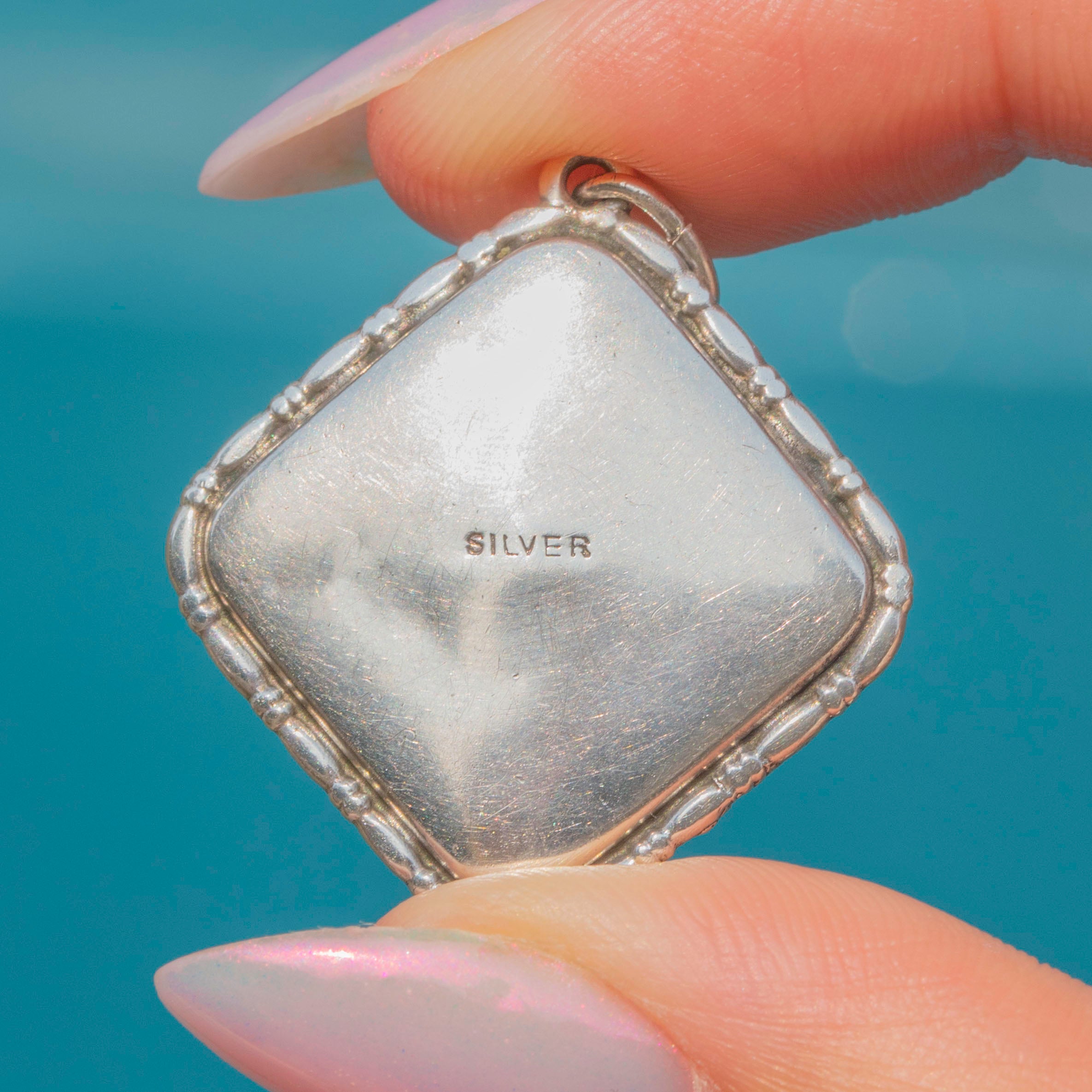 This Art Deco Silver Butterfly Wing square pendant is a captivating piece! The vibrant blues that the Morpho wing exudes add a burst of colour that will elevate any outfit.