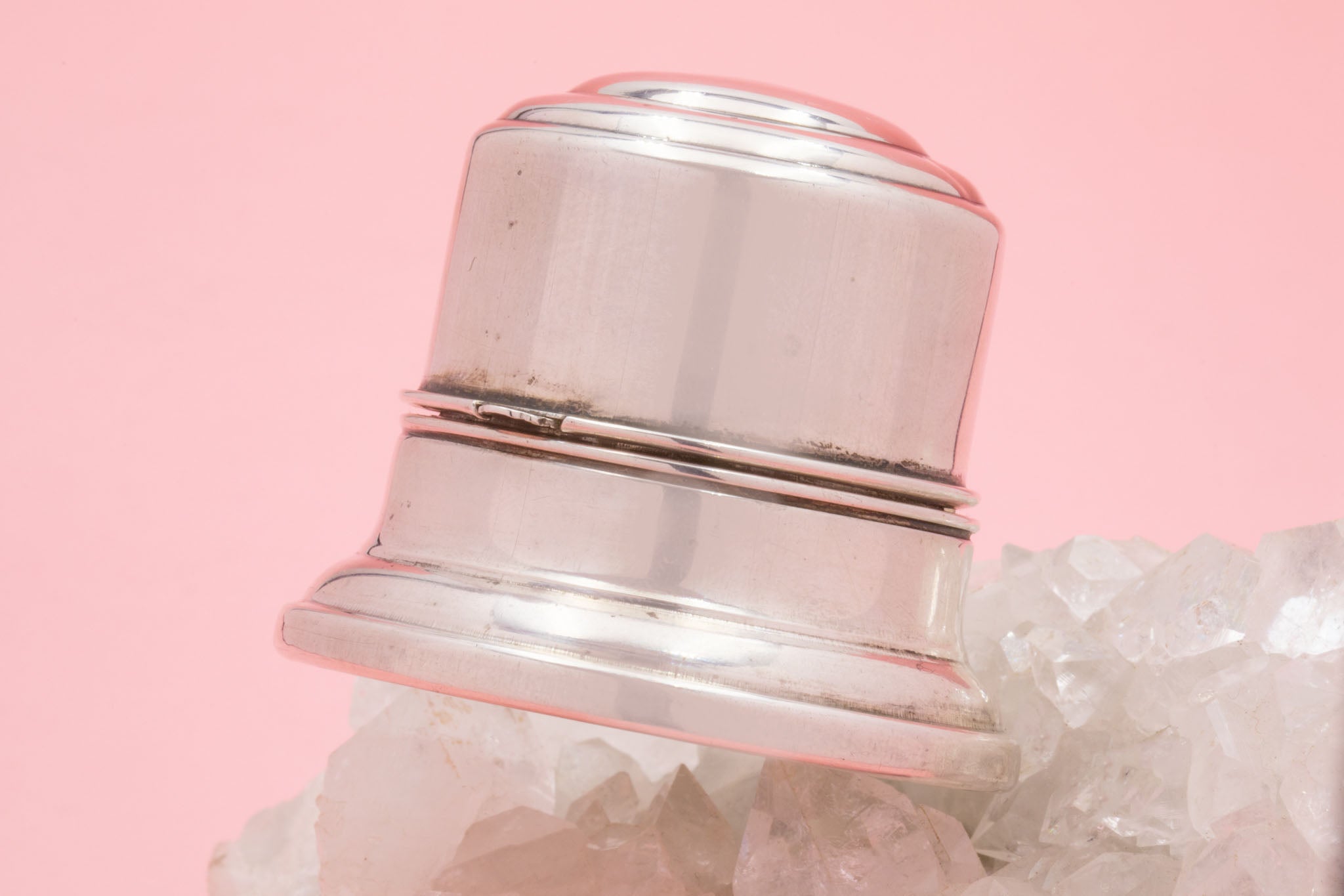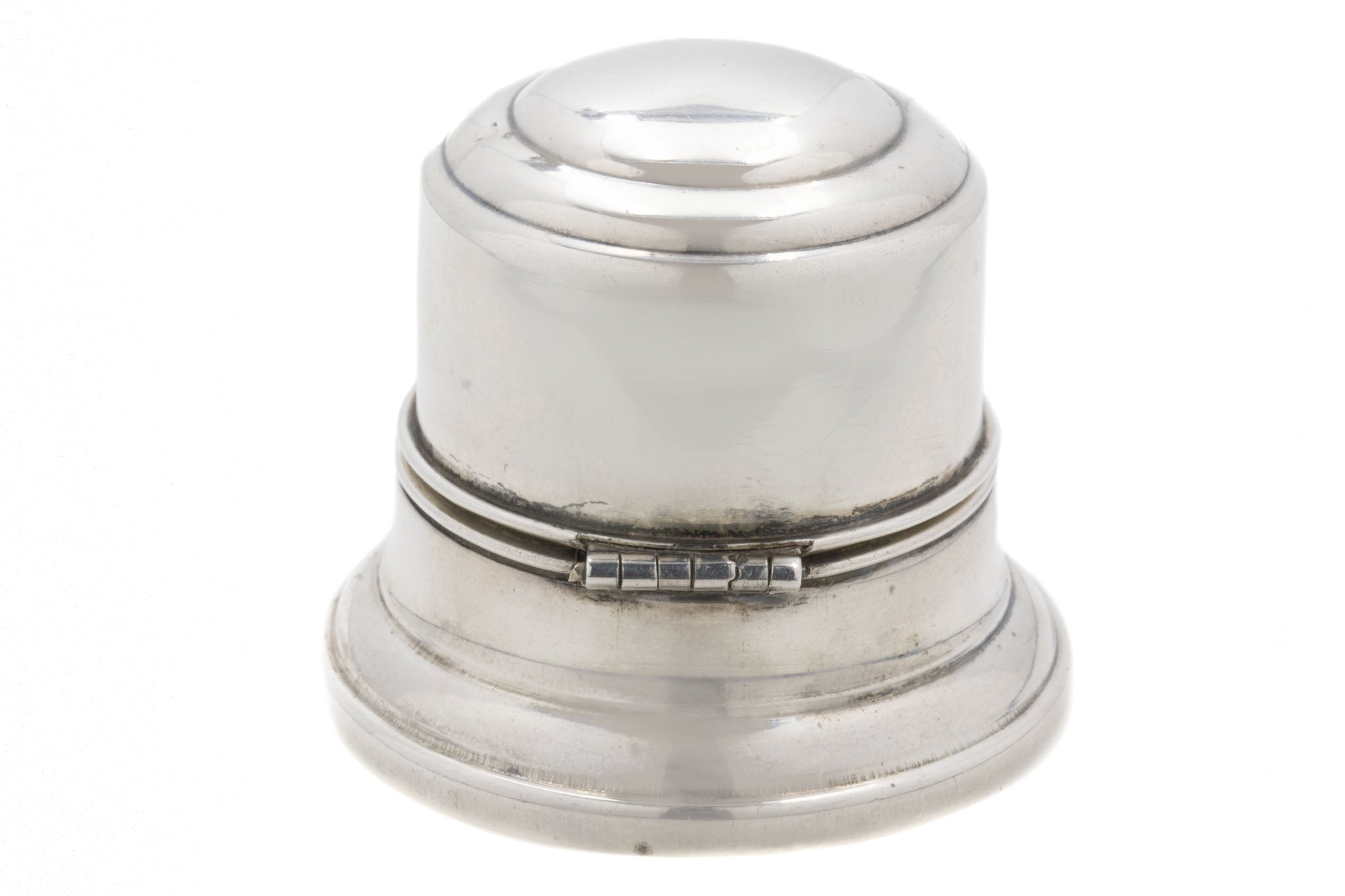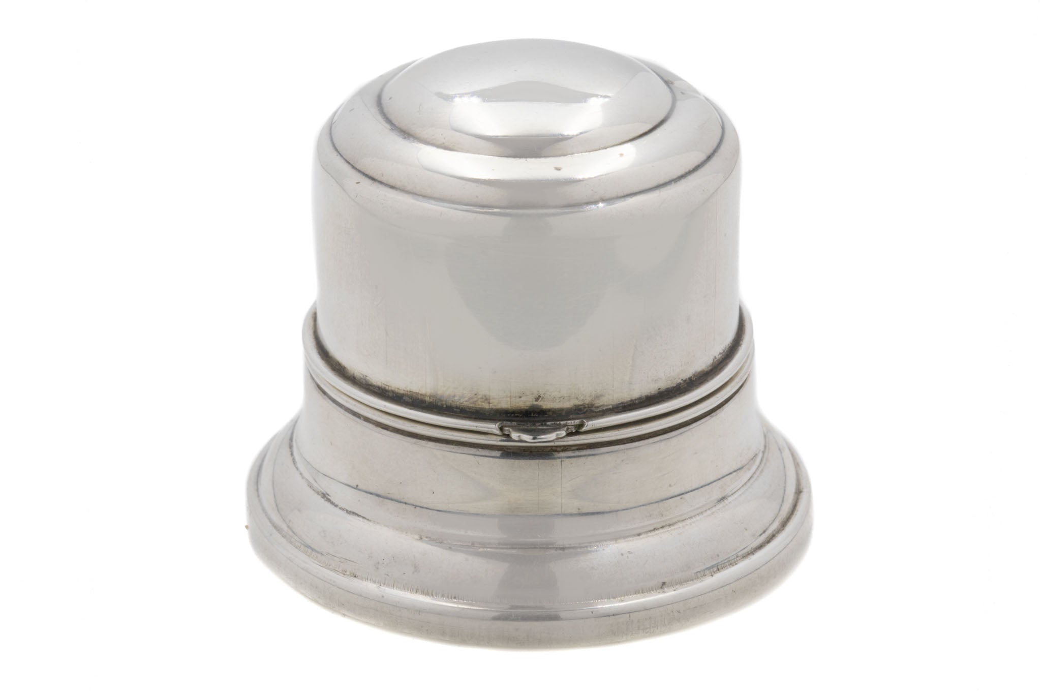 An impressive Art Deco Sterling Silver Birks ring box weighing an impressive 73.7g! Smooth Sterling Silver forms her every curve and groove to create her sleek bell-shaped look. A sturdy ring box choice, designed especially by 'Birks' with the intention of it becoming an engagement ring's home.