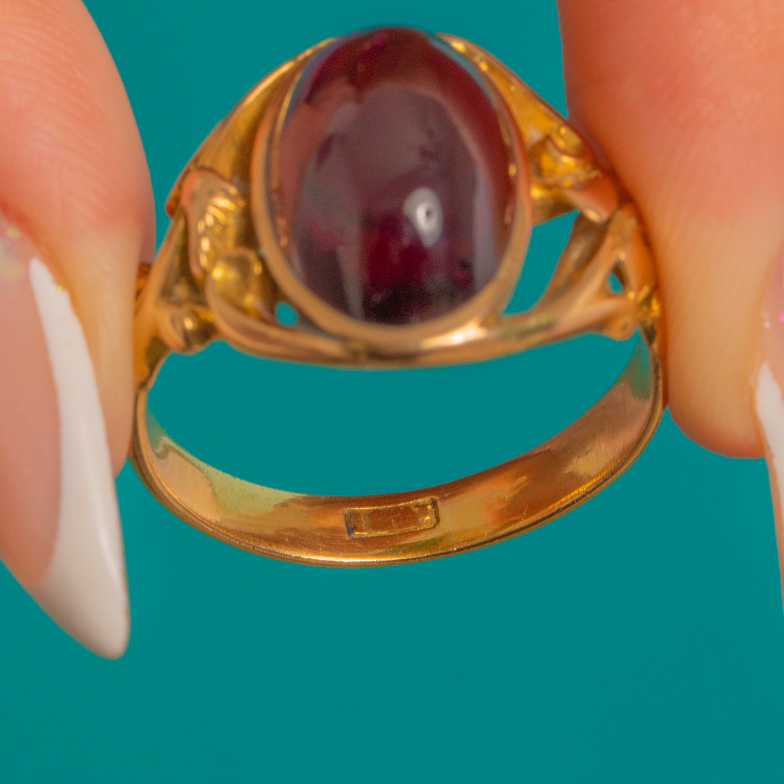 Art Nouveau 18ct Gold Garnet Cabochon Ring