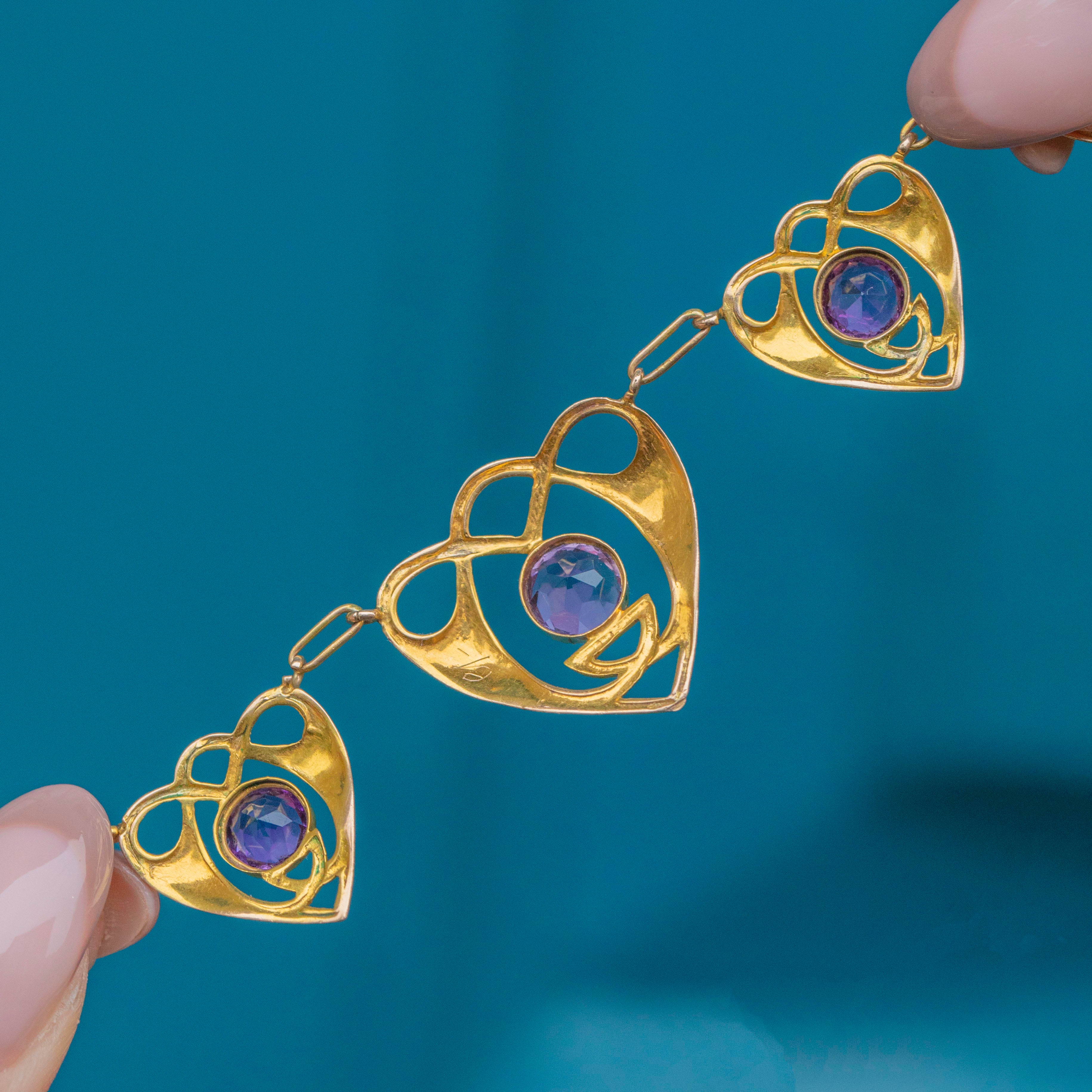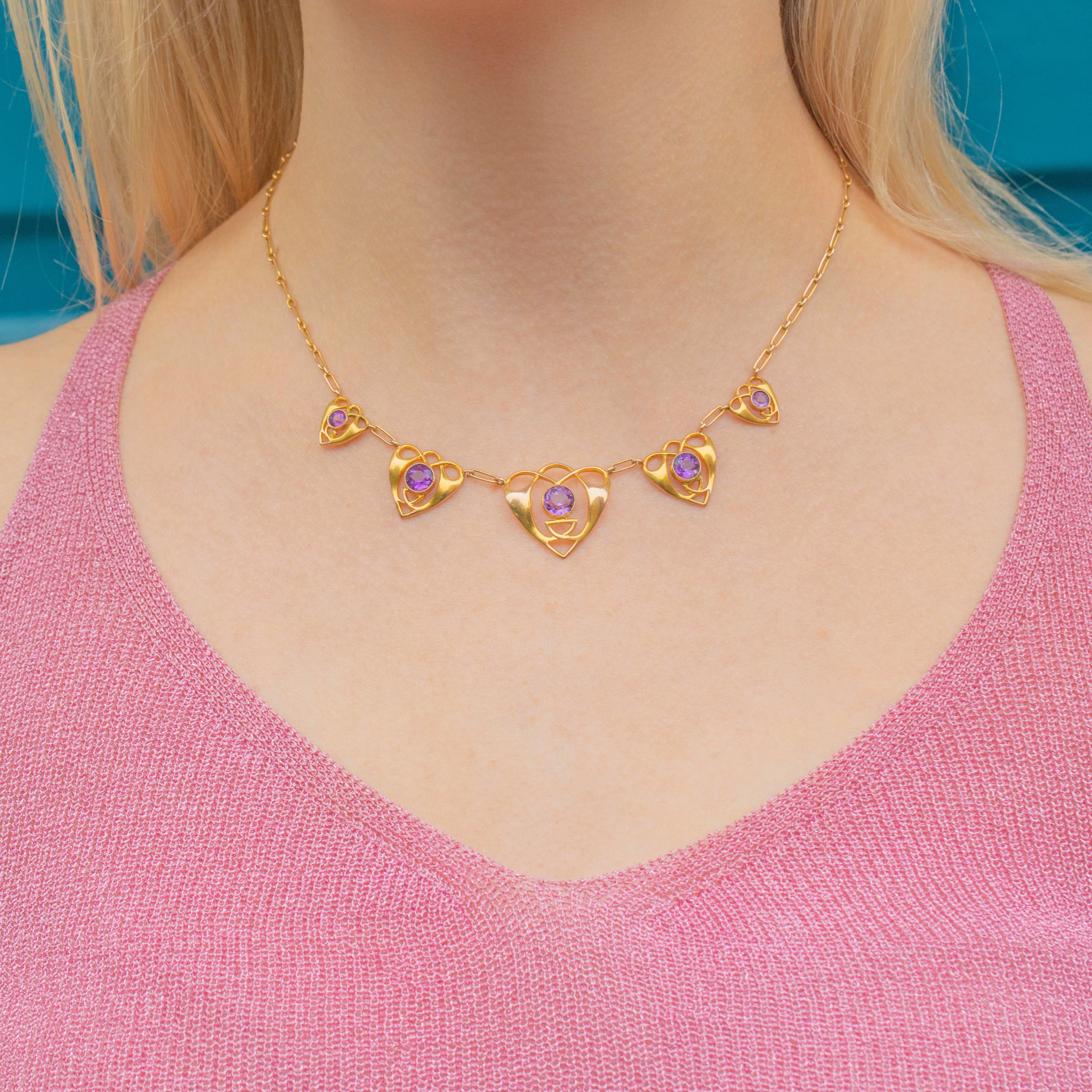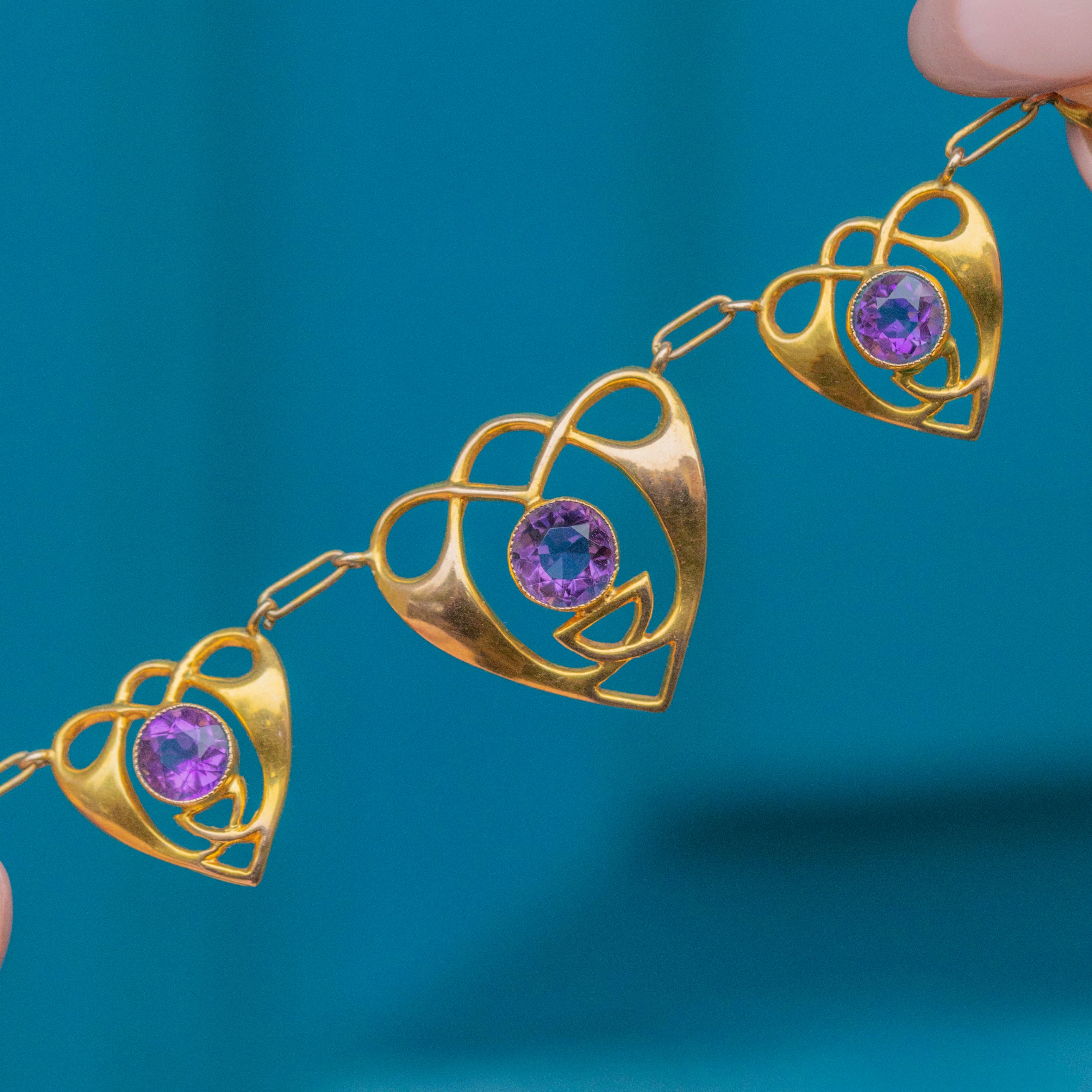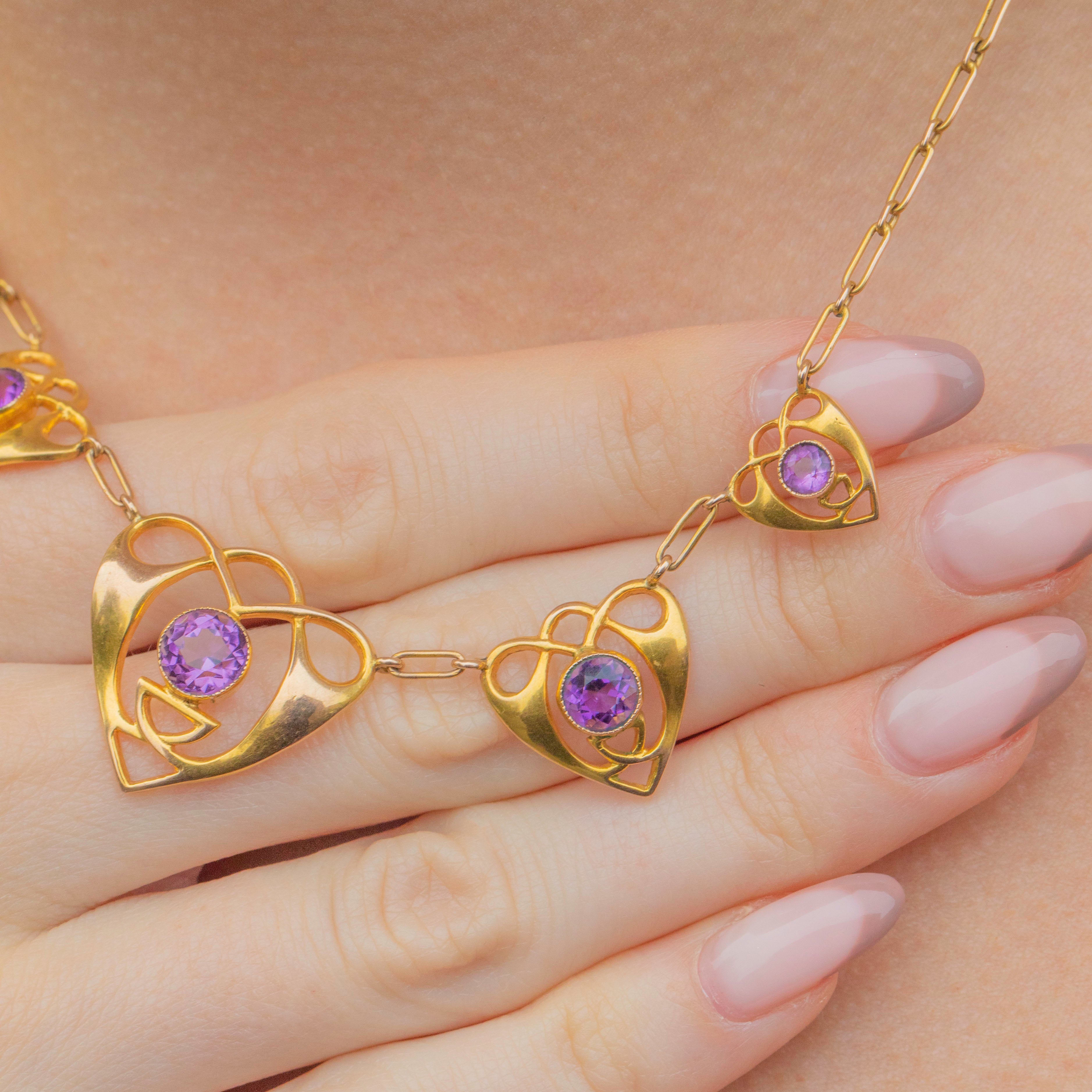 This Art Nouveau 9ct Gold Amethyst heart fringe necklace is a delight!