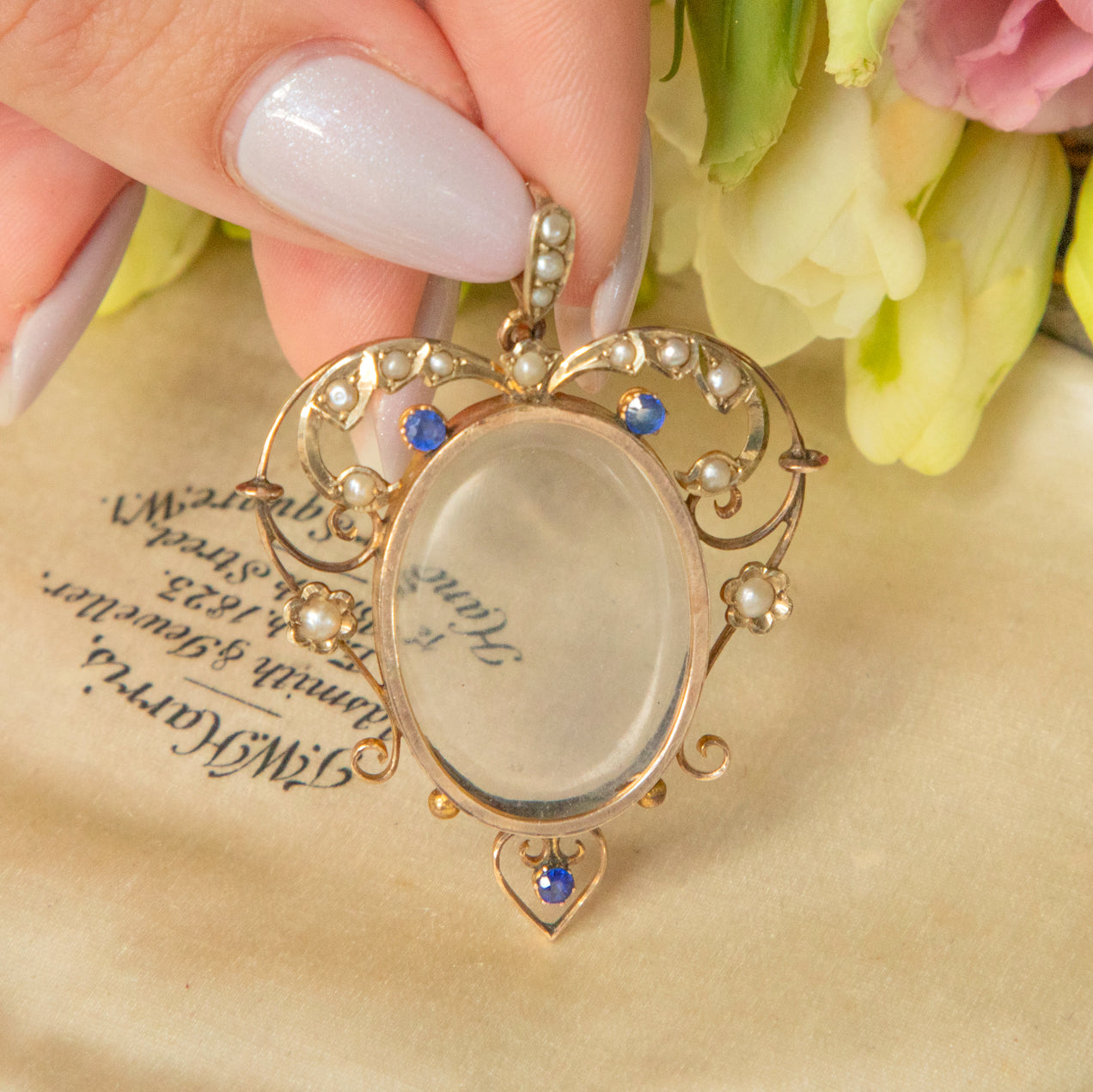 Art Nouveau 9ct Gold Pearl Locket Pendant