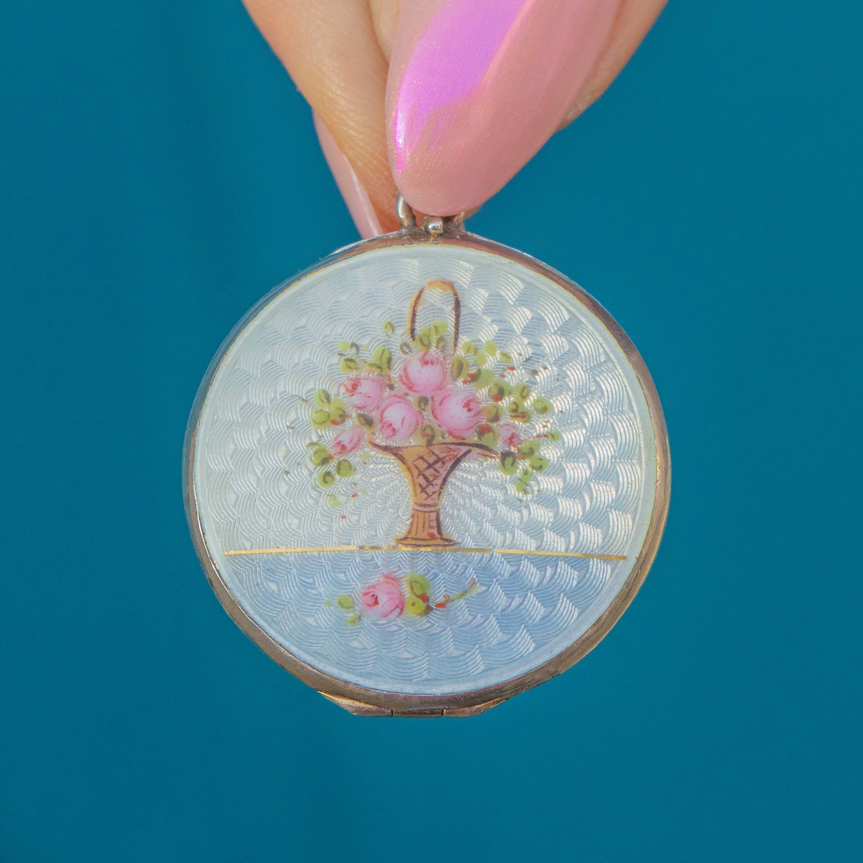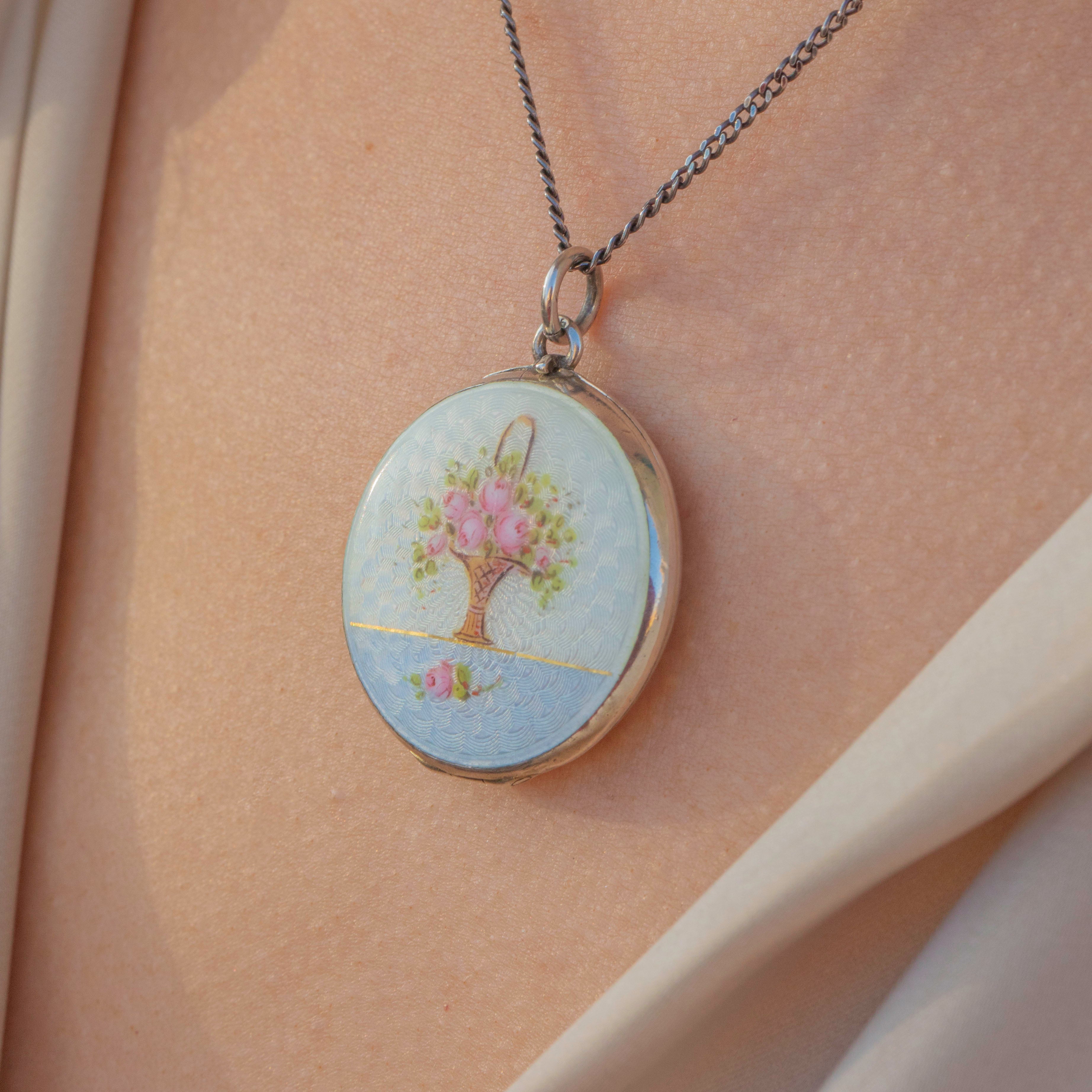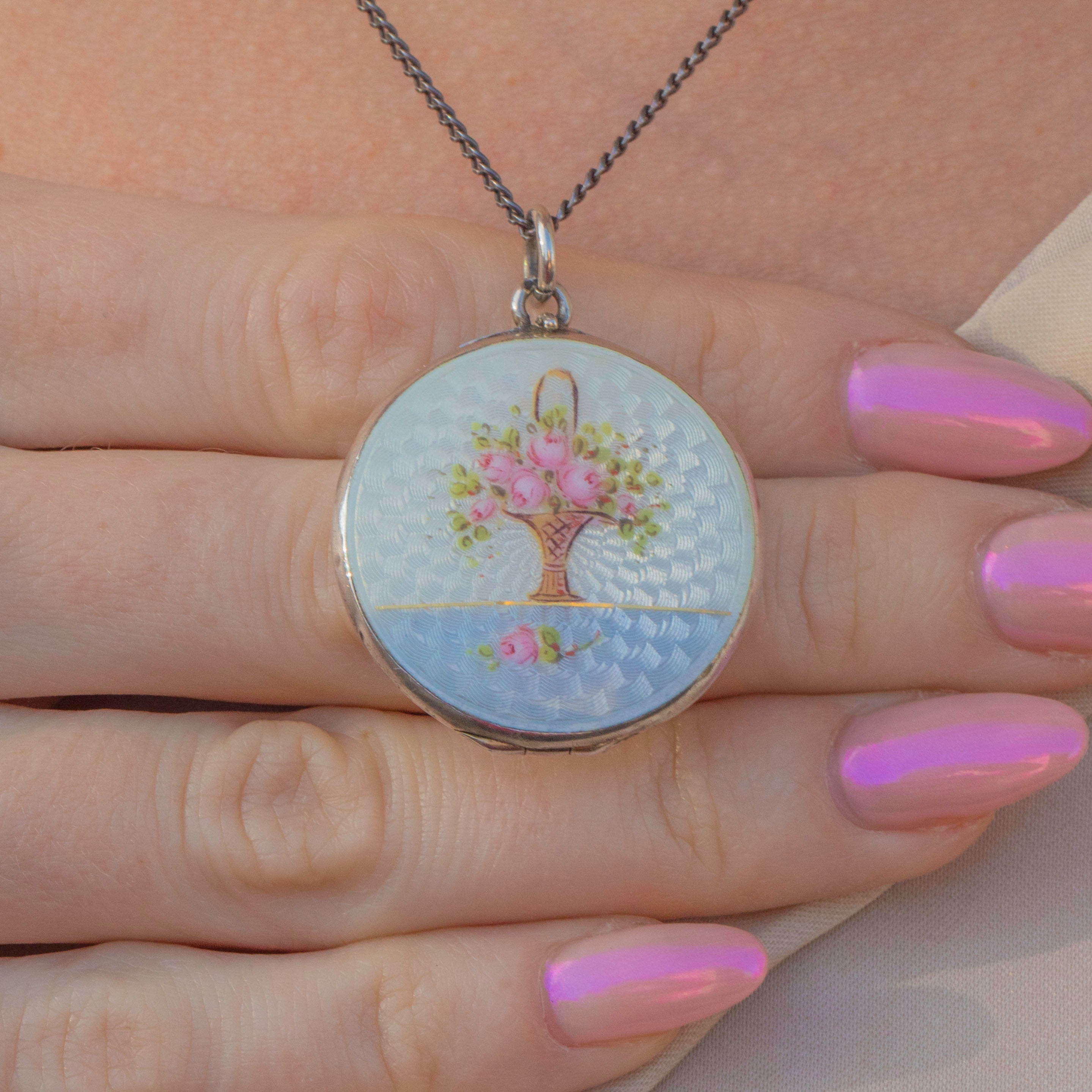 Art Nouveau Guilloche Enamel Bouquet of Flowers Locket Item added