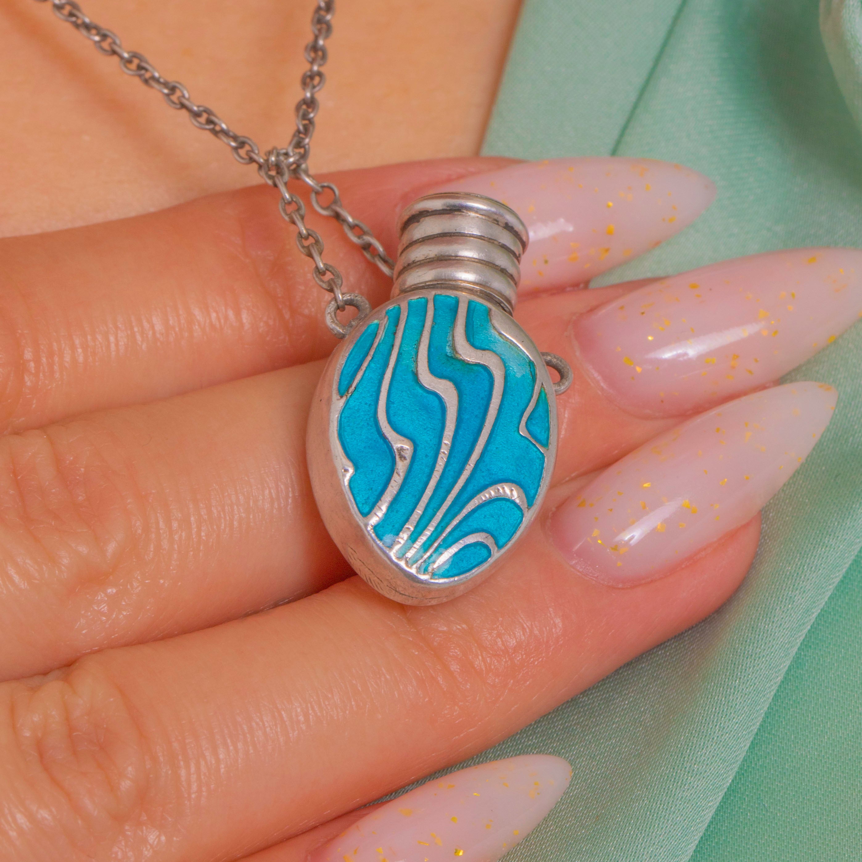 Arts and Crafts Silver Blue Enamel Perfume Bottle Pendant Item added