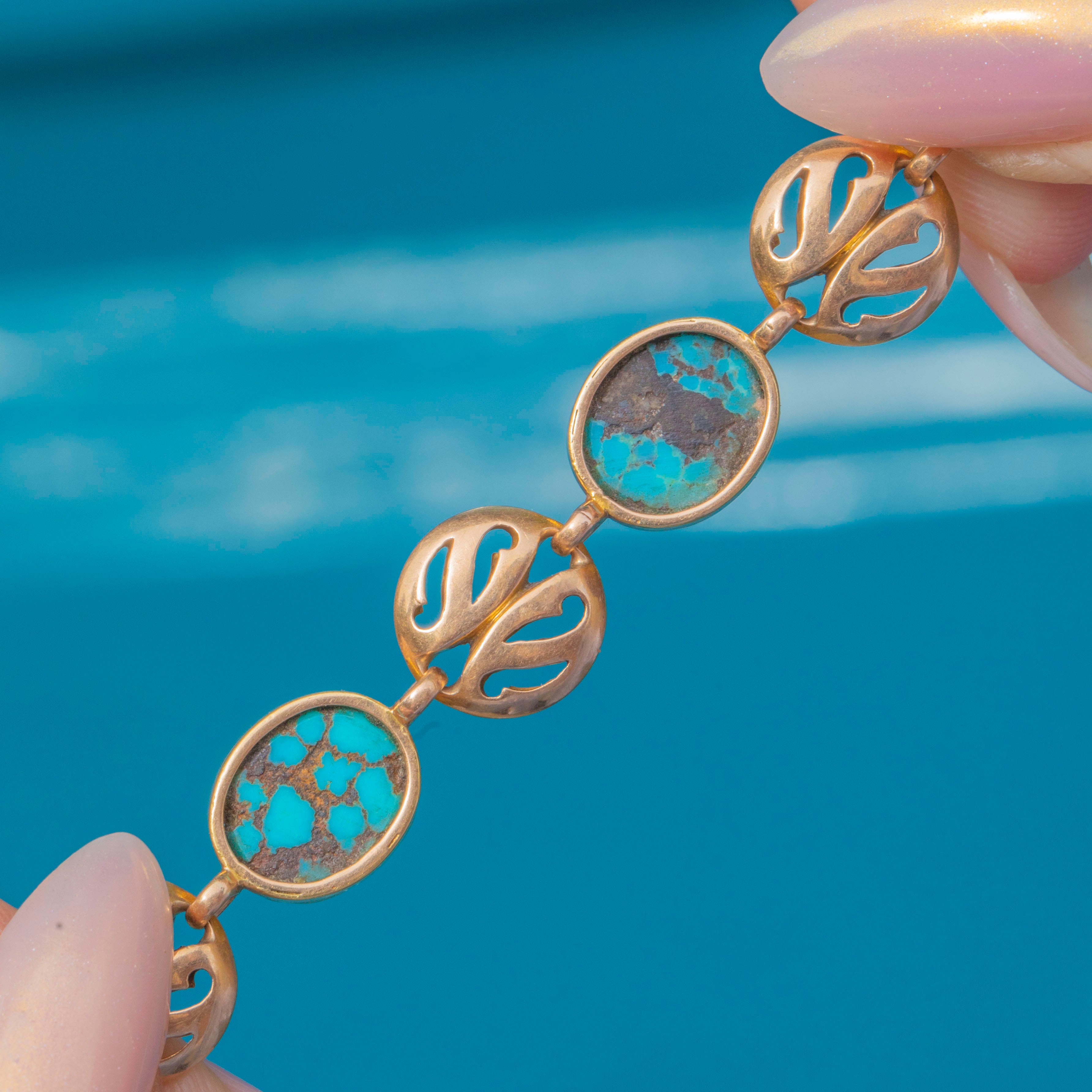 Arts & Crafts Era 15ct Gold Turquoise Disc Bracelet
