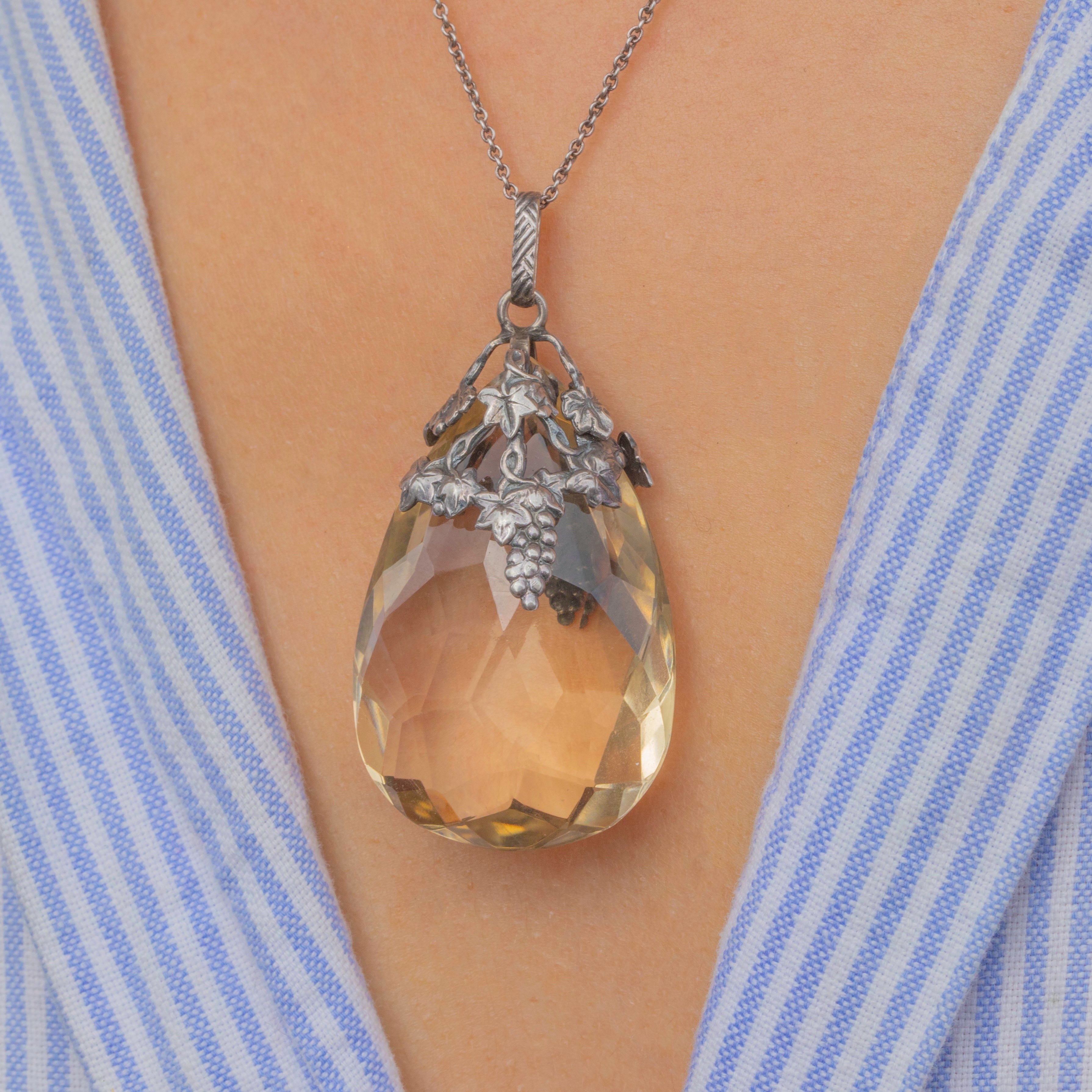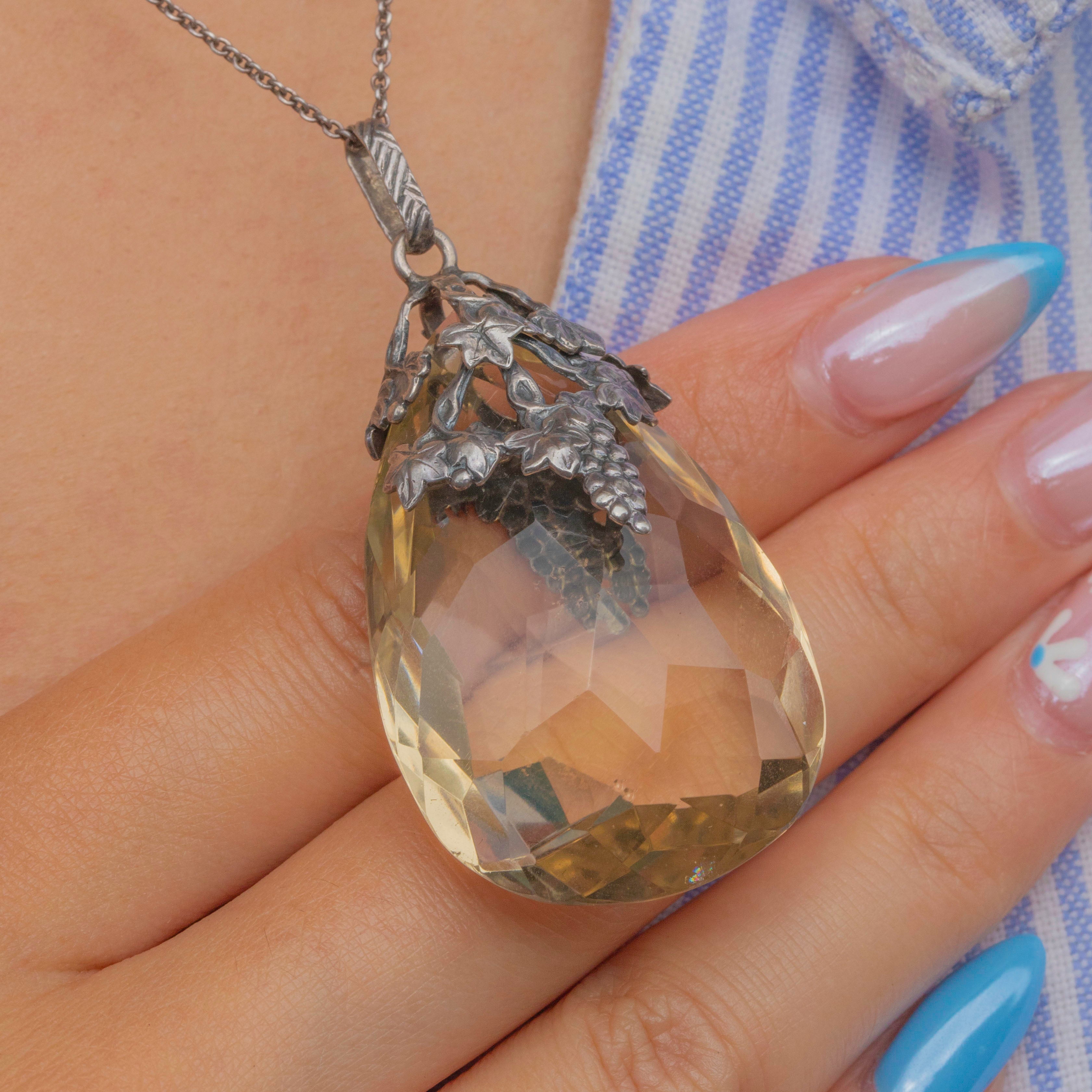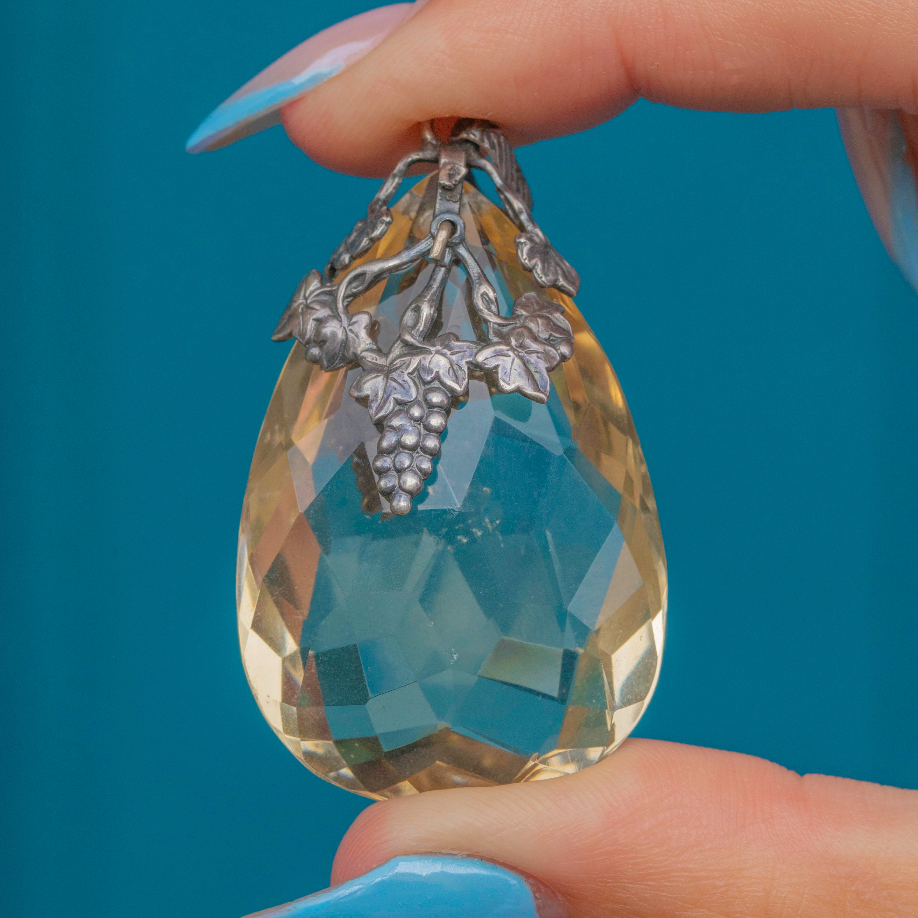 Arts & Crafts Silver Citrine Pear Pendant 51.00ct