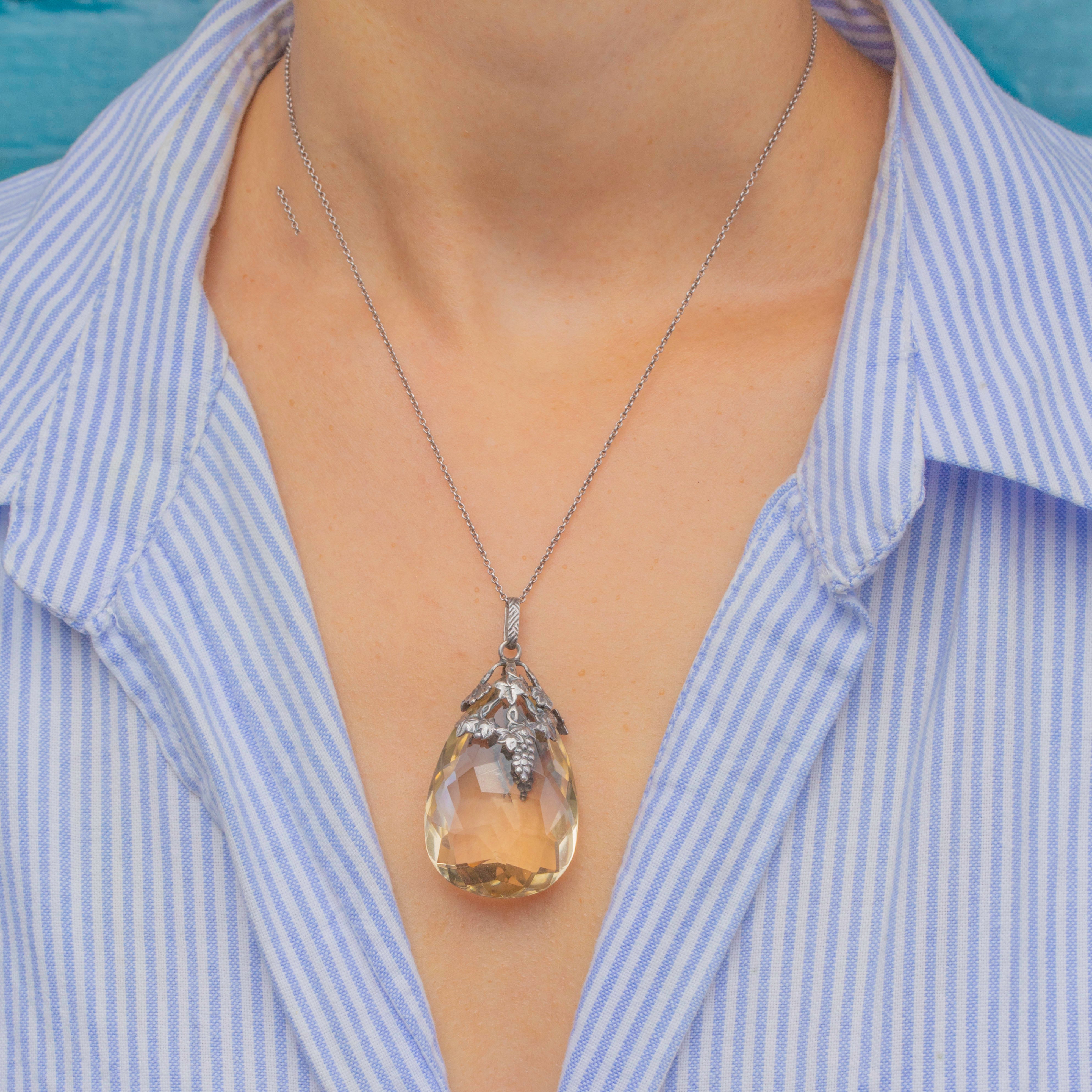 The soft, honey-toned 51.00ct briolette-cut Citrine shimmers effortlessly as its crisp facets catch the light, with the impressive size of the pendant making it a real standout piece!