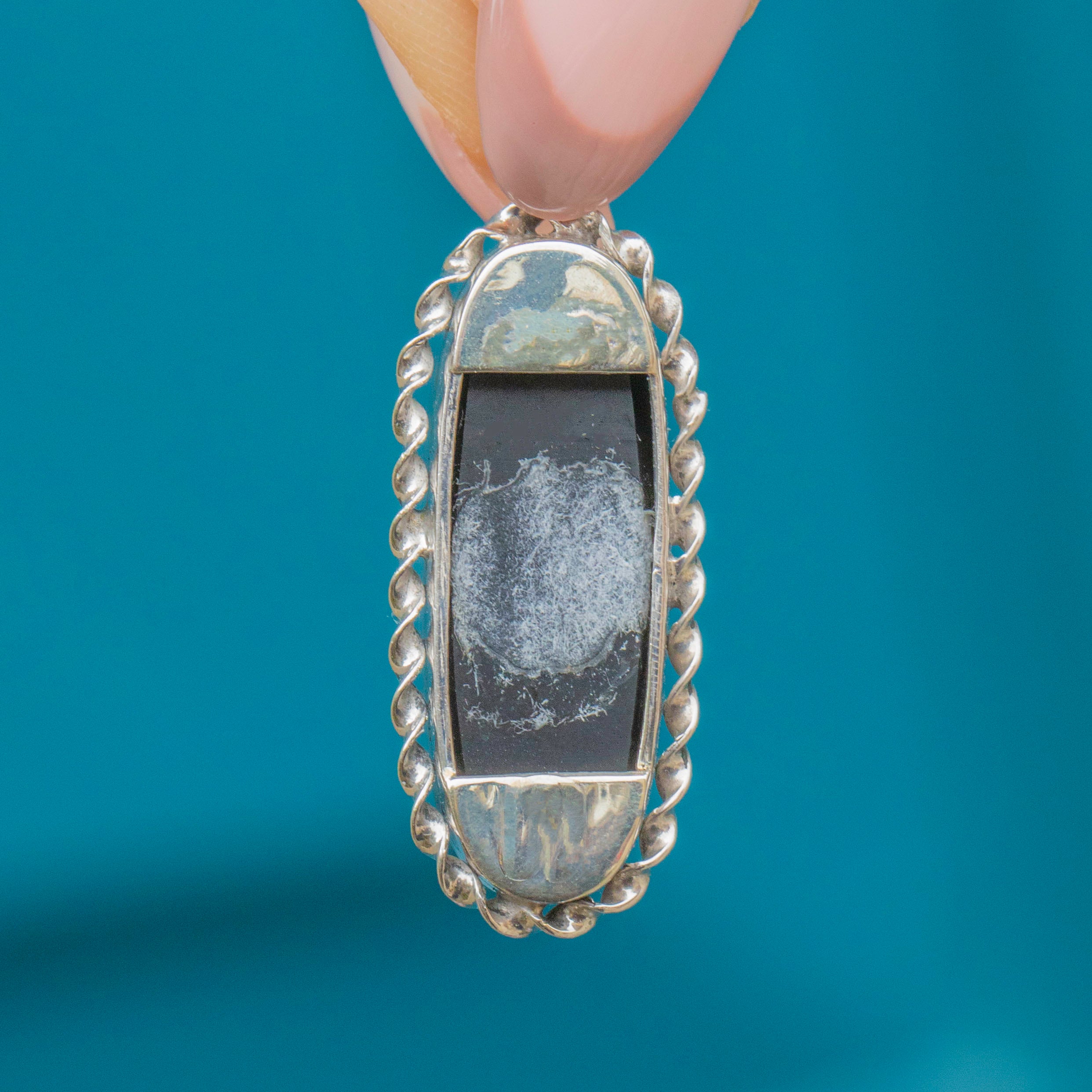 VERY GOOD. This Arts & Crafts Silver Opal Doublet pendant is in very good condition. The Opal doublet is smooth, free from chips or scuffs, and secure within its bezel. There is evidence on the back of the pendant from a brooch conversion, but it feels smooth and wears comfortably against the skin. The rope details have remained defined and securely affixed, and have accrued a light patina adding to the pendant's antique charm.