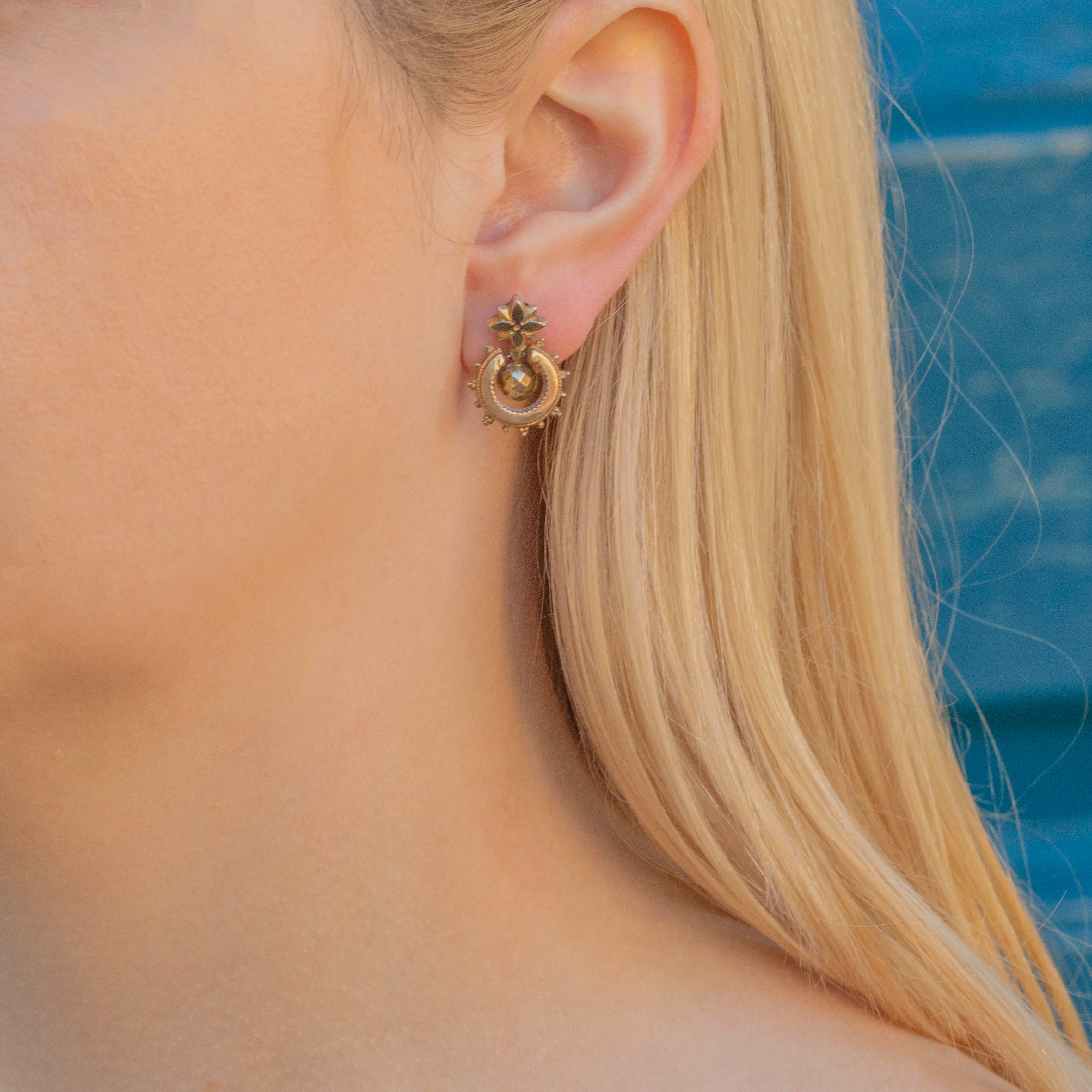 These authentic Victorian 9ct Gold drop earrings are set to become your new grab-and-go pair! Crafted from solid 9ct Gold, these antique earrings are a textural delight and, once affixed to your lobes, will shimmer brightly as they catch the light.