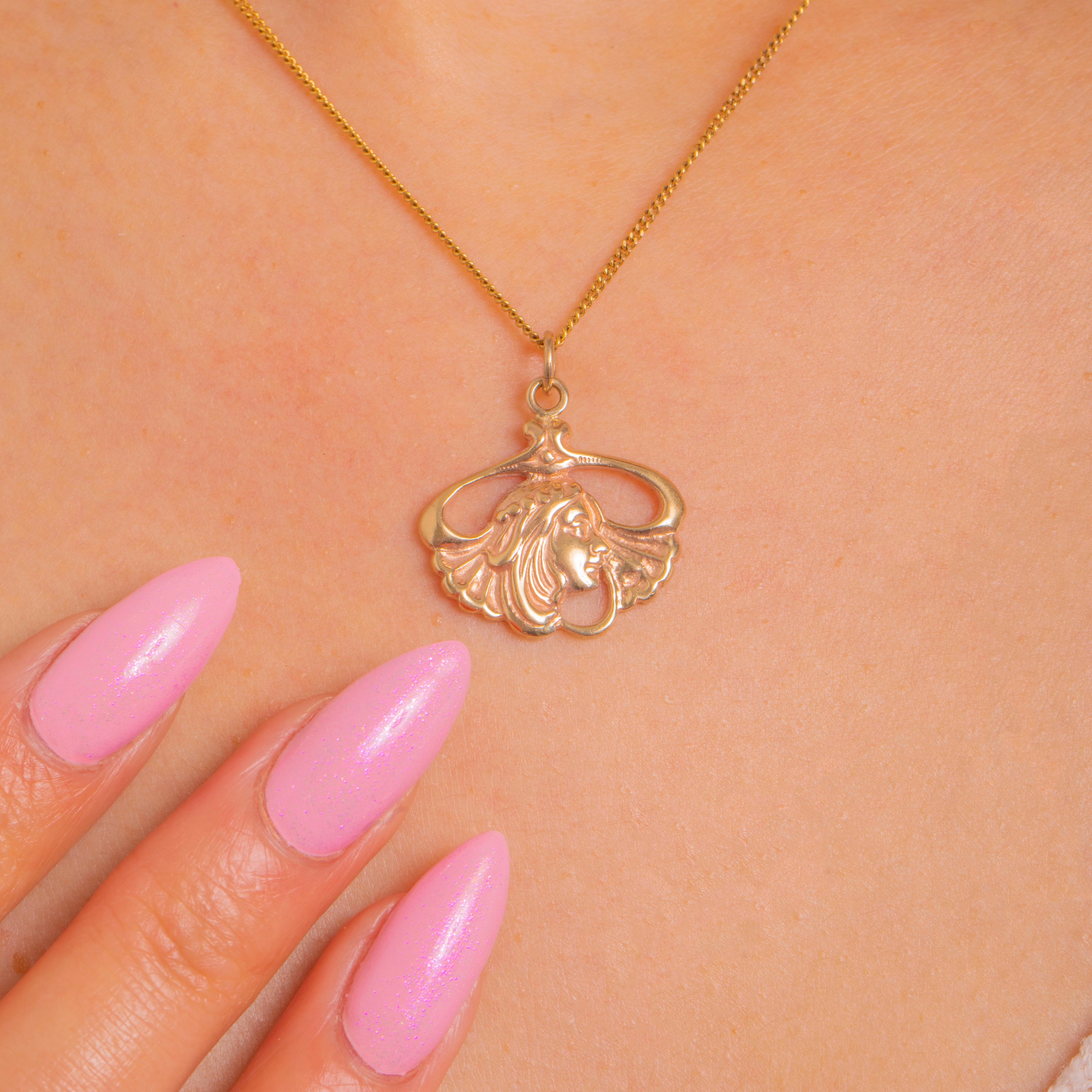 Beautiful Vintage 1970's Nouveau Style 9ct Gold Portrait Charm