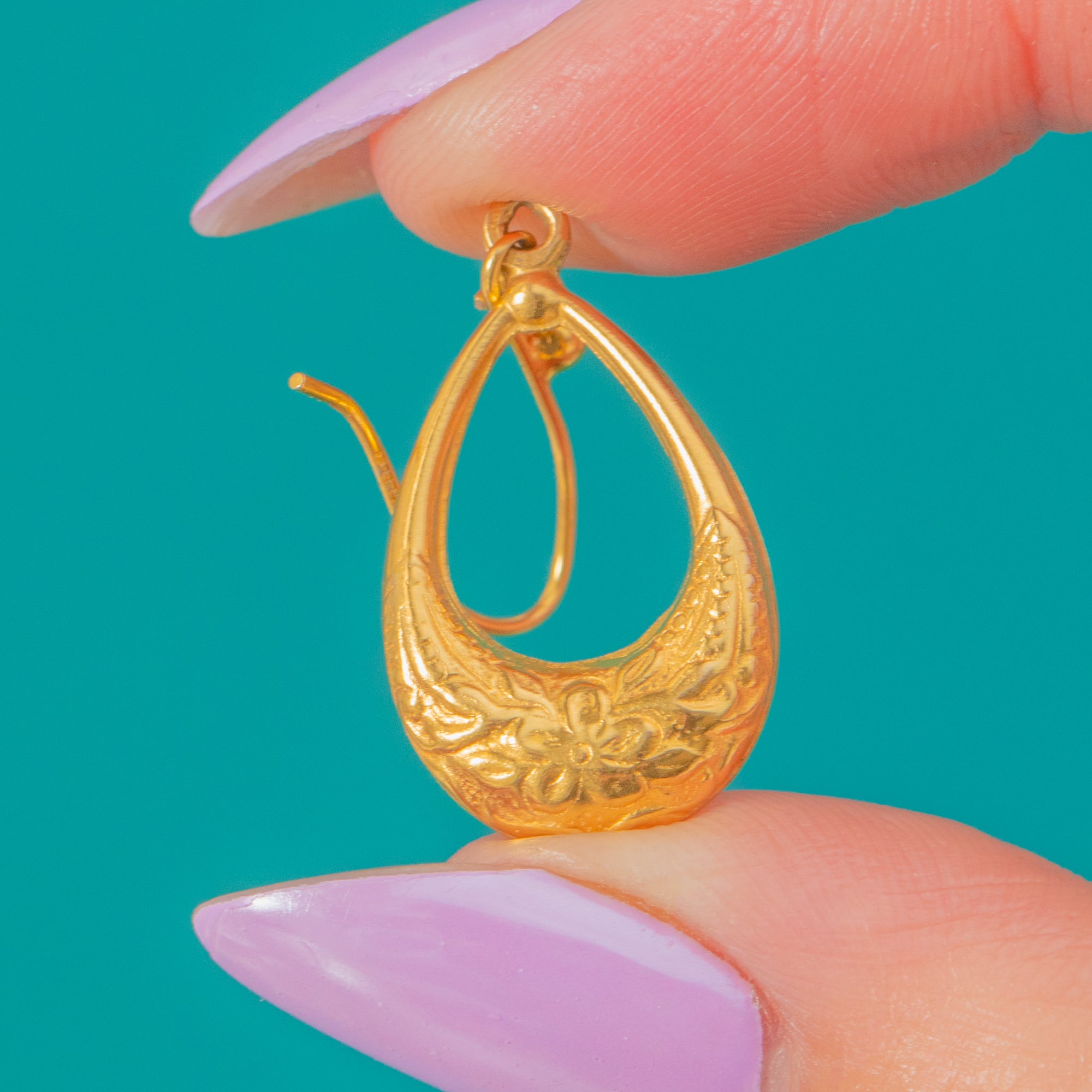 Delicately poised with Edwardian grace, these open teardrop earrings are fashioned in bright 9ct Gold and embellished with a charming floral rosette framed by scrolling foliage. The chased detailing on the rounded lower crescent catches the light beautifully, while the openwork silhouette lends a refined sense of air and movement.