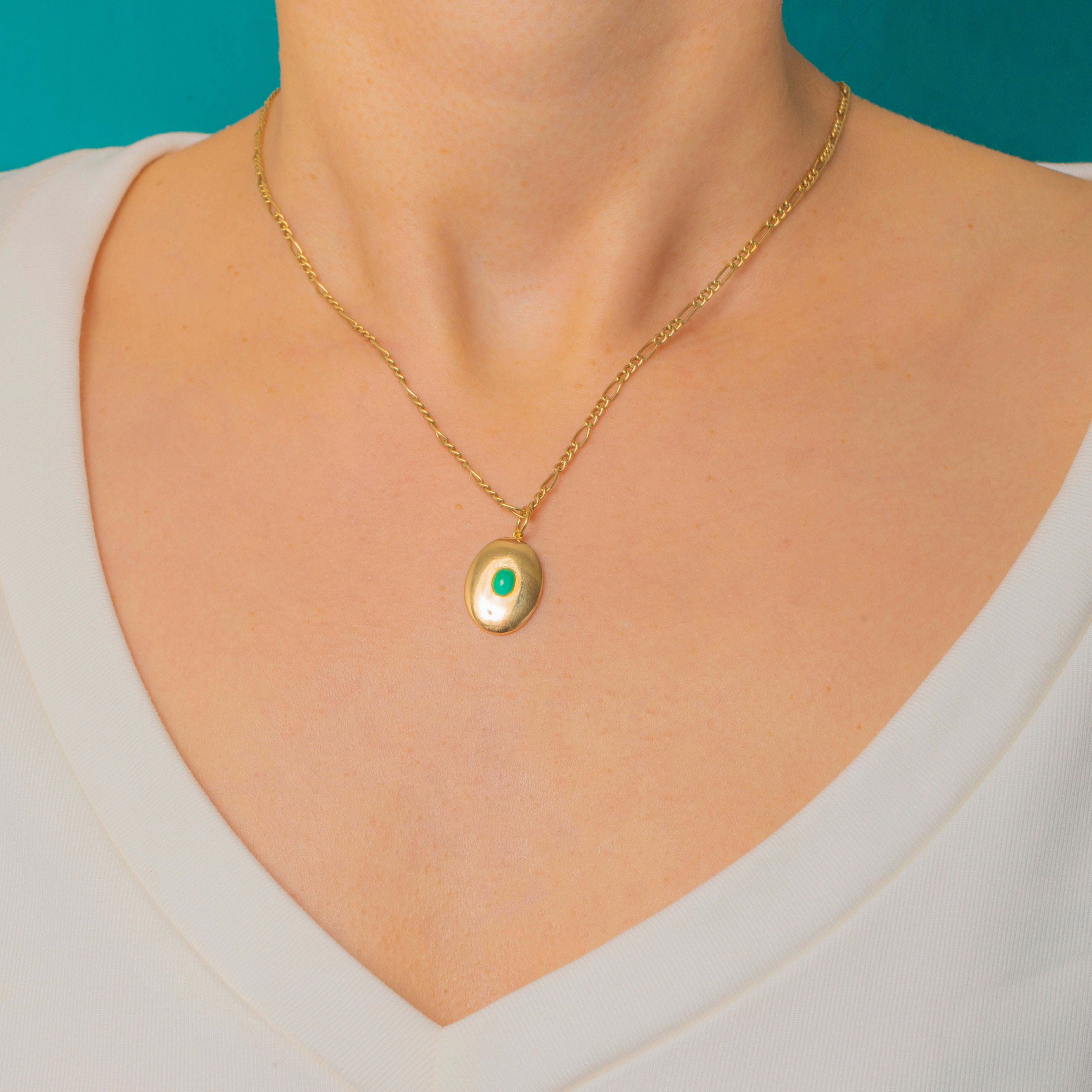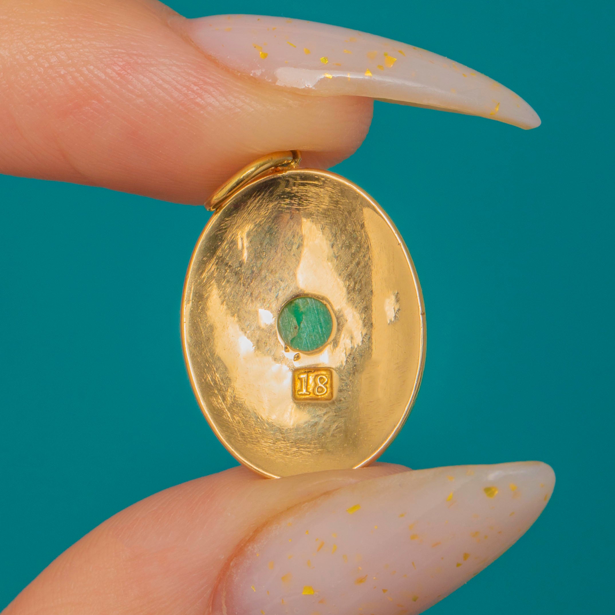 Chubby, tactile and deliciously minimalist, this late Victorian charm is crafted in solid 18ct Gold with a single flush‑set Turquoise cabochon at its heart. The domed “pebble” profile and glossy high polish give it a sculptural, modern feel, while the vivid green‑blue cabochon brings a joyful pop of colour.