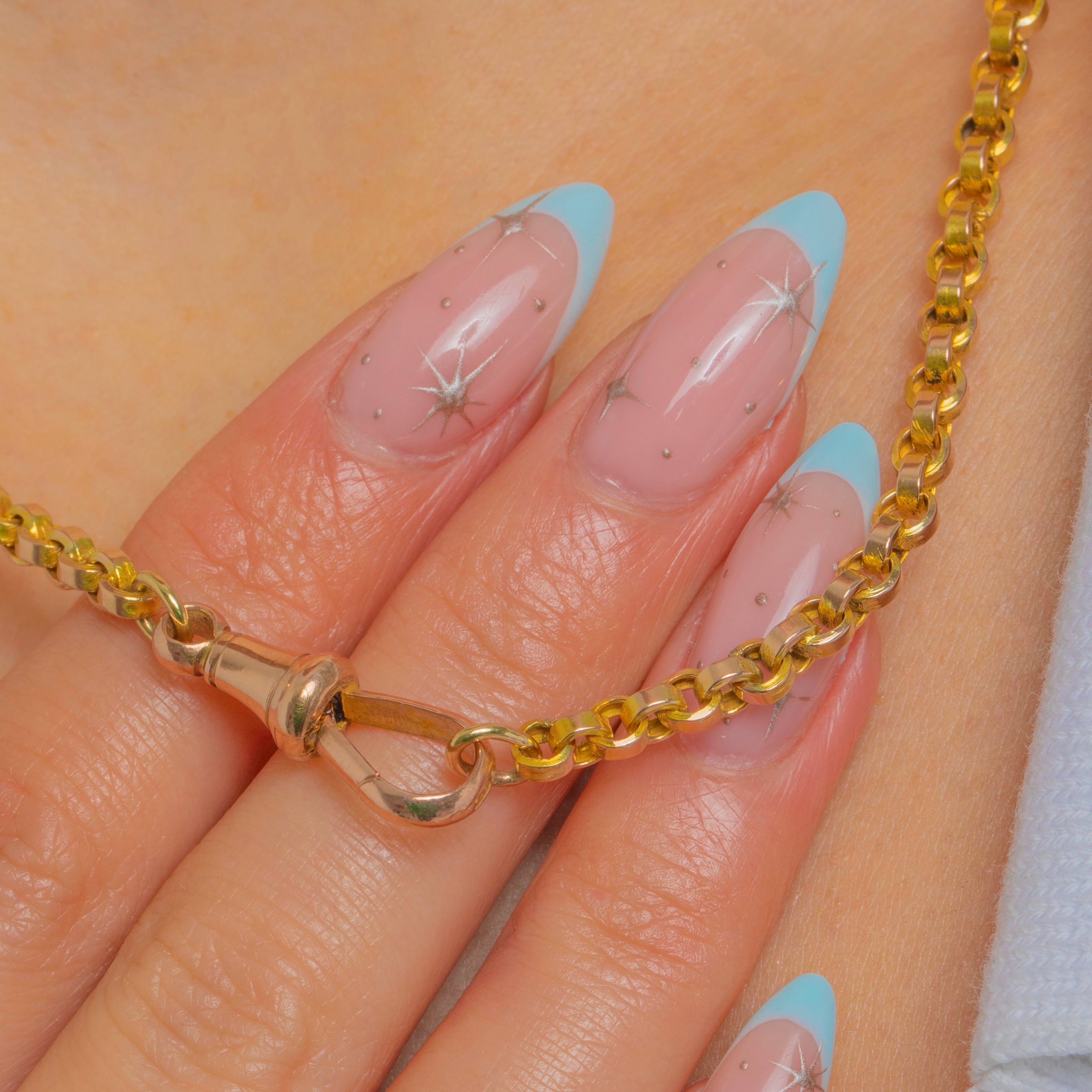 A classic Victorian 9ct Gold belcher chain, this 18" necklace is composed of uniform round links with a bright, glossy finish and that timeless watch‑chain allure. Its neat 3mm profile gives a compact, slightly chunky look that sits beautifully at the base of the neck.