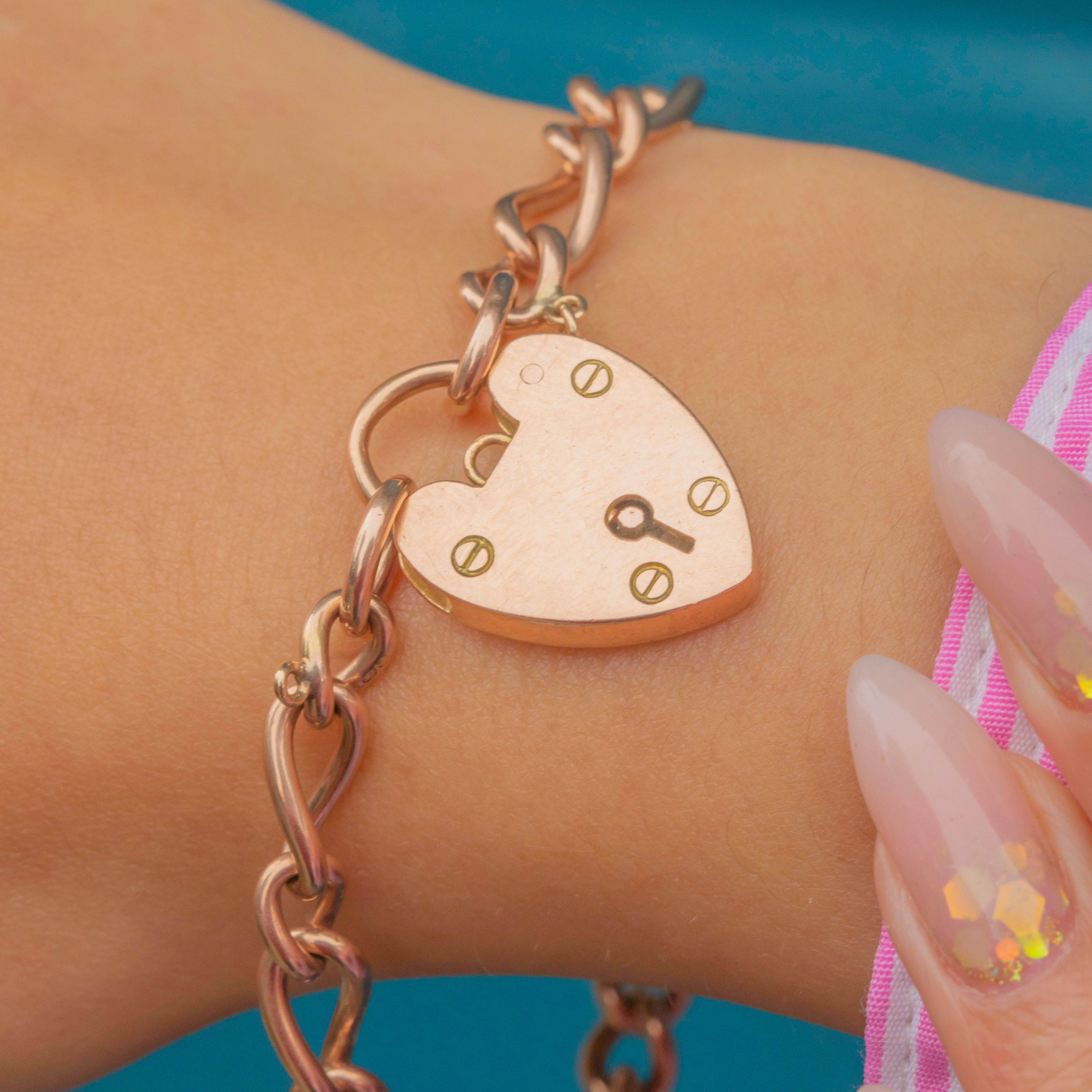 A superbly chunky Victorian bracelet crafted in rich 9ct Rosy Gold. Every single link is individually stamped “9” and “375”, a rare and highly desirable detail that speaks to the quality of the piece.