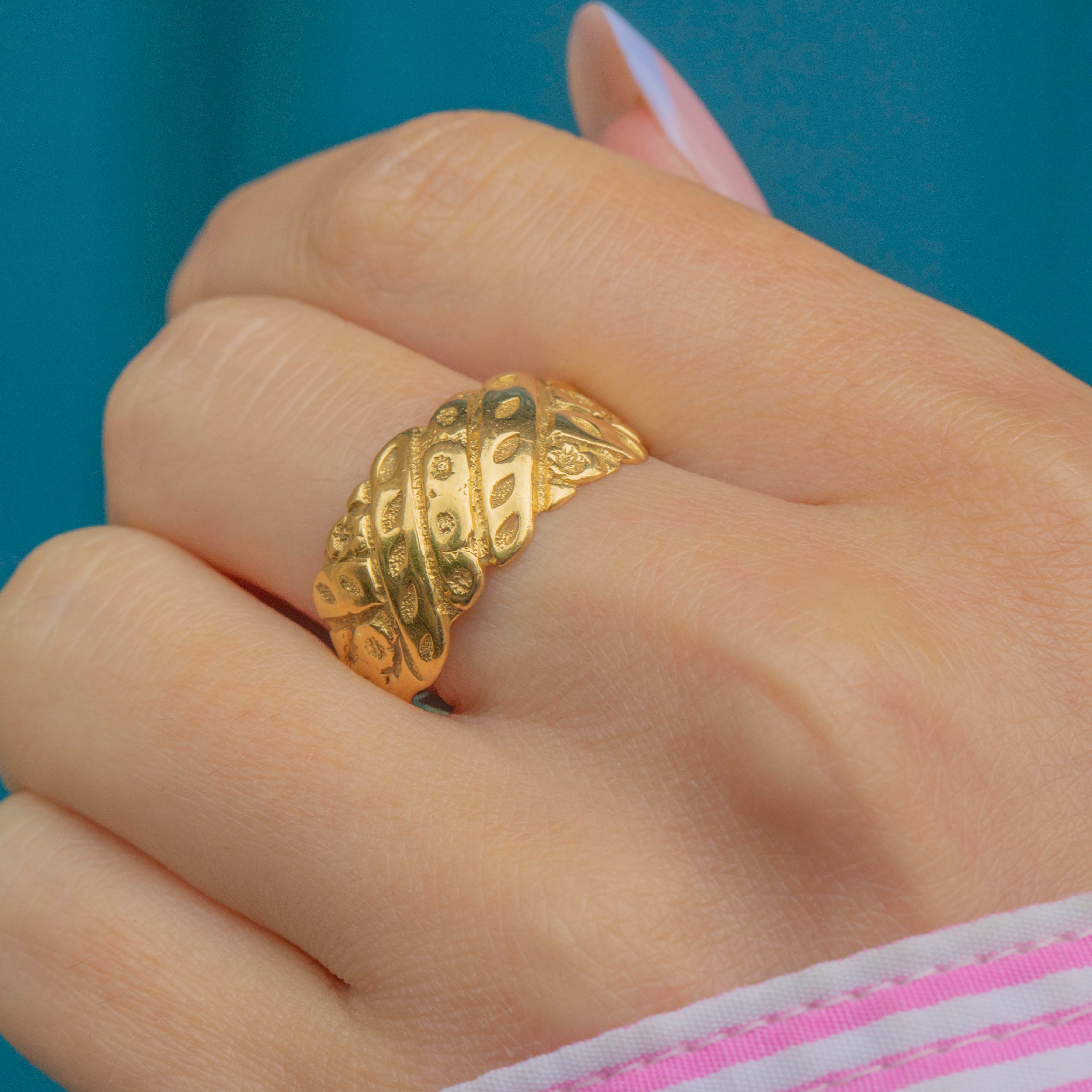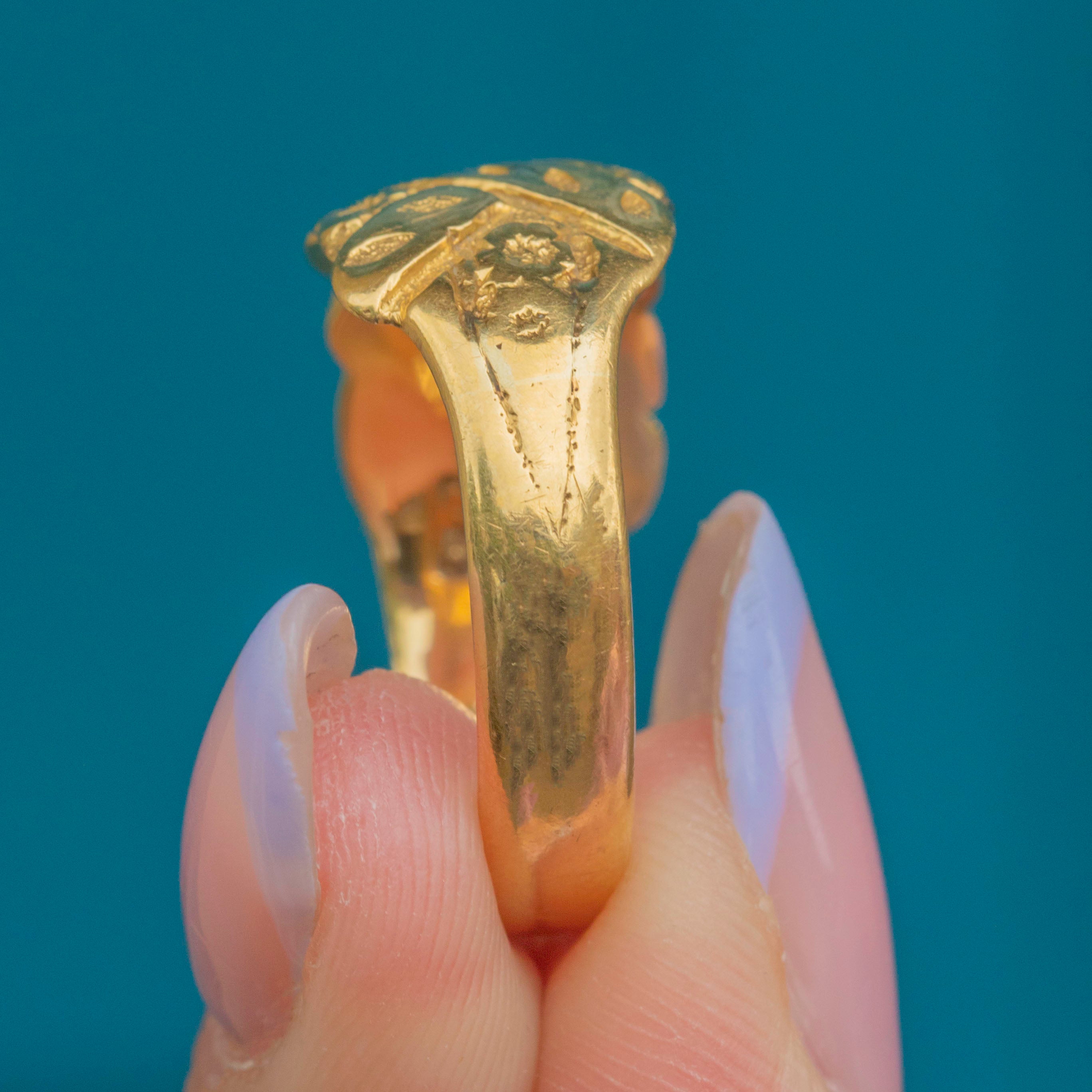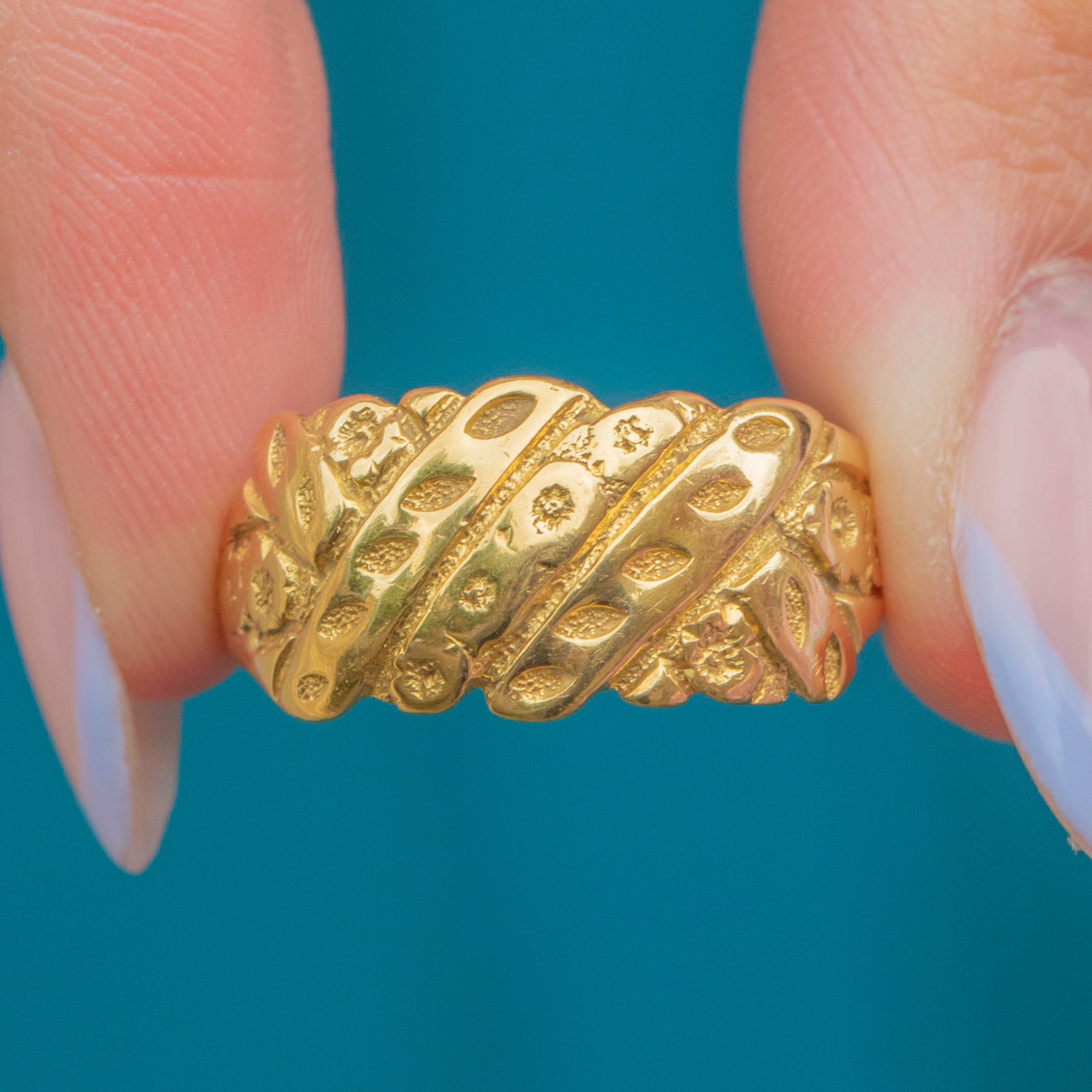 Chunky Antique 18ct Gold Floral Engraved Ring, c.1918 Item added