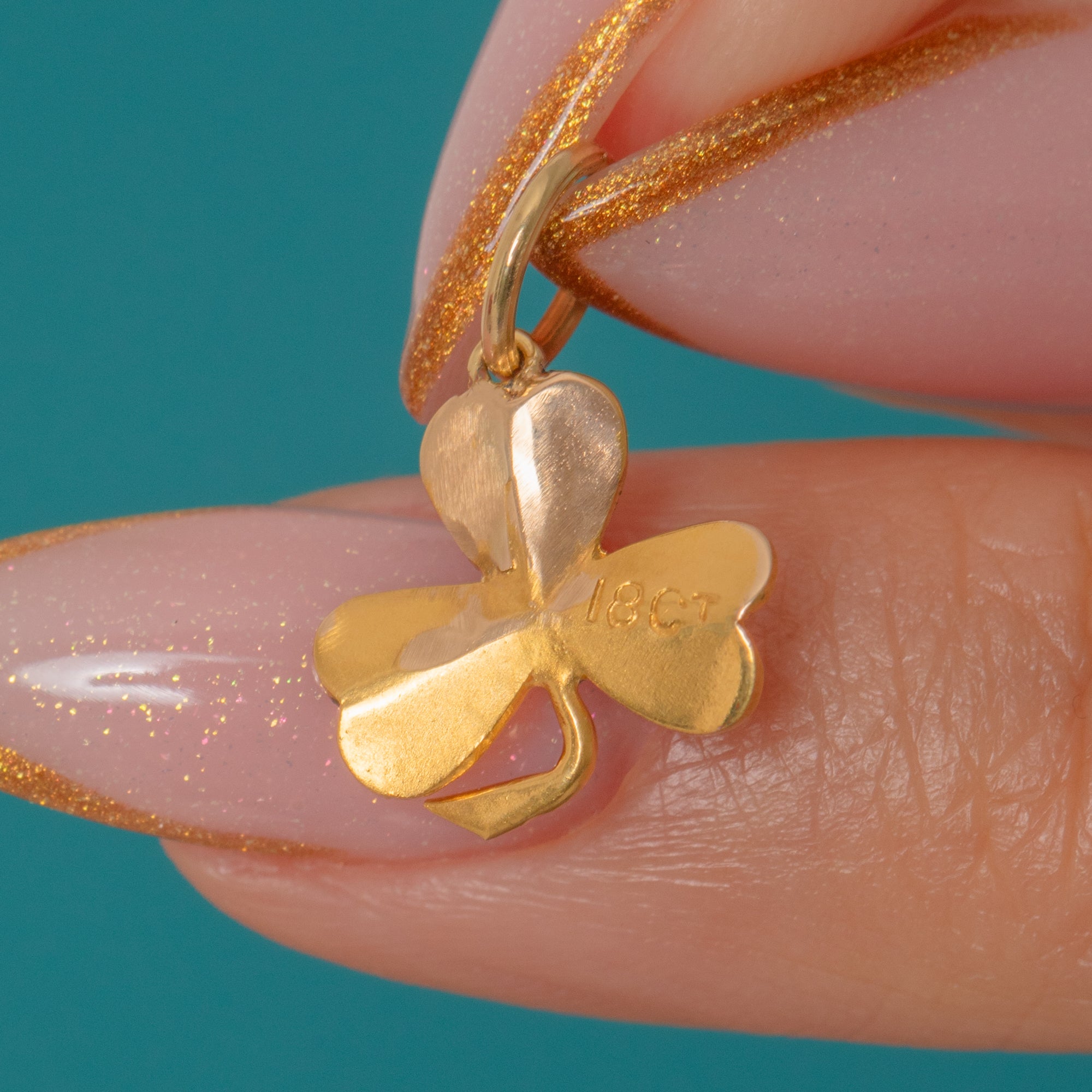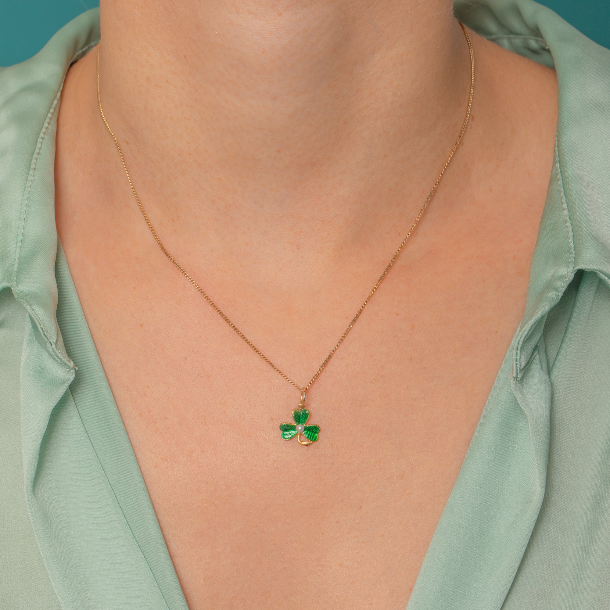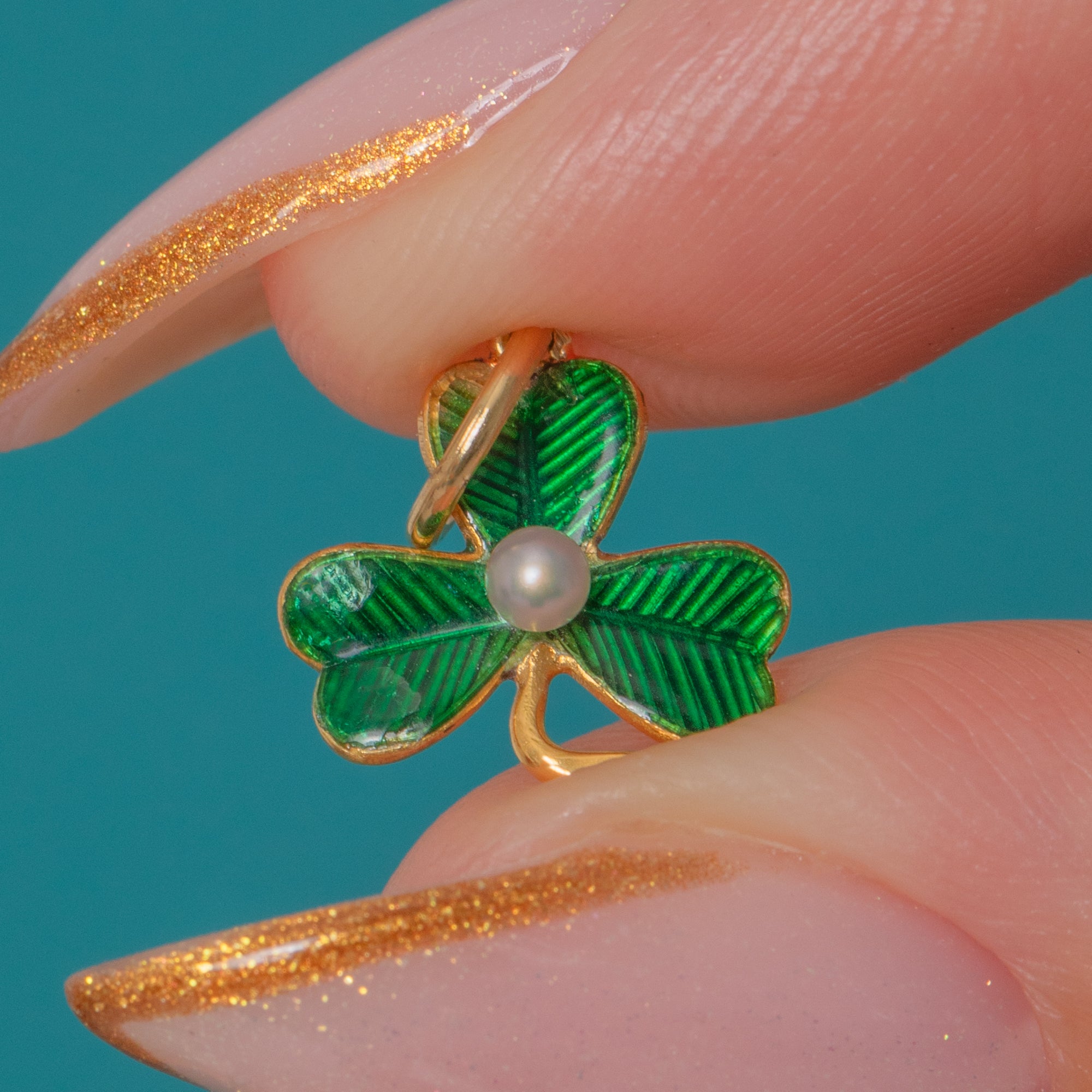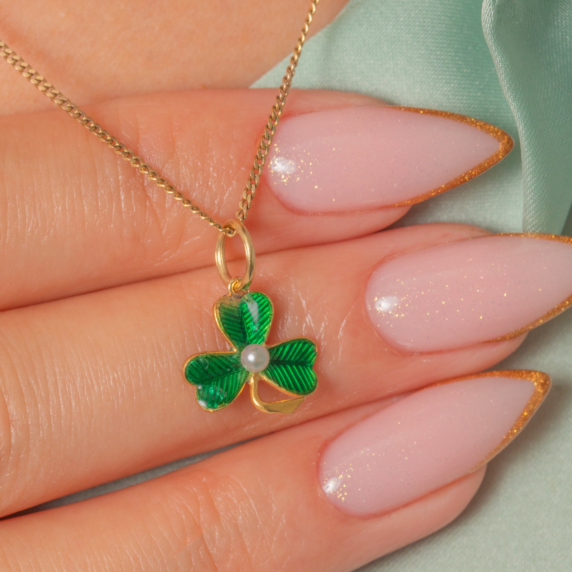 Dainty 18ct Gold Enamel Pearl Clover Charm