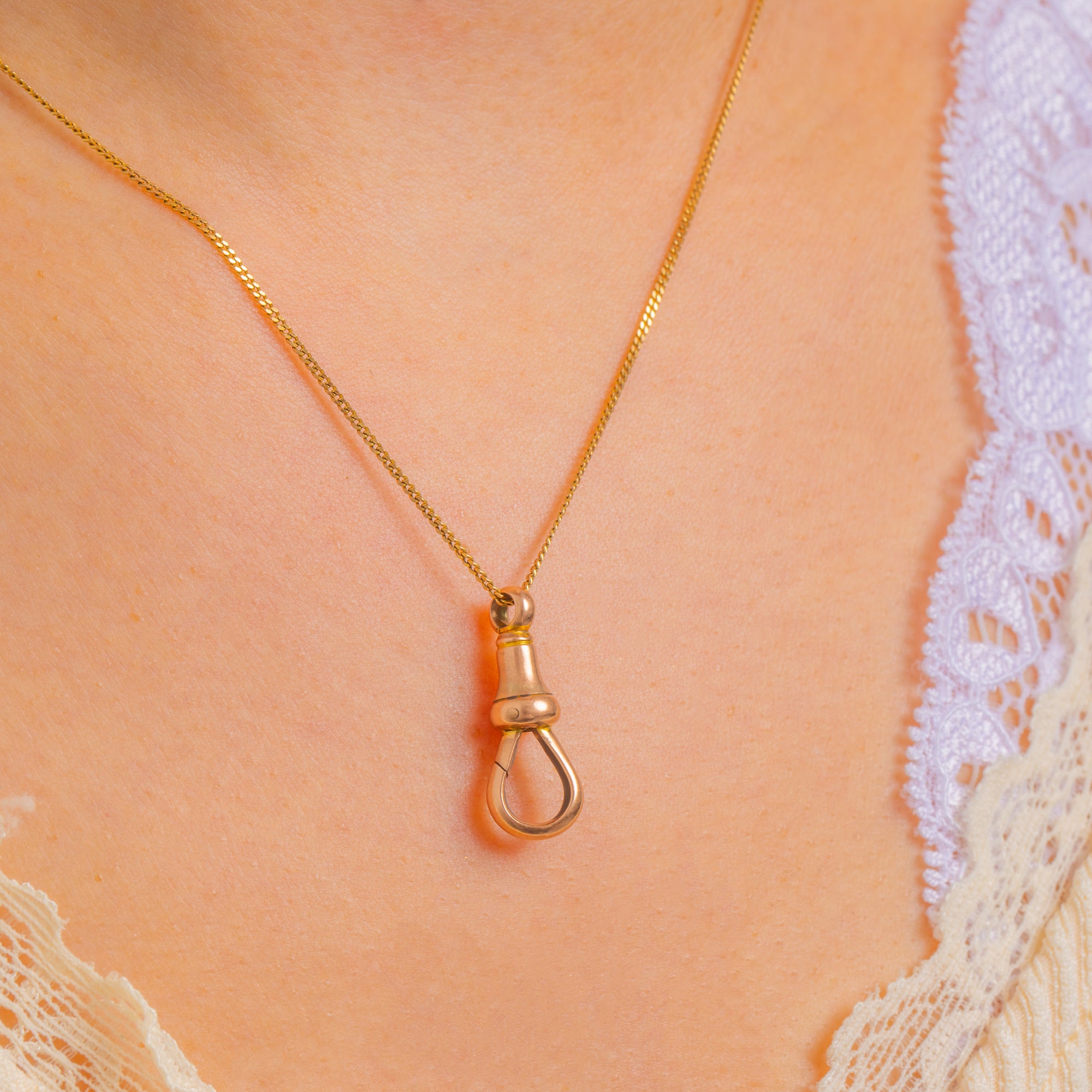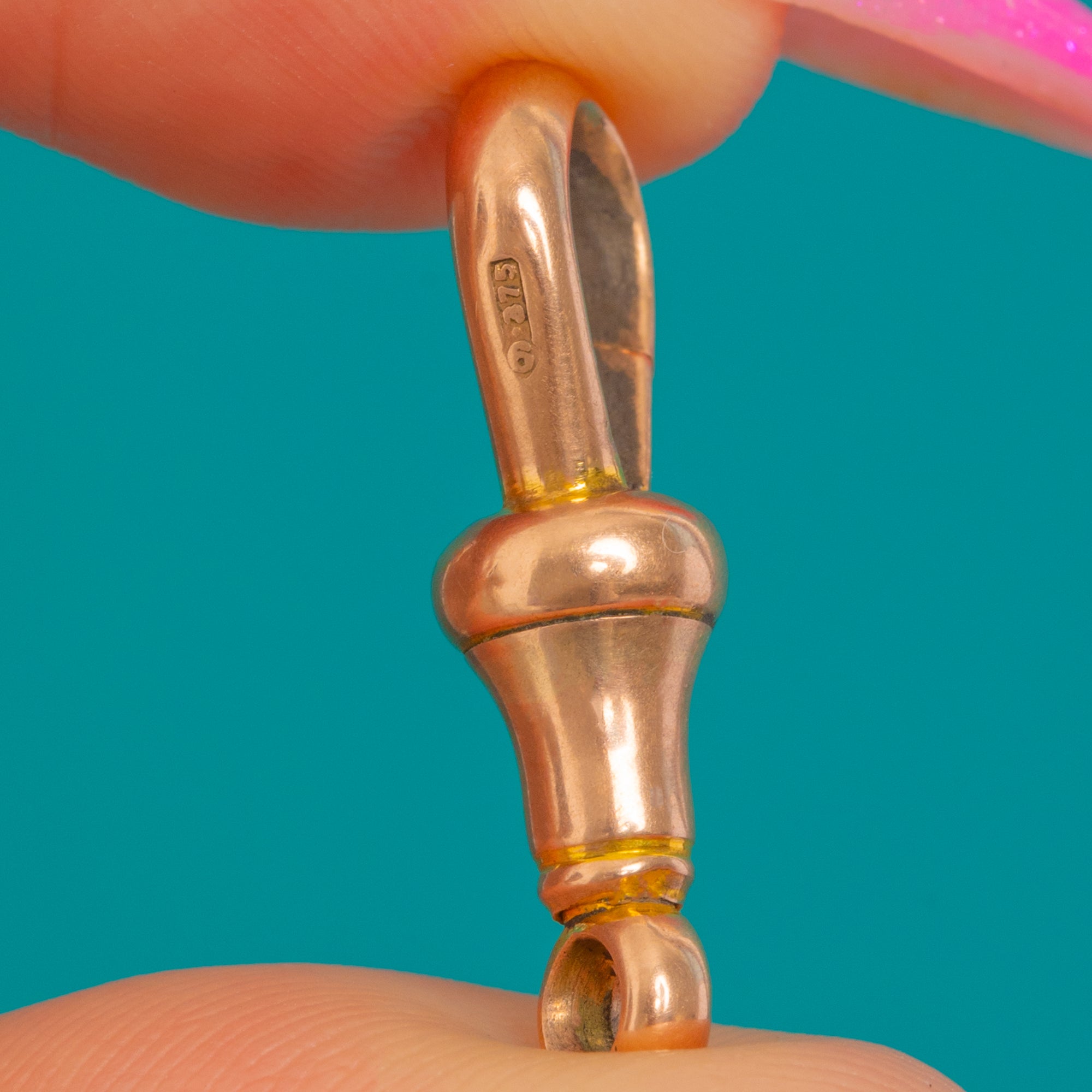 Petite yet beautifully made, this antique Victorian Dog Clip clasp is crafted in solid 9ct Gold with a warm, peachy-rose hue. Its streamlined teardrop silhouette and polished finish deliver that perfect blend of elegance and utility—ready to elevate your favourite chains and to securely display charms, lockets or fobs with effortless poise.