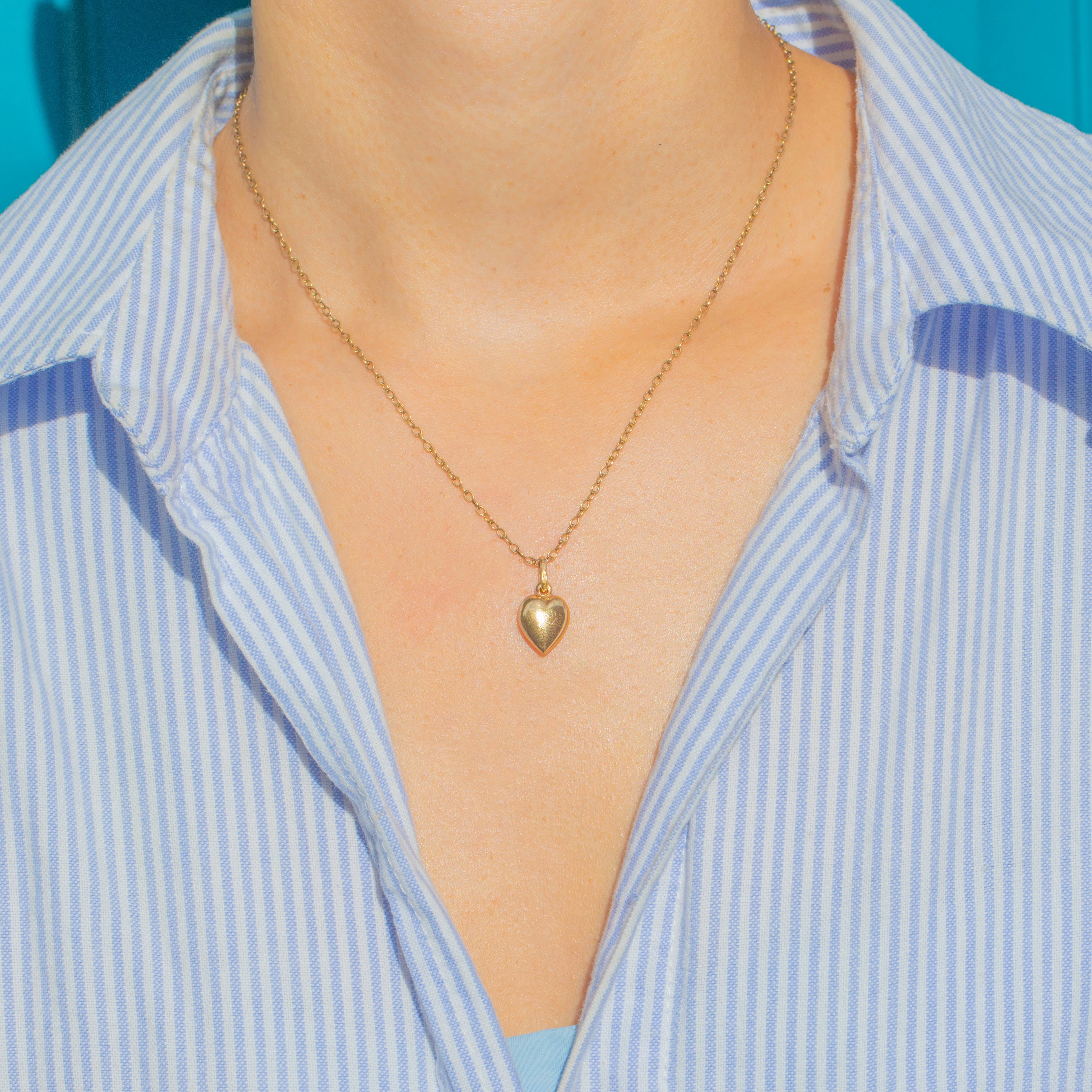 This dainty Vintage Gold puffy heart charm is a sweet and timeless piece of mid 20th-century design. Puffy hearts are enduringly popular motifs, loved for their soft curves and romantic symbolism, and this one comes from the renowned Italian maker Unoaerre.