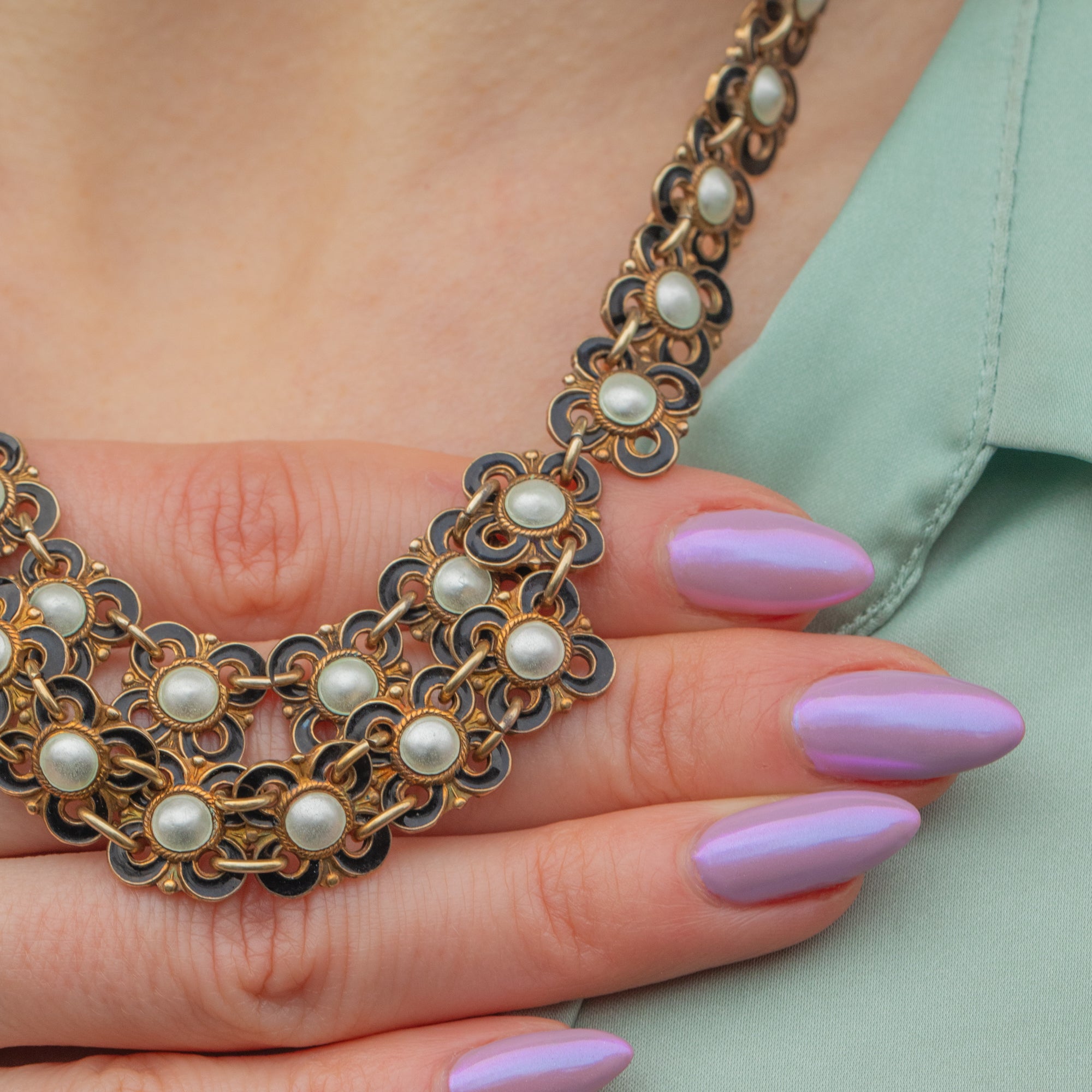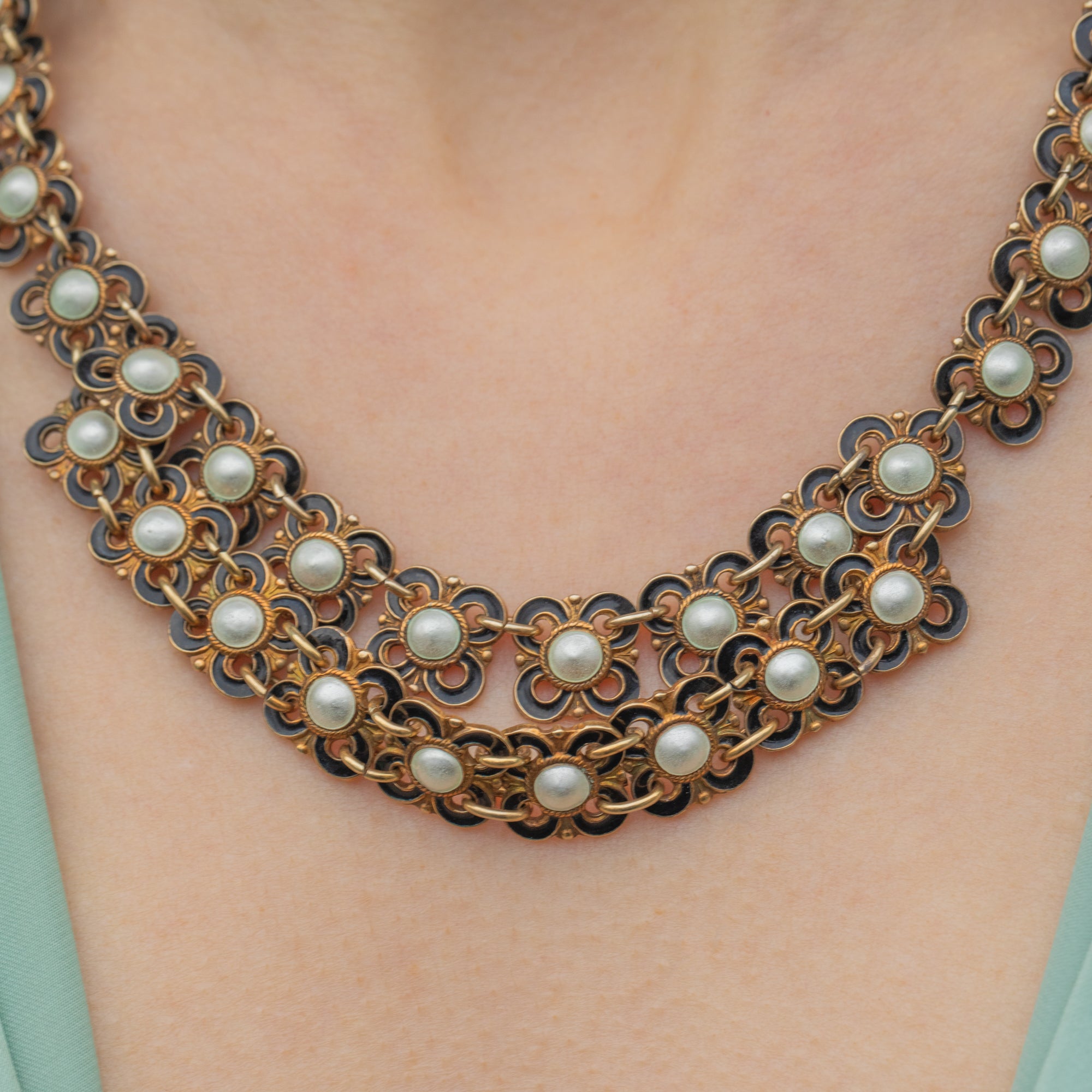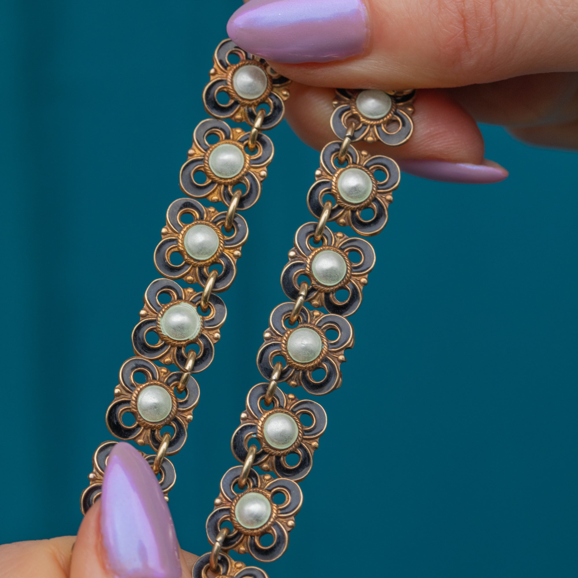 This David Anderson 18ct Gold gilded black Enamel flower necklace is such a unique find!