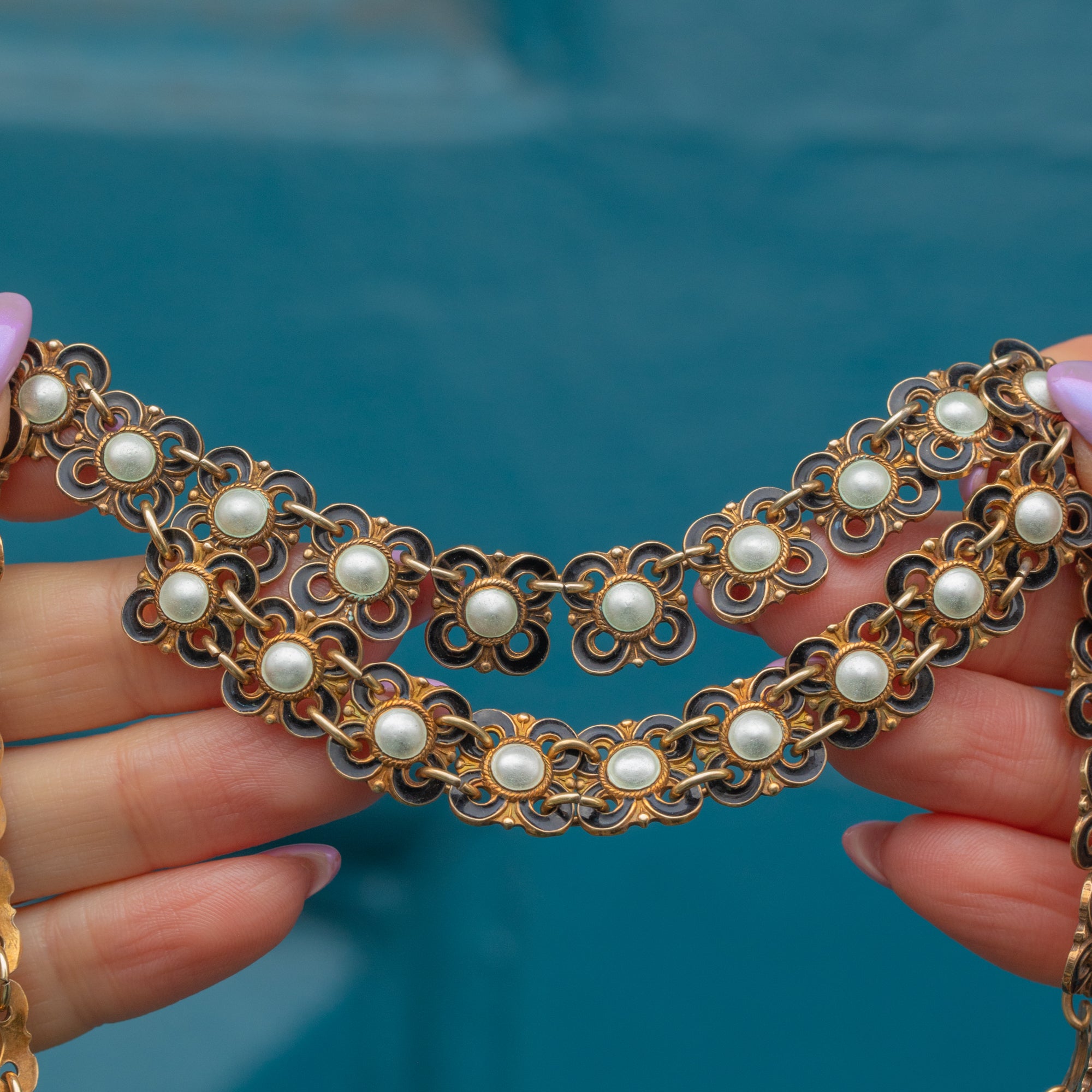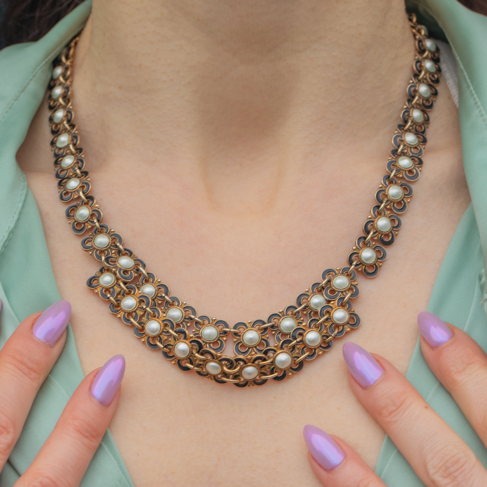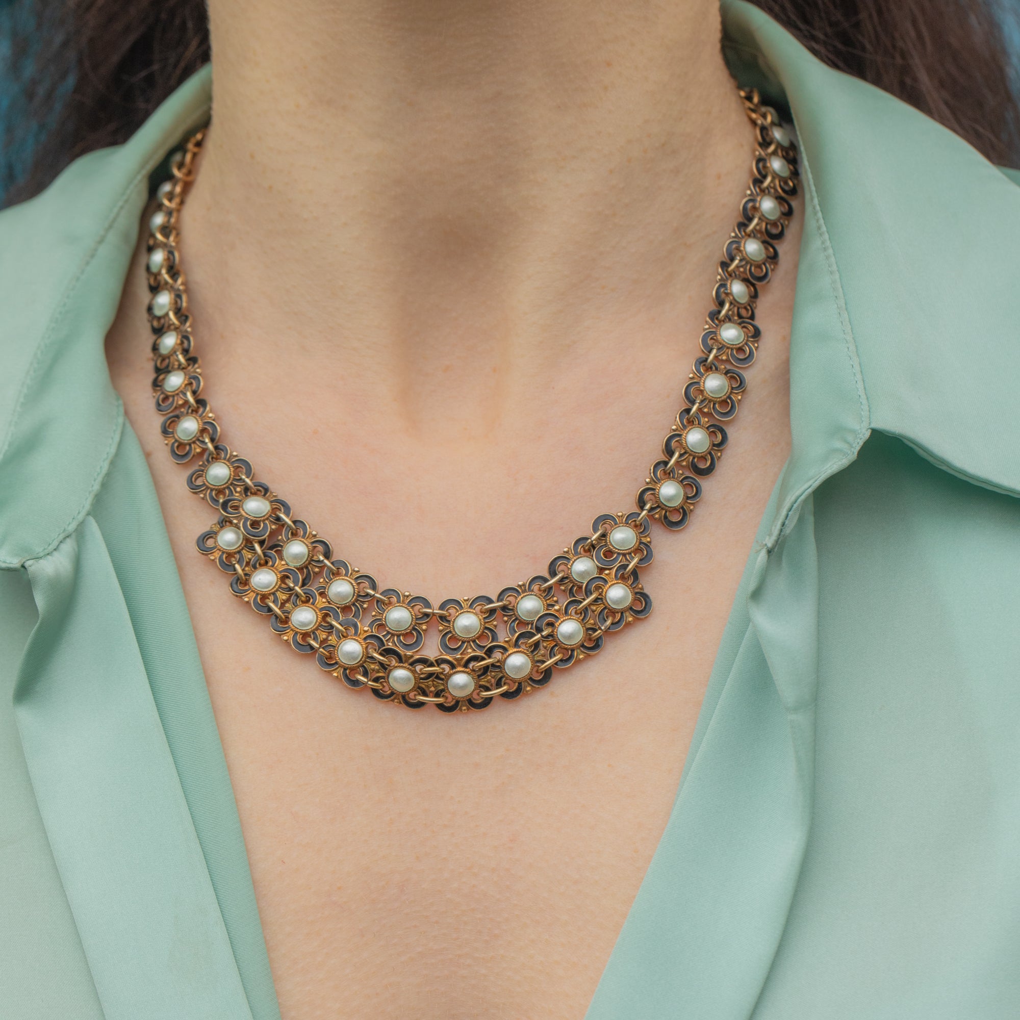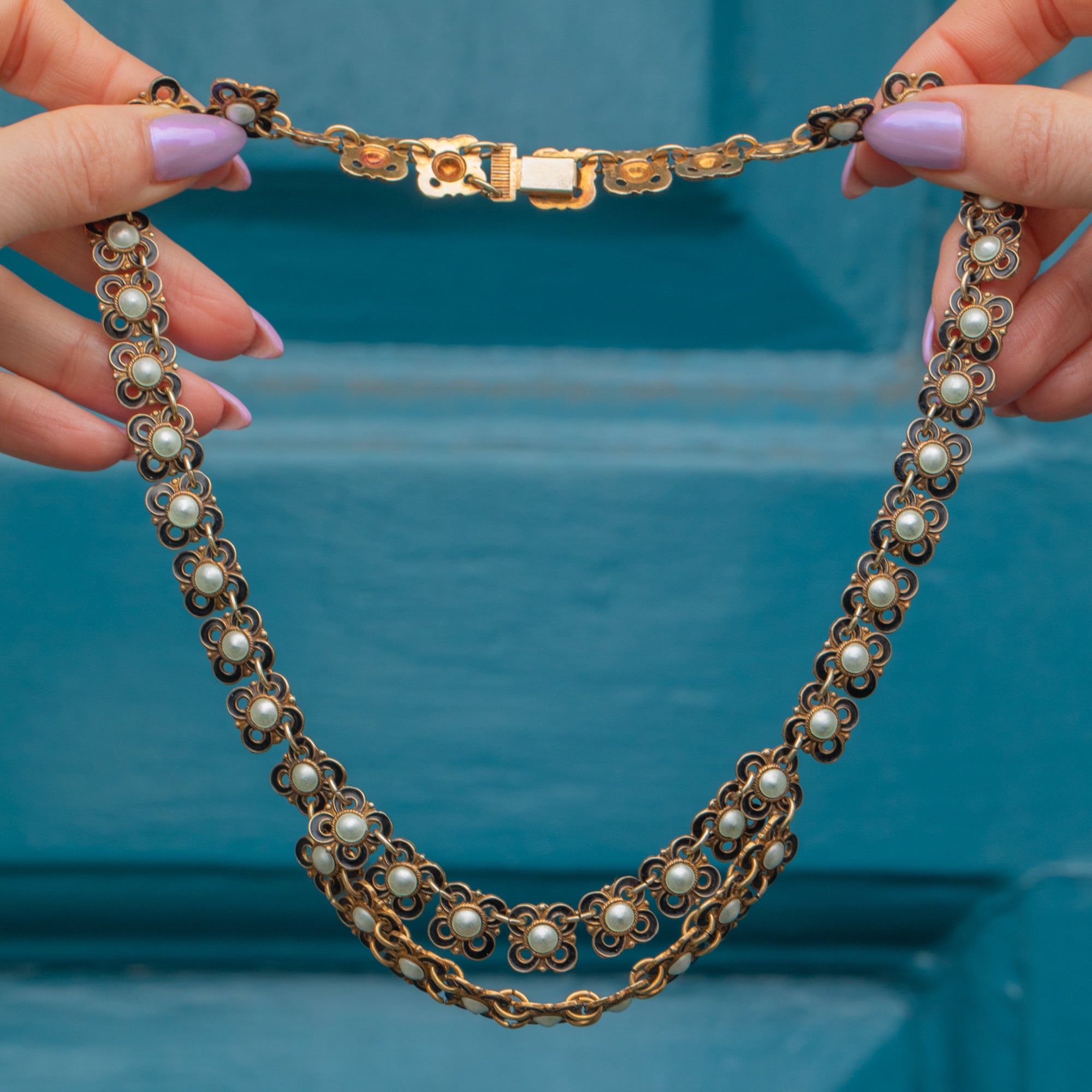 This David Anderson 18ct Gold gilded black Enamel flower necklace is such a unique find!