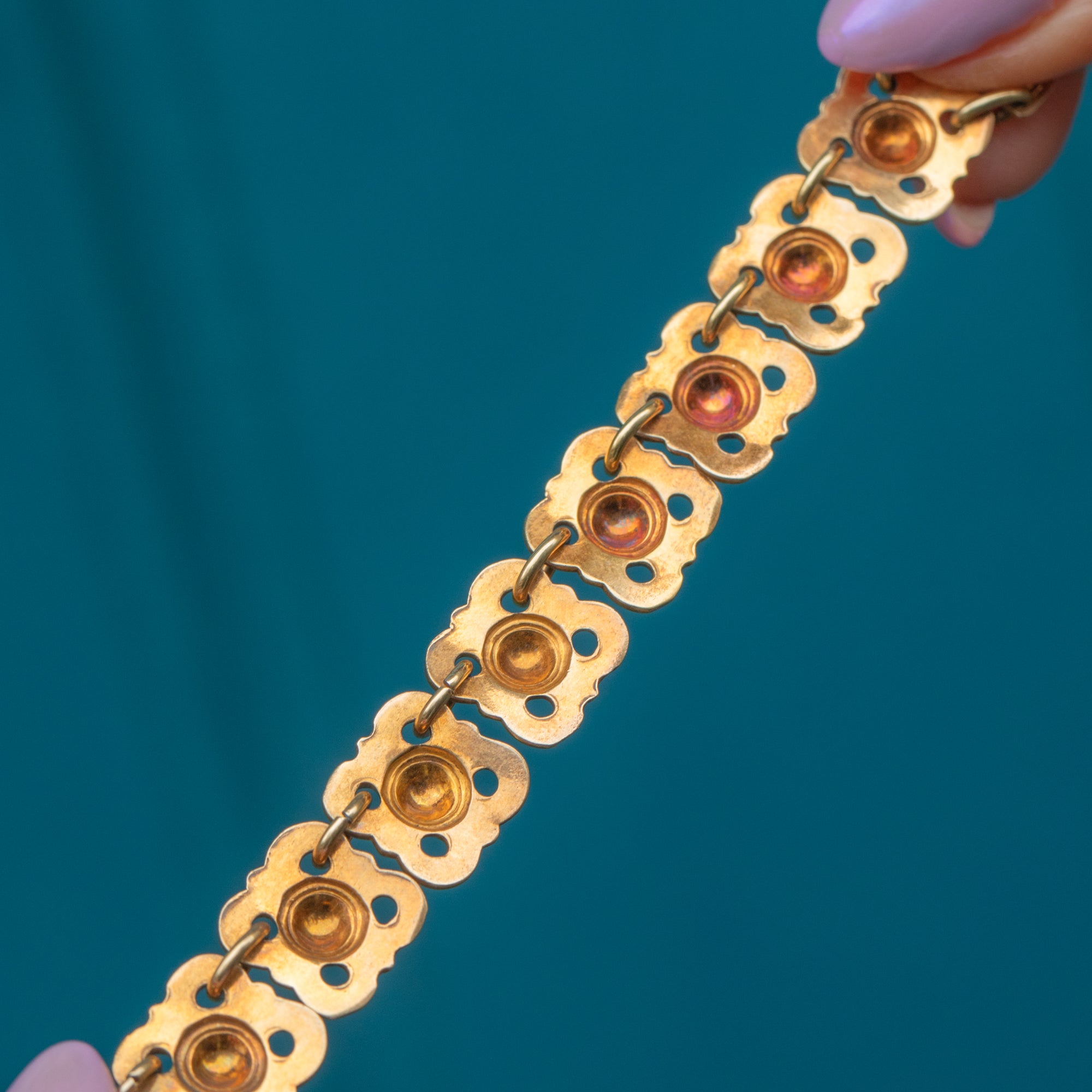 GOOD-VERY GOOD. This David Anderson 18ct Gold gilded Black Enamel flower necklace is in lovely condition. The links are all secure, and the Enamel has kept remarkably well. The clasp functions securley, allowing you to wear this treasure with confidence! The Gilding on the back of the necklace has become less bright over the years from lots of loving wear, but you can't see this when you wear her!