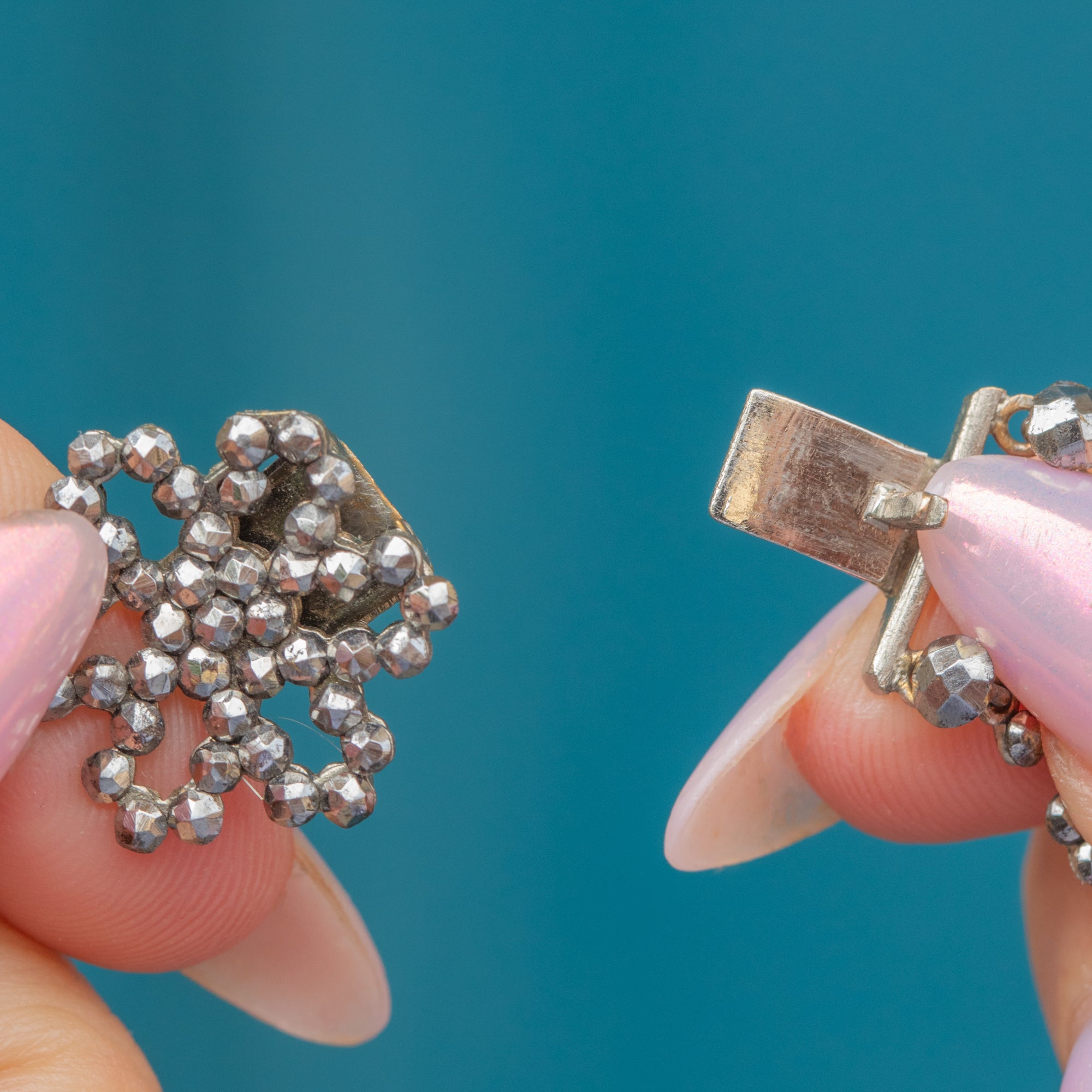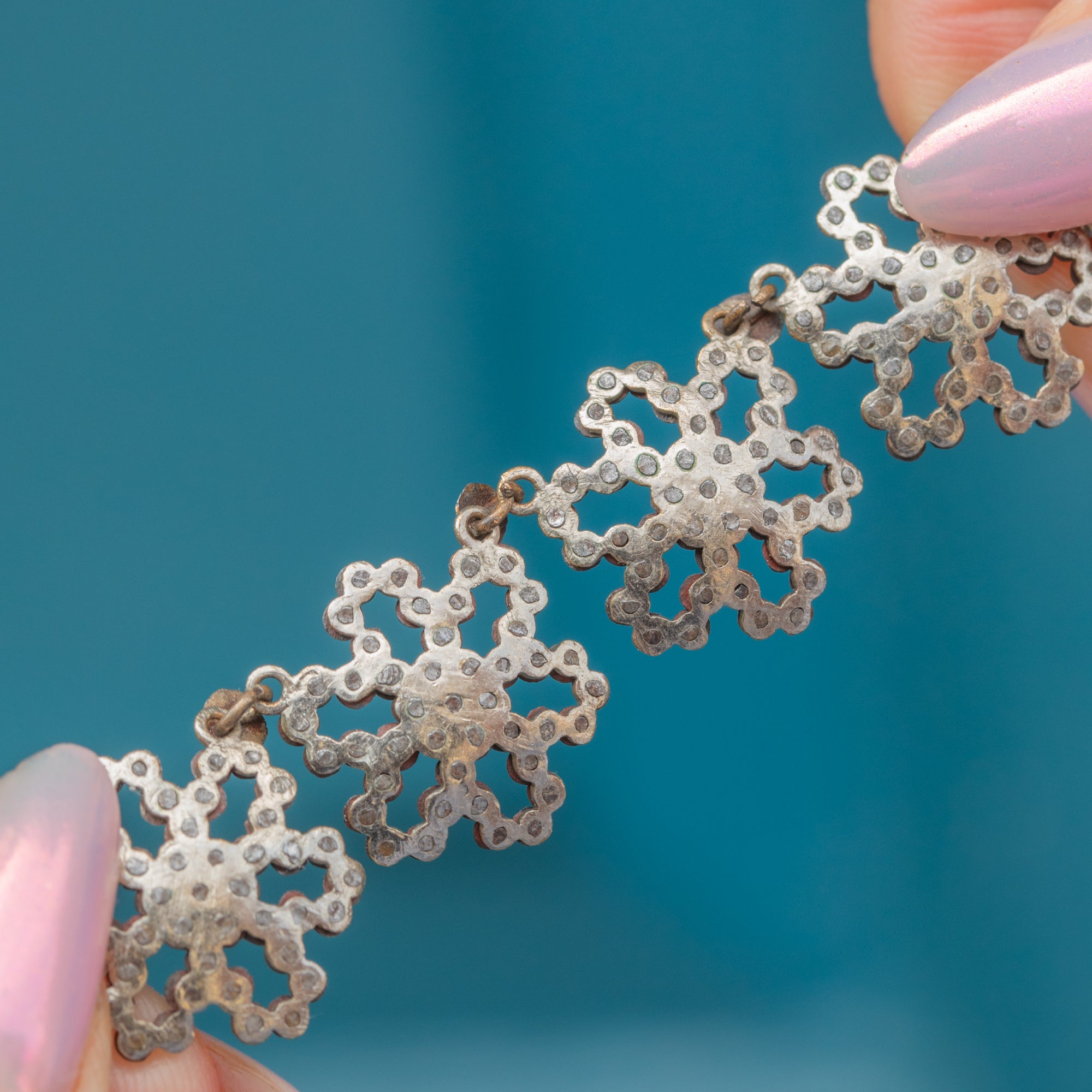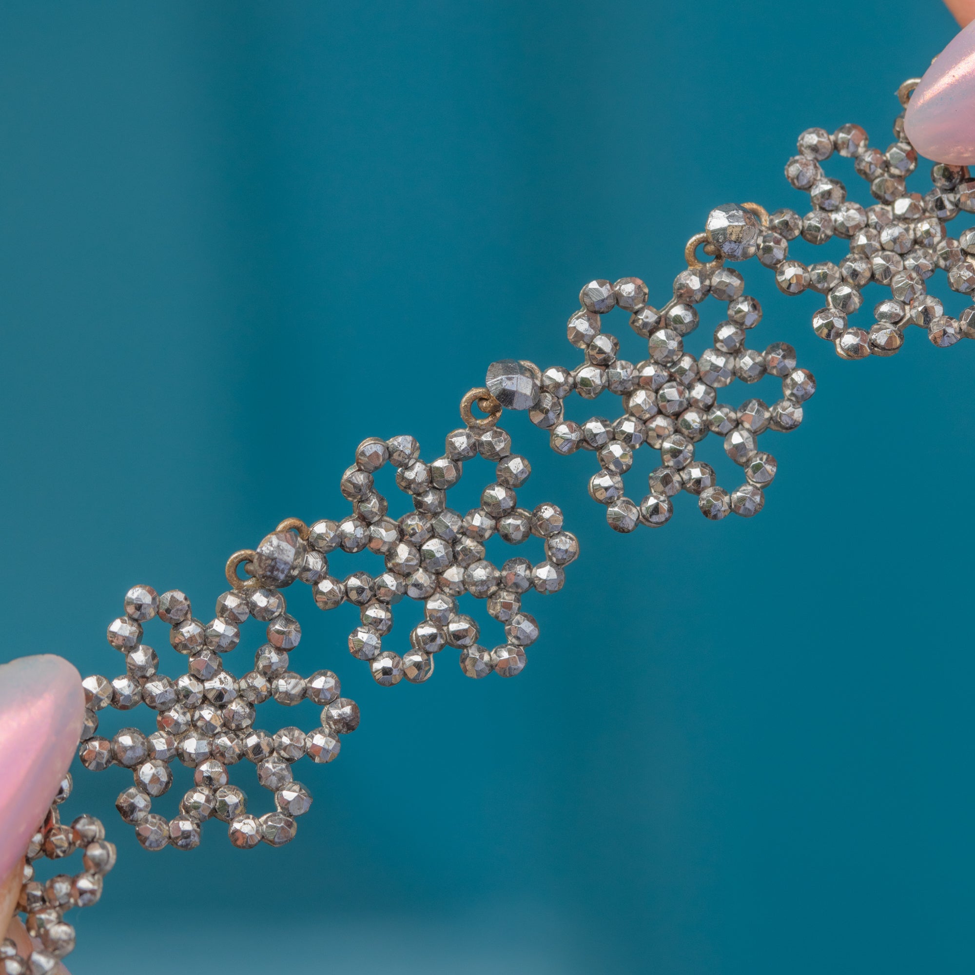 This exquisite early 19th century Georgian Cut Steel flower riviere necklace is a lovely 16" long, and will rest delicately above the collarbone!