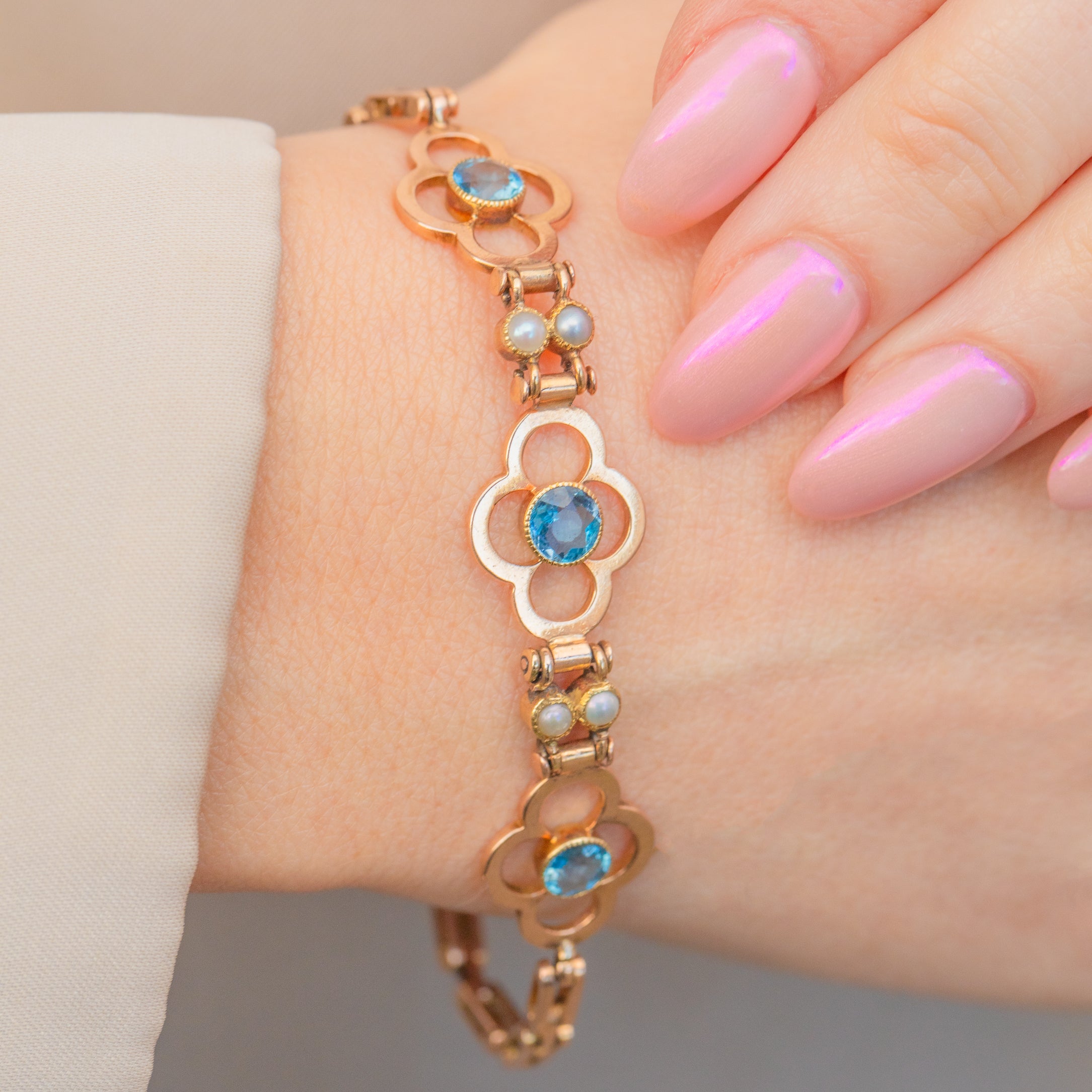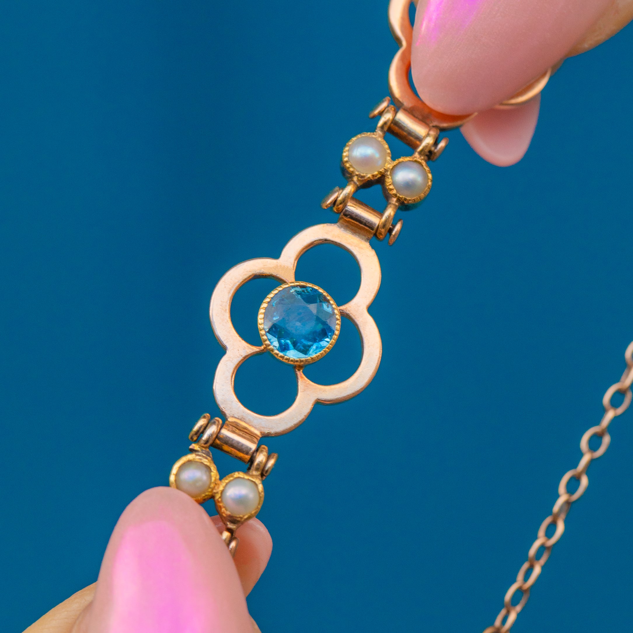 Edwardian 15ct Gold Aquamarine Pearl Flower Bracelet, 0.62ct