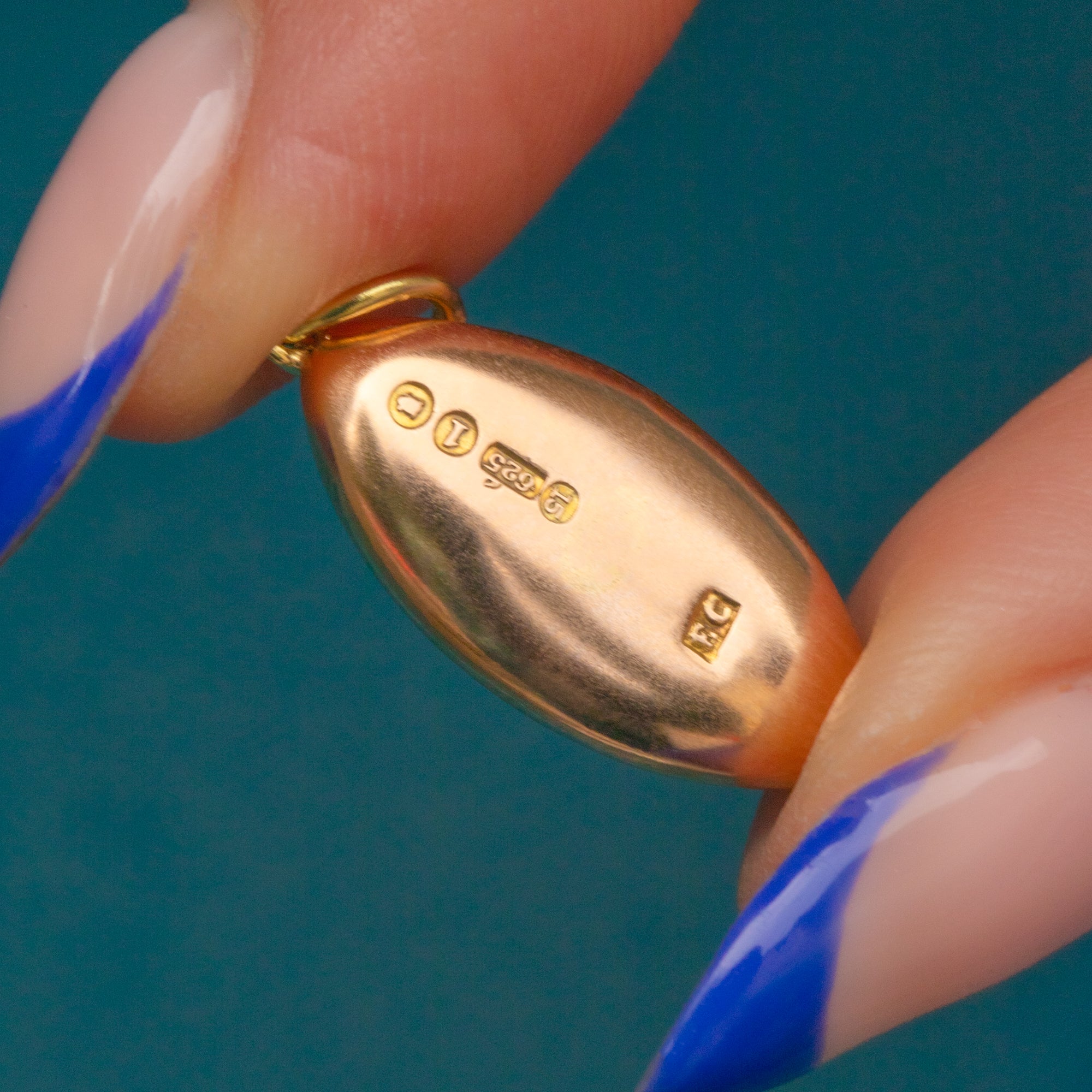 HALLMARKS: '15', '.625', date letter 'l' for the year 1906, London Assay Makers Mark 'E.C' on back of pendant.
