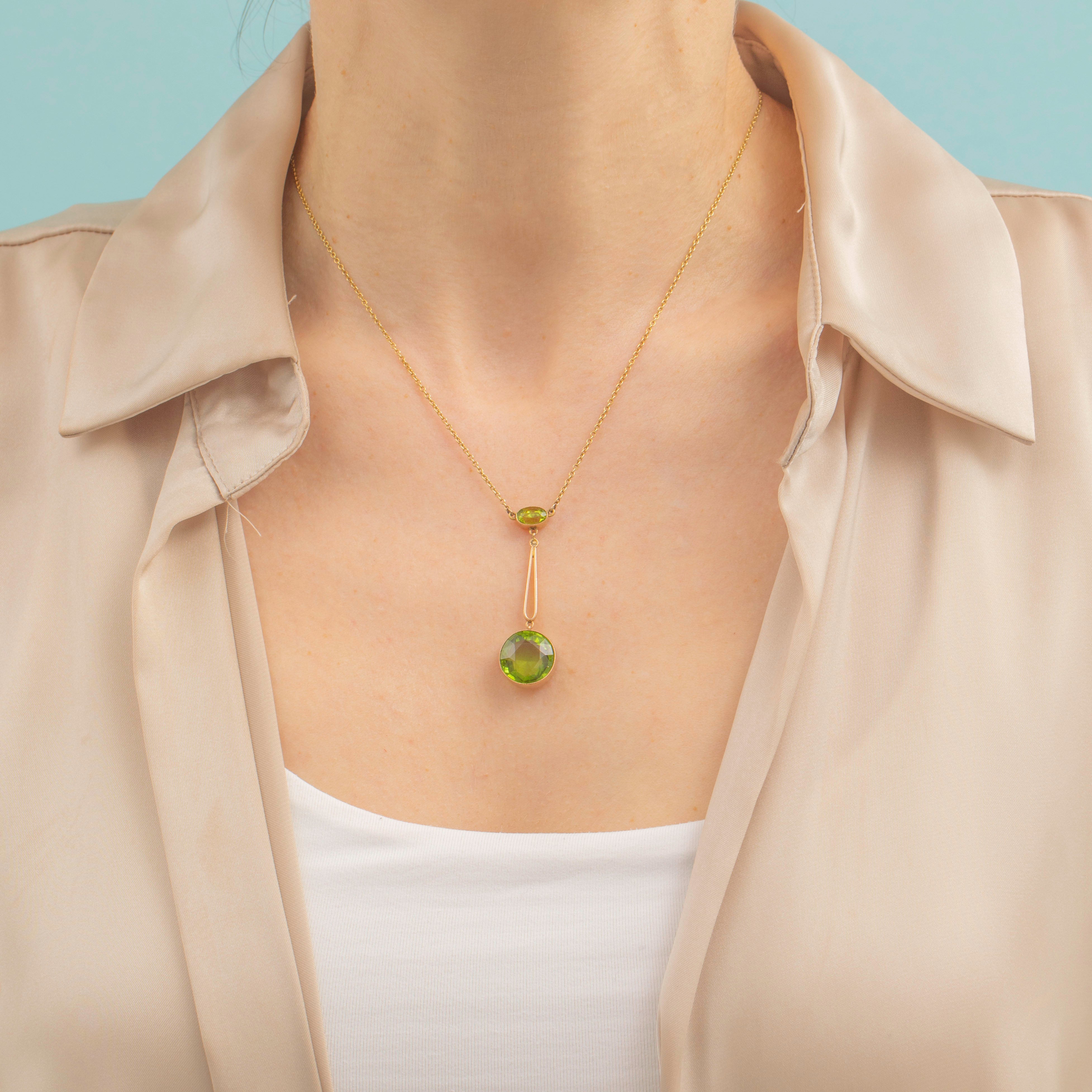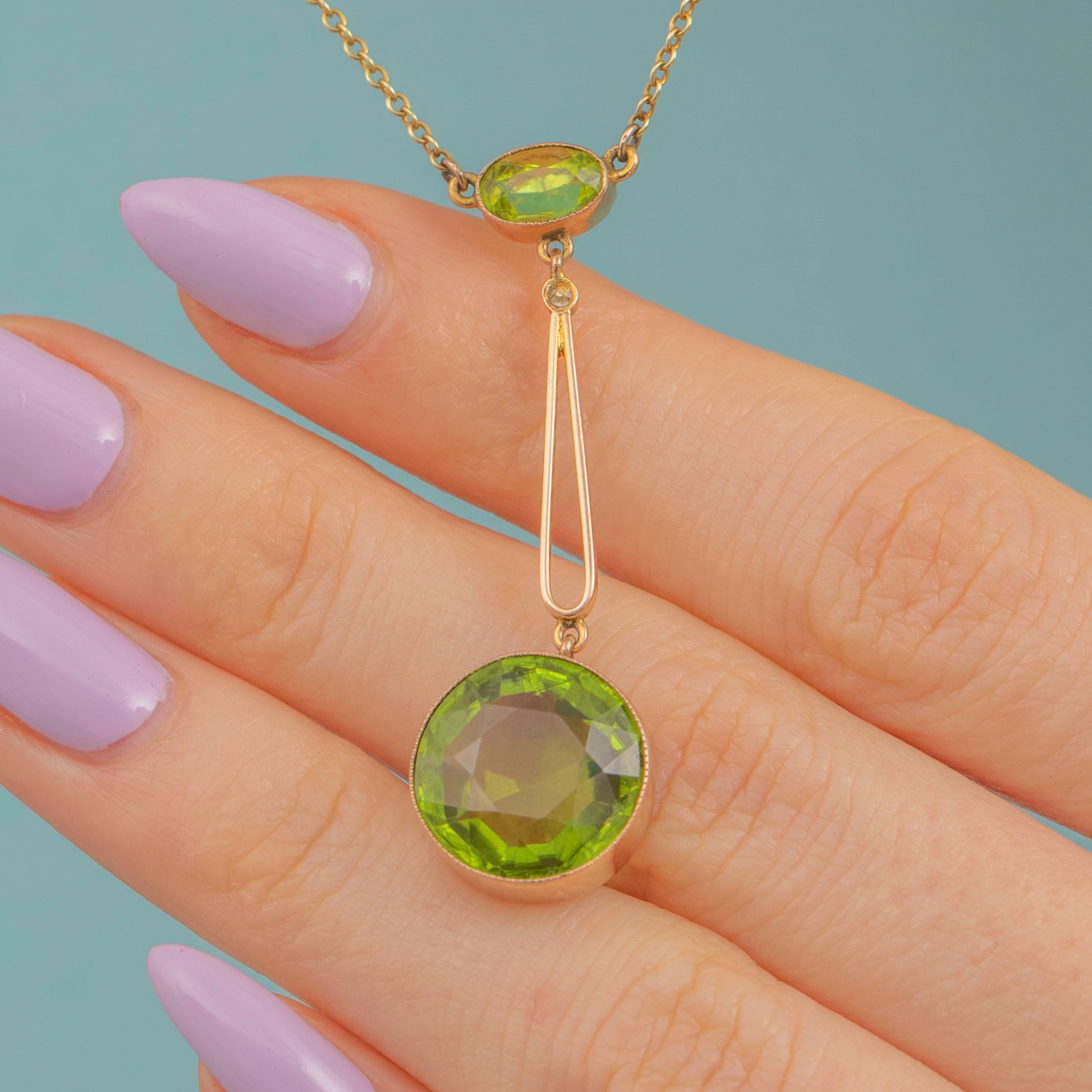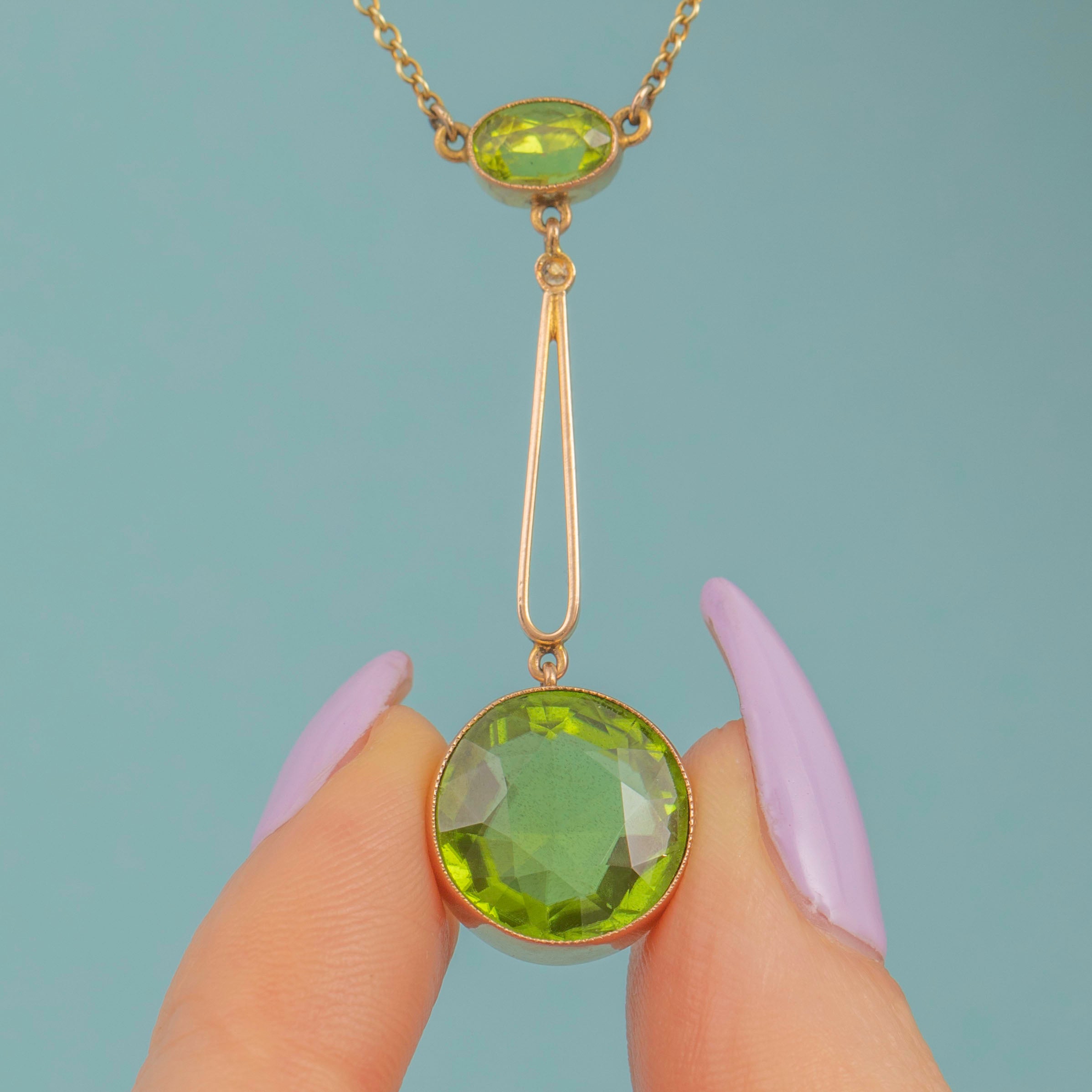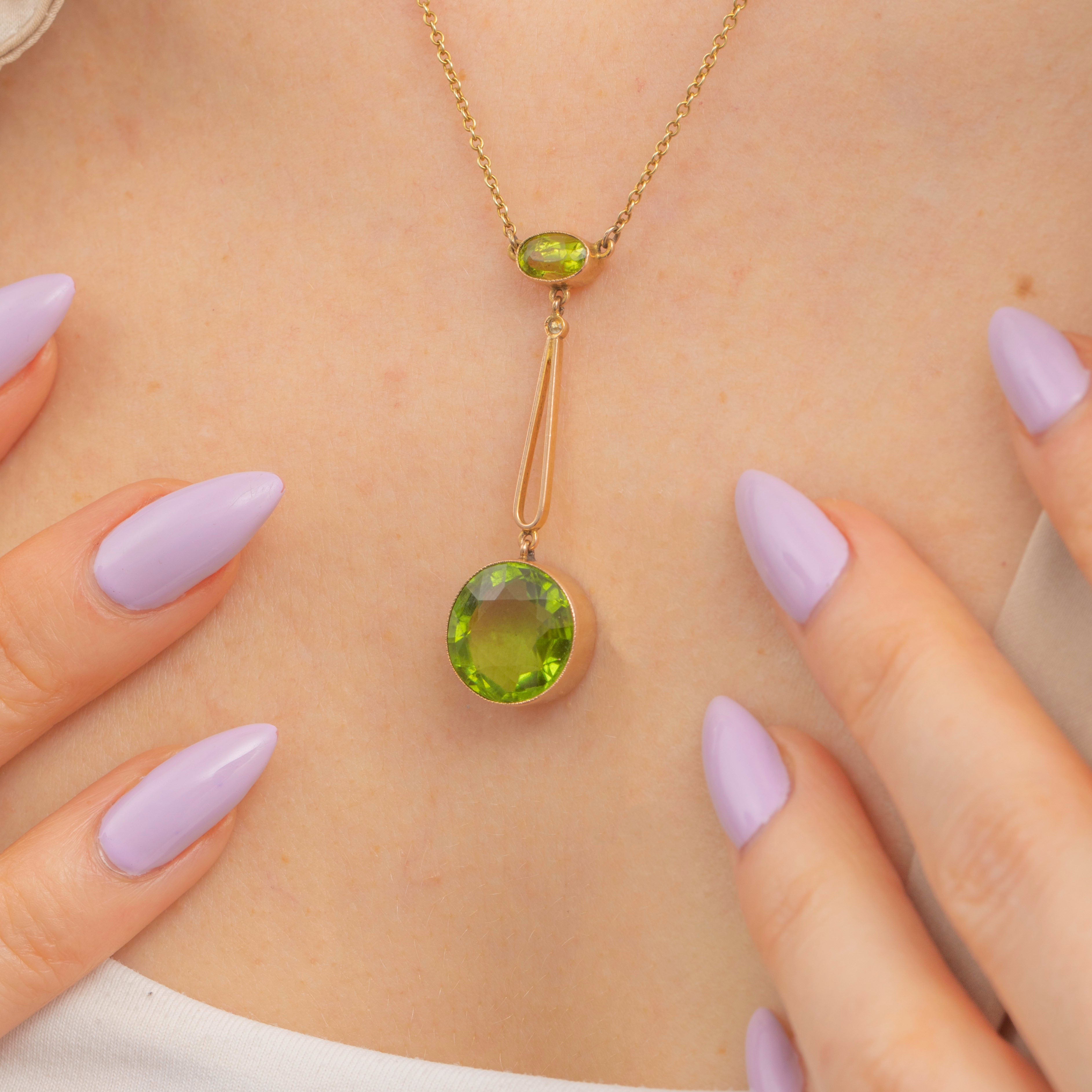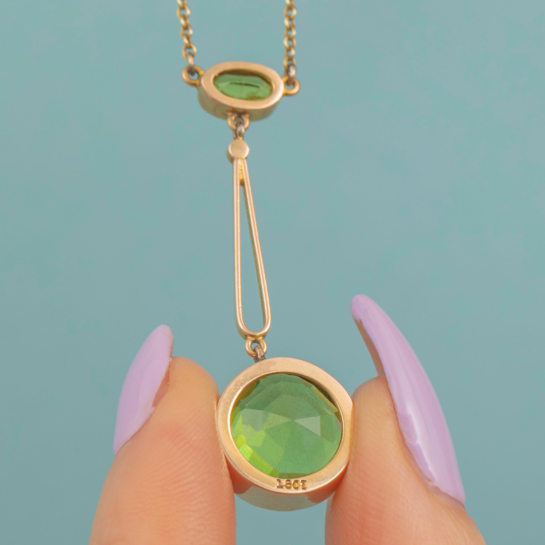 Edwardian 15ct Gold Green Tourmaline Drop Necklace, 6.00ct