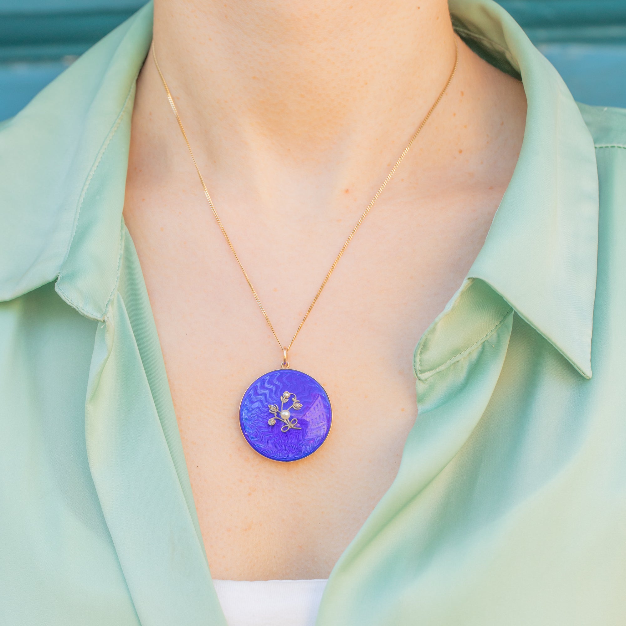 This Edwardian 15ct Gold Guilloché Enamel locket is a stand-out piece!