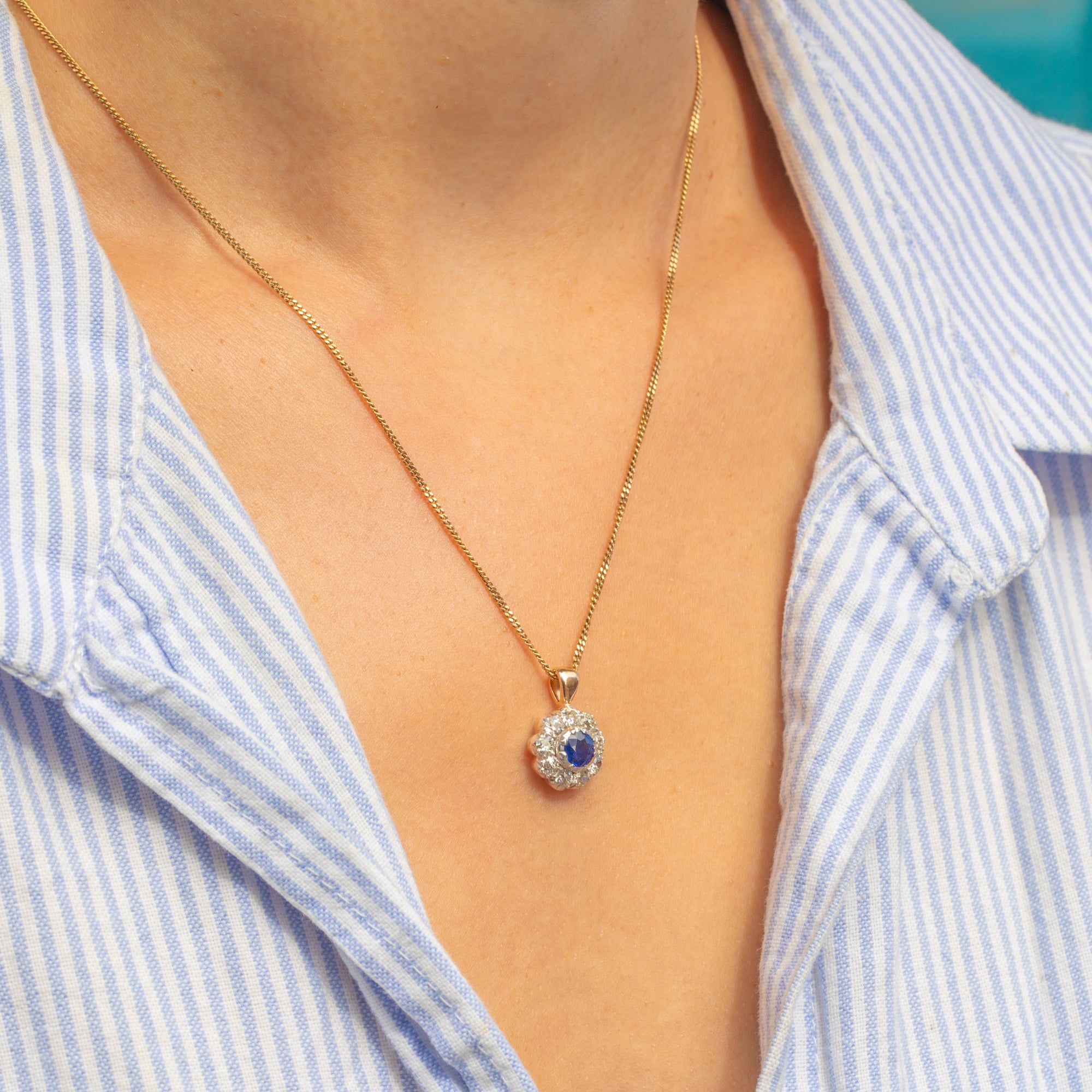 Edwardian 18ct Gold Sapphire Diamond Flower Cluster Pendant