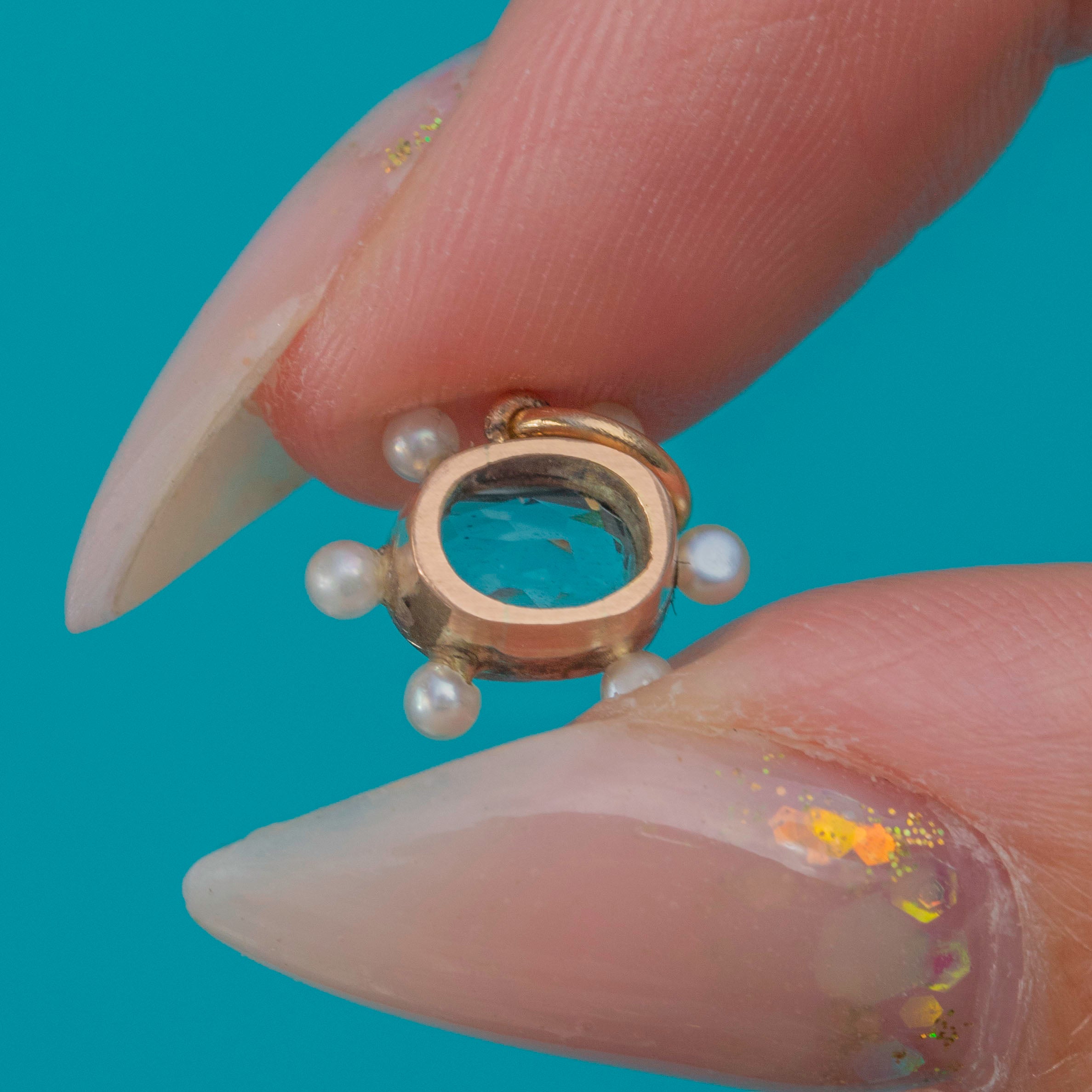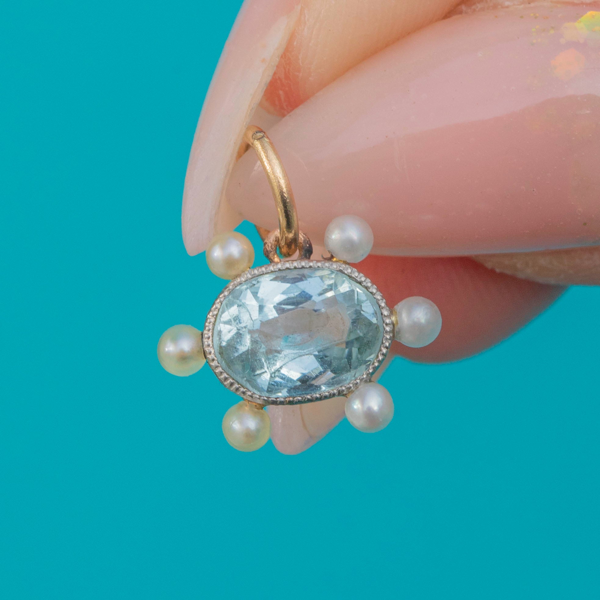 Edwardian 9ct Gold 1.78ct Aquamarine Pearl Charm