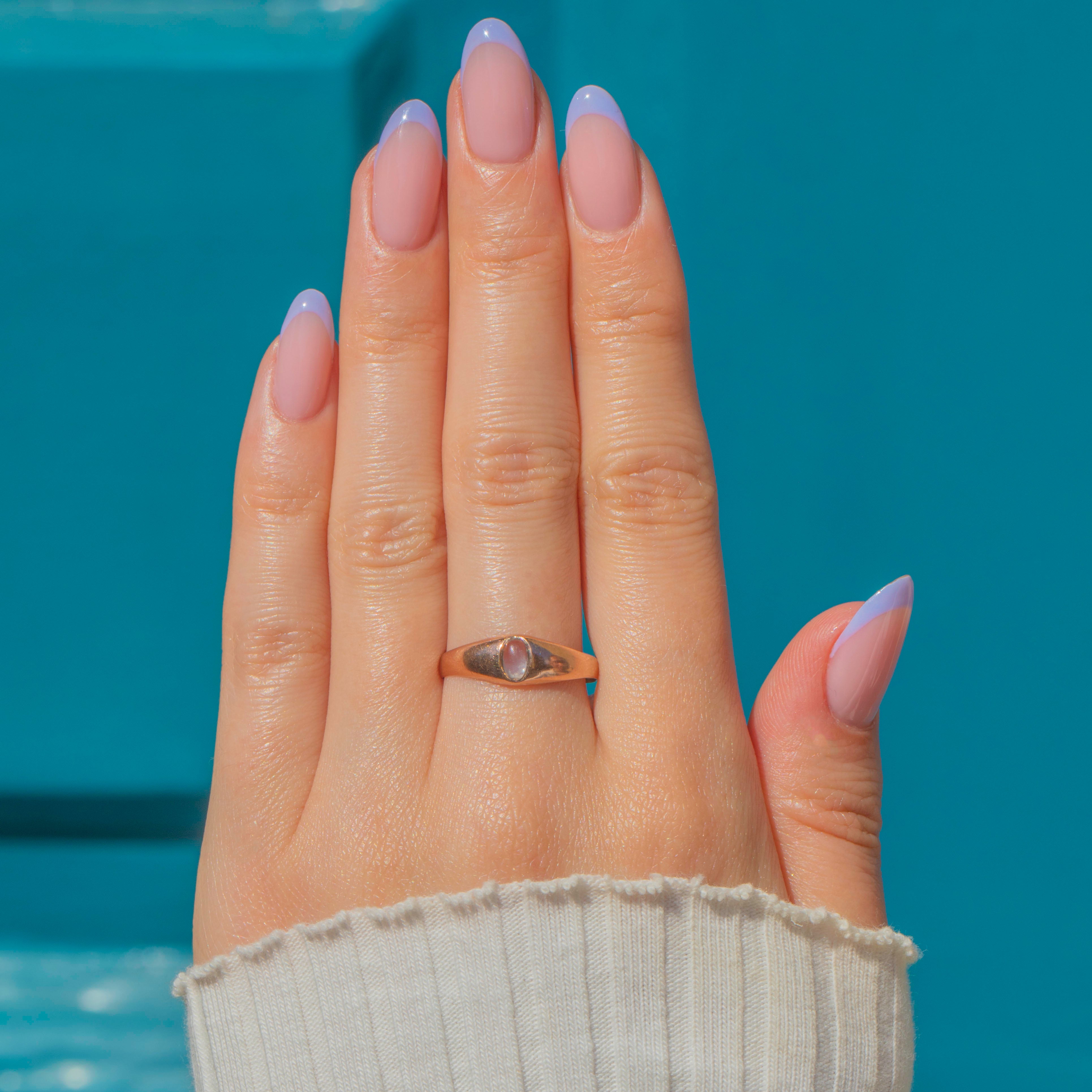Poised within a chunky bezel setting, her Moonstone looks vivid against the rose-kissed hue of her 9ct Gold. A stone associated with balance and relaxation, this Moonstone solitaire ring will bring a wave of calm to its wearer!